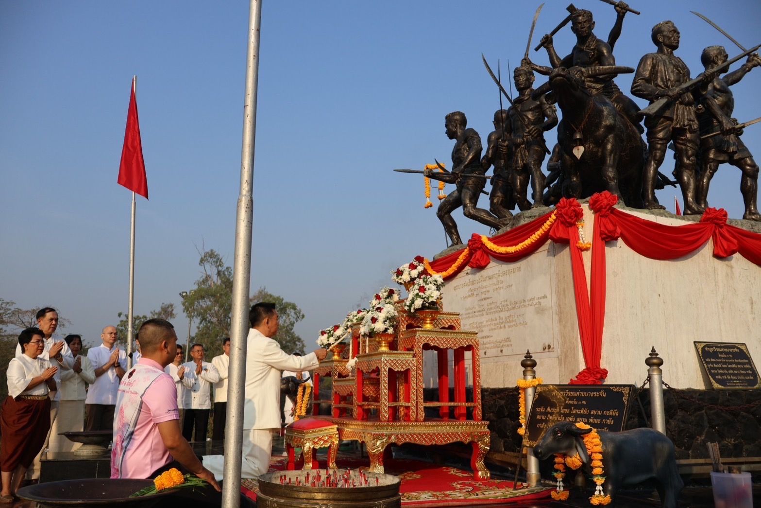 นางสาววีรวรรณ จันทนเสวี รองผู้ว่าราชการจังหวัดสิงห์บุรี/รองนายกเหล่ากาชาดจังหวัดสิงห์บุรี นายอำเภอ หัวหน้าส่วนราชการ และประชาชนทั่วไป ร่วมพิธีดังกล่าว ณ บริเวณหน้าวิหารพระอาจารย์ธรรมโชติ และอุสาวรีย์วีรชนค่ายบางระจัน ตำบลบางระจัน อำเภอค่ายบางระจัน จังหวัดสิงห์บุรี