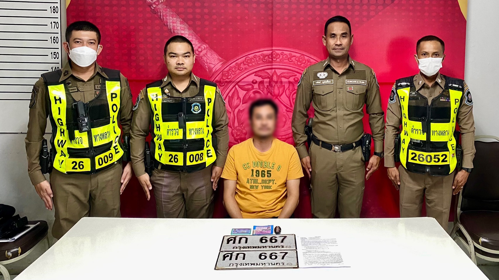 สุพรรณบุรี ตำรวจทางหลวงอู่ทองจับหนุ่มนามสกุลดังติดแผ่นป้ายภาษีรถยนต์ปลอม