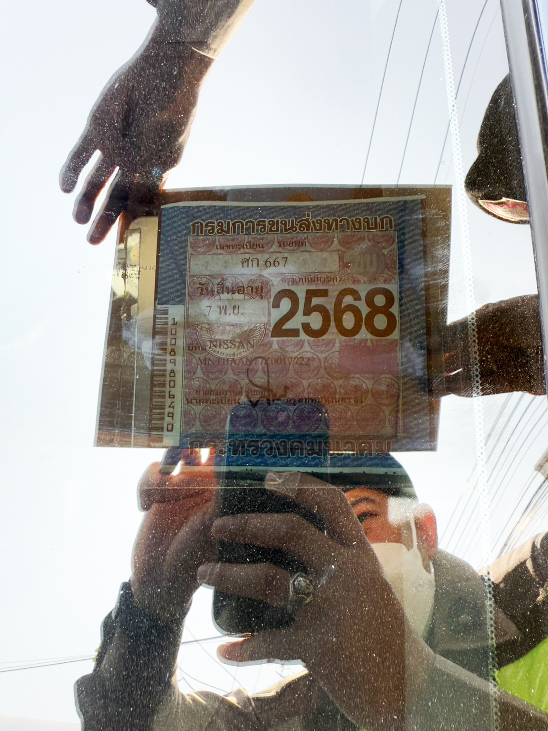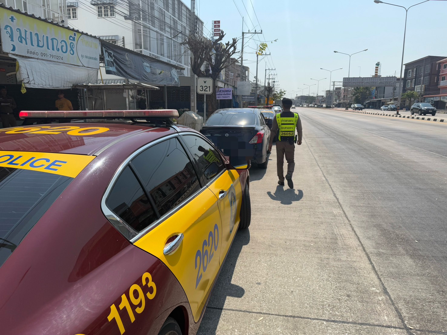 ทางด้าน พ.ต.ต.โจ เสาร์ประโคน สารวัตรสถานีตำรวจทางหลสวง 6 กองกำกับการ 2 เปิดเผยถึงพฤติการณ์ในการจับกุมว่า เจ้าหน้าที่ตำรวจชุดจับกุมได้ ออกตรวจในพื้นที่เขตรับผิดชอบ ถึงบริเวณทางหลวงหมายเลข 321 กม.88+500 (ขาเข้า อำเภออู่ทอง) ตำบลสวนแตง อำเภอเมืองสุพรรณบุรี พบกษณะต้องสงสัยจึงได้ให้สัญญาณรถคันดังกล่าวให้หยุดเพื่อทำการตรวจสอบ พบนายดุจศิลา ณ นคร (ทราบชื่อภายหลัง) เป็นคนขับ จากการตรวจสอบ หมายเลขทะเบียนรถผ่านระบบ CRIMES ONLINE ของสำนักงานตำรวจแห่งชาติ ปรากฏว่า ไม่พบข้อมูลรถยนต์คันดังกล่าว และตรวจสอบแผ่นป้ายภาษีประจำปีของรถยนต์คันดังกล่าว โดยให้นายดุจศิลาฯ เป็นผู้ถอดแผ่นป้ายภาษีออกมาให้เจ้าหน้าที่ตำรวจตรวจสอบด้วยตนเอง ซึ่งแผ่นป้ายภาษีมีลักษณะลบเลือน จืดจาง ไม่มีสติ๊กเกอร์ลายน้ำ มีร่องรอยการแก้ไข และร่องรอยการหลุดลอกของแถบสะท้อนแสง (แถบสะท้อนแสงวงกลม “ขบ” บนแผ่นป้ายภาษี) ซึ่งไม่ได้มาตรฐานของกรมการขนส่งทางบก