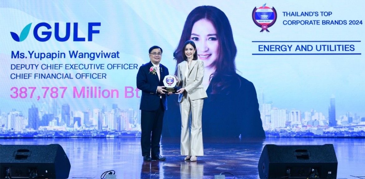นางสาวยุพาพิน วังวิวัฒน์ รองประธานเจ้าหน้าที่บริหารและประธานเจ้าหน้าที่บริหารด้านการเงิน GULF กล่าวว่า “รางวัล Thailand’s Top Corporate Brands 2024 เป็นเครื่องยืนยันถึงความมุ่งมั่นของ GULF ในการพัฒนาธุรกิจอย่างต่อเนื่องและสร้างสรรค์ สะท้อนให้เห็นถึงความแข็งแกร่งของบริษัท ทั้งในด้านฐานะทางการเงินที่มั่นคงและกระแสเงินสดที่สม่ำเสมอ ซึ่งเป็นผลมาจากการบริหารองค์กรที่มีประสิทธิภาพ พร้อมกับการดำเนินธุรกิจอย่างมีความรับผิดชอบต่อสิ่งแวดล้อมและสังคม เพื่อสร้างมูลค่าเพิ่มให้กับแบรนด์และผลตอบแทนให้ผู้ถือหุ้นอย่างยั่งยืน”