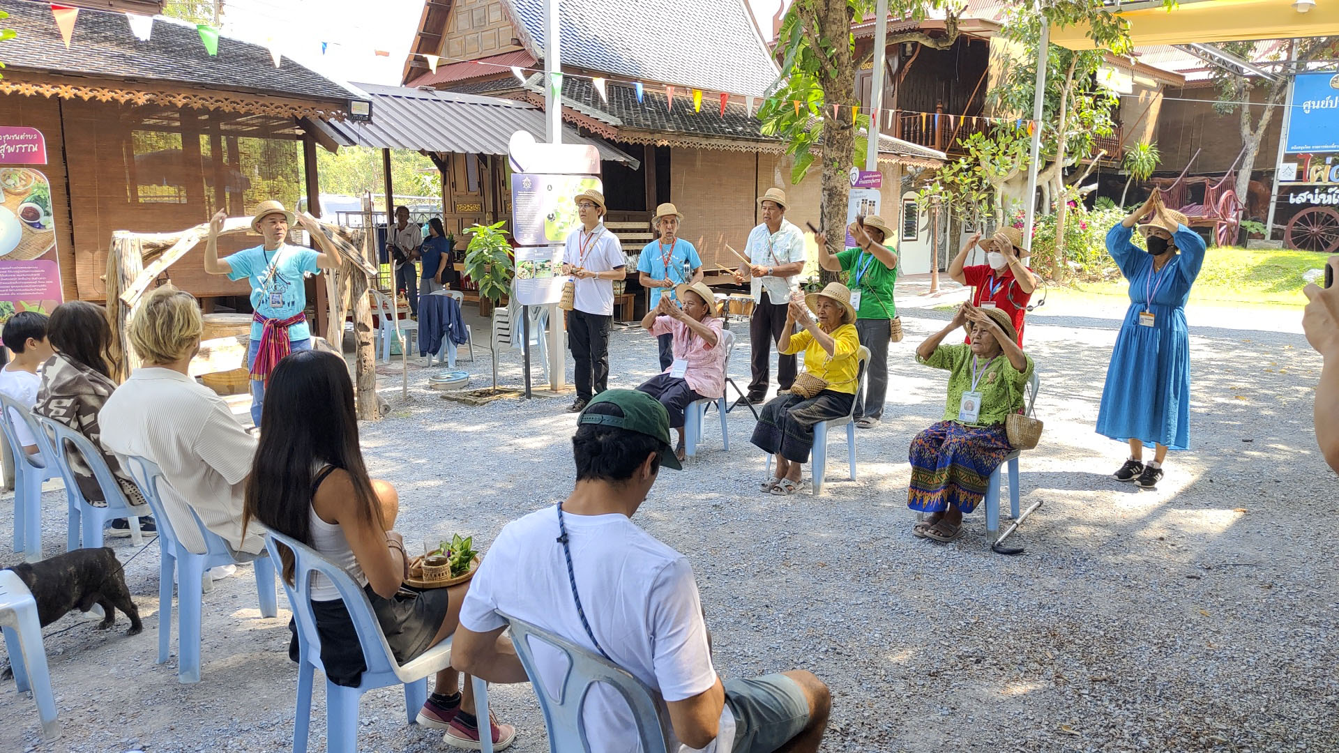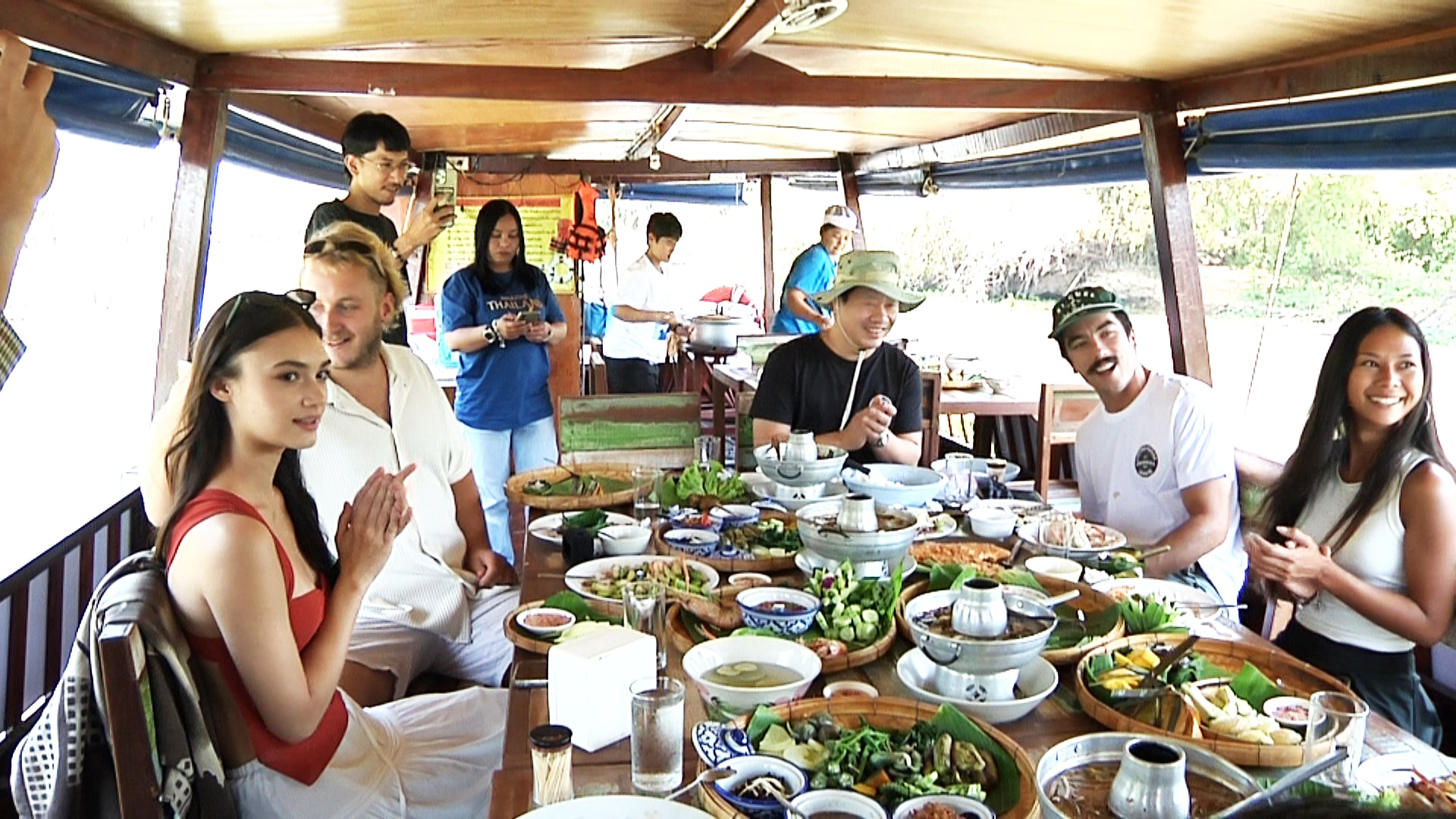 โดยเริ่มจากชุมชนท่องเที่ยวบ้านแหลม ชมการเล่นเพลงพื้นบ้าน ชมบ้านเรือนไทย และชมวิถีบ้านริมน้ำล่องเรือ ชมวิถีริมแม่น้ำสุพรรณ ทานอาอาหารพื้นบ้านในเรือ หลายเมนู อาทิ น้ำพริกสามกษัตริย์ มี น้ำพริกไปนา – น้ำพริกกะปิ และน้ำพริกบางปลาม้า พร้อมผักสวนครัว , กุ้งแม่น้ำเผา พร้อมน้ำจิ้มแซ่บๆ , ต้มโคล้งปลาม้า , ปลาสลิดทอด , ไข่เจียว เป็ดไล่ทุ่ง พร้อมขนมไทยโบราณและผลไม้ของชุมชนพร้อมพริกเกลือ ซึ่งได้ทานอาหารอย่างเอร็ดอร่อย พร้อมร่วมสนุกร้องเล่น ฟังเพลงพื้นบ้านในเรือ สร้างรอยยิ้มให้นักท่องเที่ยว