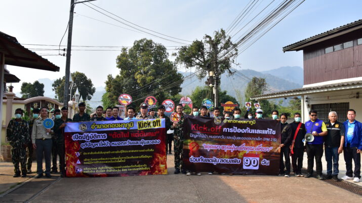 อ.ทองผาภูมิบูรณาการหลายหน่วยงานเดินเคาะประตูบ้าน จัดกิจกรรม Kick off เปิดปฏิบัติการ “ตัดไฟ แต่ต้นลม”