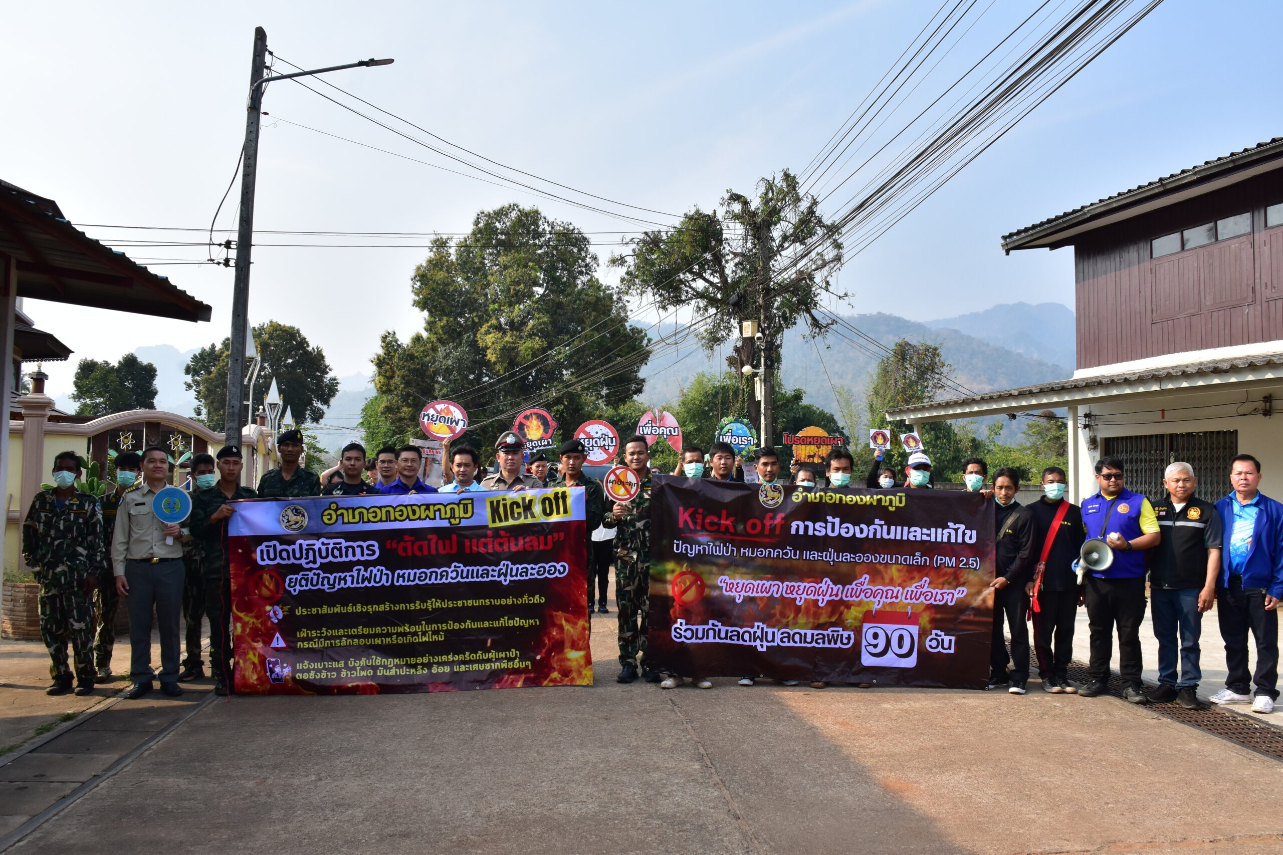 นายชาคริต ตันพิรุฬห์ นายอำเภอทองผาภูมิ กล่าวว่าวันนี้อำเภอ Kick off งดการเผาทุกชนิดภายใน 90 วันตามนโยบายของจังหวัดกาญจนบุรี เพื่อให้พี่น้องประชาชนมีสุขภาพที่ดีและปลอดมลพิษจากการเผาทุกชนิด นายยุทธพงศ์ ดำศรีสุข หัวหน้าอุทยานแห่งชาติทองผาภูมิ ได้มีมาตรการเชิงรุกในการหยุดเผาป่า เพื่อเป็นการอนุรักษ์ป่า มีเป้าหมาย hot spot ลดลงอย่างน้อย 30 % โดยมีเจ้าหน้าที่ออกลาดตระเวณตลอด 24 ชม.และประชาสัมพันธ์ทุกหมู่บ้านร่วมกับผู้ใหญ่บ้าน ถ้าหากพบเห็นไฟไหม้ป่าแจ้งได้ที่ 1362