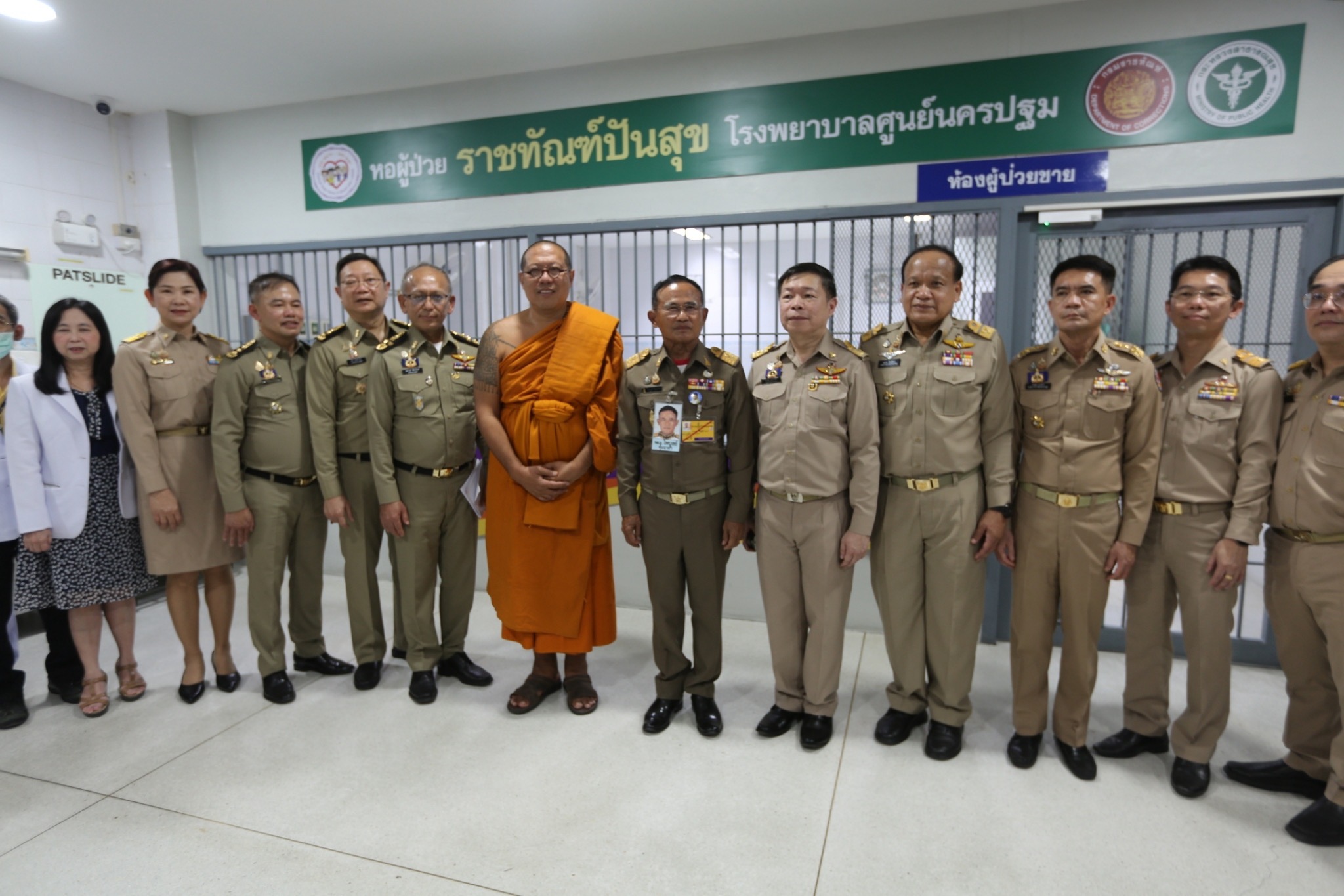 ต่อมาได้เดินทางไปยังอาคารรวมเมฆ โรงพยาบาลนครปฐม เพื่อเข้าเยี่ยมชม หอผู้ป่วยราชทัณฑ์ปันสุข โรงพยาบาลนครปฐม โดยมีพระครูปลัดสิทธิวัฒน์ (หลวงพี่น้ำฝน) เจ้าอาวาสวัดไผ่ล้อม ผู้สนับสนุนงบประมาณในการจัดสร้าง หอผู้ป่วยราชทัณฑ์ปันสุข ซึ่งเรือนจำกลางนครปฐมได้ดำเนินการเพื่อให้ผู้ต้องขังเข้าถึงการรักษาพยาบาลอย่างเท่าเทียม ตามหลักมนุษยธรรม และดำเนินการในกรณีที่ผู้ต้องขังมีอาการรุนแรงหรือมีความจำเป็นต้องส่งตัวมารับการรักษาต่อที่โรงพยาบาลนครปฐม ทั้งผู้ป่วยนอกและผู้ป่วยใน