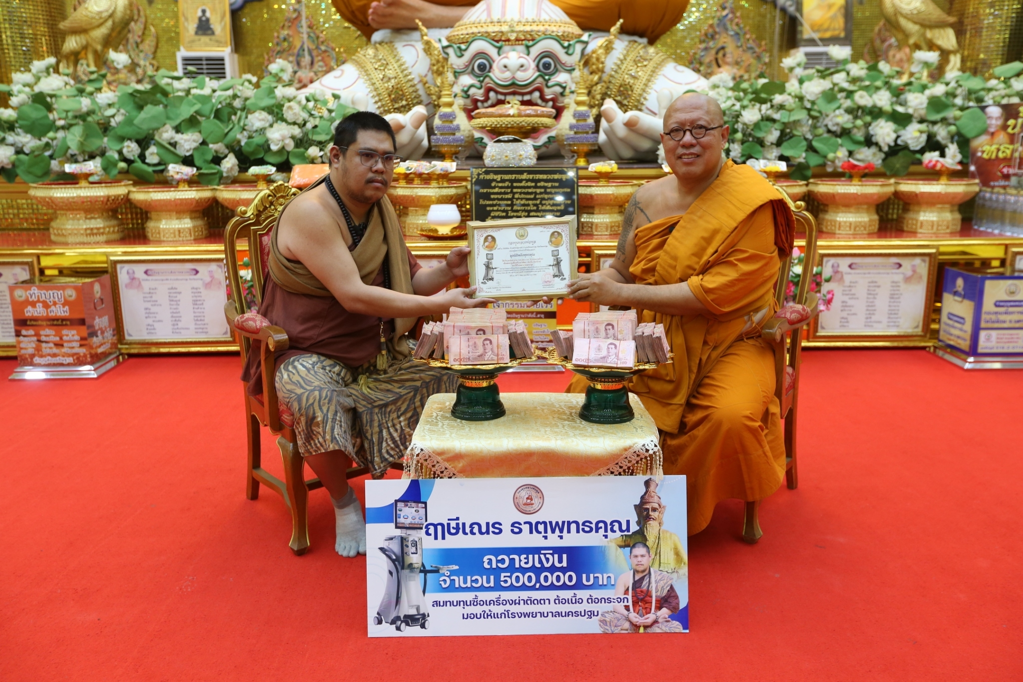 ฤาษีเณร ธาตุพุทธคุณ ถวาย 5 แสน ร่วมบุญ ซื้อเครื่องผ่าตัดตา กับหลวงพี่น้ำฝน มอบ รพ.นครปฐม