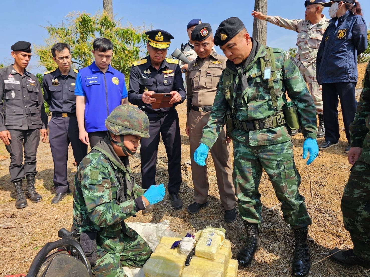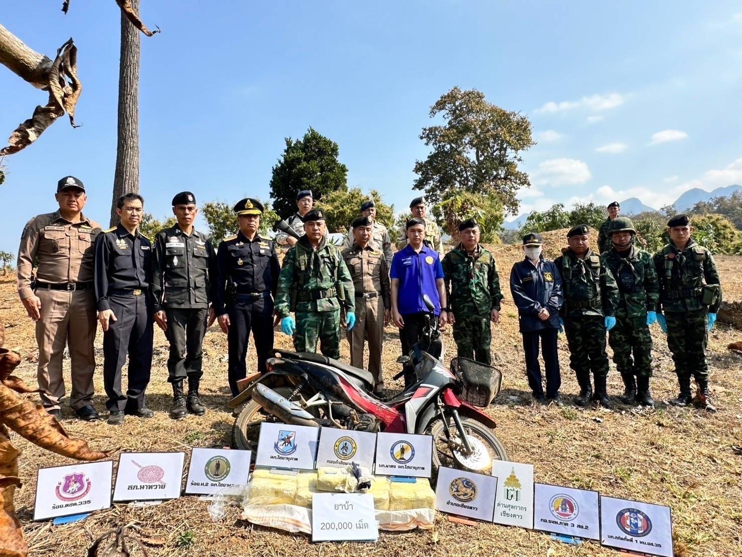 เมื่อวันที่ 10 กุมภาพันธ์ 2568 เวลา 1030 นาฬิกา กองกำลังผาเมือง โดย พลตรี กิดากร จันทรา ผู้บัญชาการกองกำลังผาเมือง มอบหมายให้ พันเอก เดชาธร สายหยุด รองผู้บังคับการหน่วยเฉพาะกิจไชยานุภาพ เป็นผู้แทน ผู้บัญชาการกองกำลังผาเมือง และหน่วยงานที่เกี่ยวข้อง ร่วมตรวจสอบพื้นที่เกิดเหตุและตรวจนับของกลาง พร้อมทั้งชี้แจงให้ข้อมูลกับสื่อมวลชนบริเวณพื้นที่เกิดเหตุ กรณี เมื่อวันที่ 10 กุมภาพันธ์ 2568 เวลา 0530 นาฬิกา กองร้อยทหารม้าที่ 2 หน่วยเฉพาะกิจไชยานุภาพ จัดกำลังพล 1 ชุดดปฏิบัติการ ปฏิบัติภารกิจตั้งจุดตรวจจุดสกัดเพื่อป้องกันและสกัดกั้นการกระทำผิดตามพระราชบัญญัติยาเสพติด และการกระทำผิดกฎหมายอื่นๆ บริเวณ ช่องทางสวนลำไย ตำบลเมืองนะ อำเภอเชียงดาว จังหวัดเชีงใหม่ ตรวจพบบุคคลต้องสงสัยขับขี่รถจักรยานยนต์ตามเส้นทางในภูมิประเทศ ออกมาจากบริเวณพื้นที่แนวชายแดน