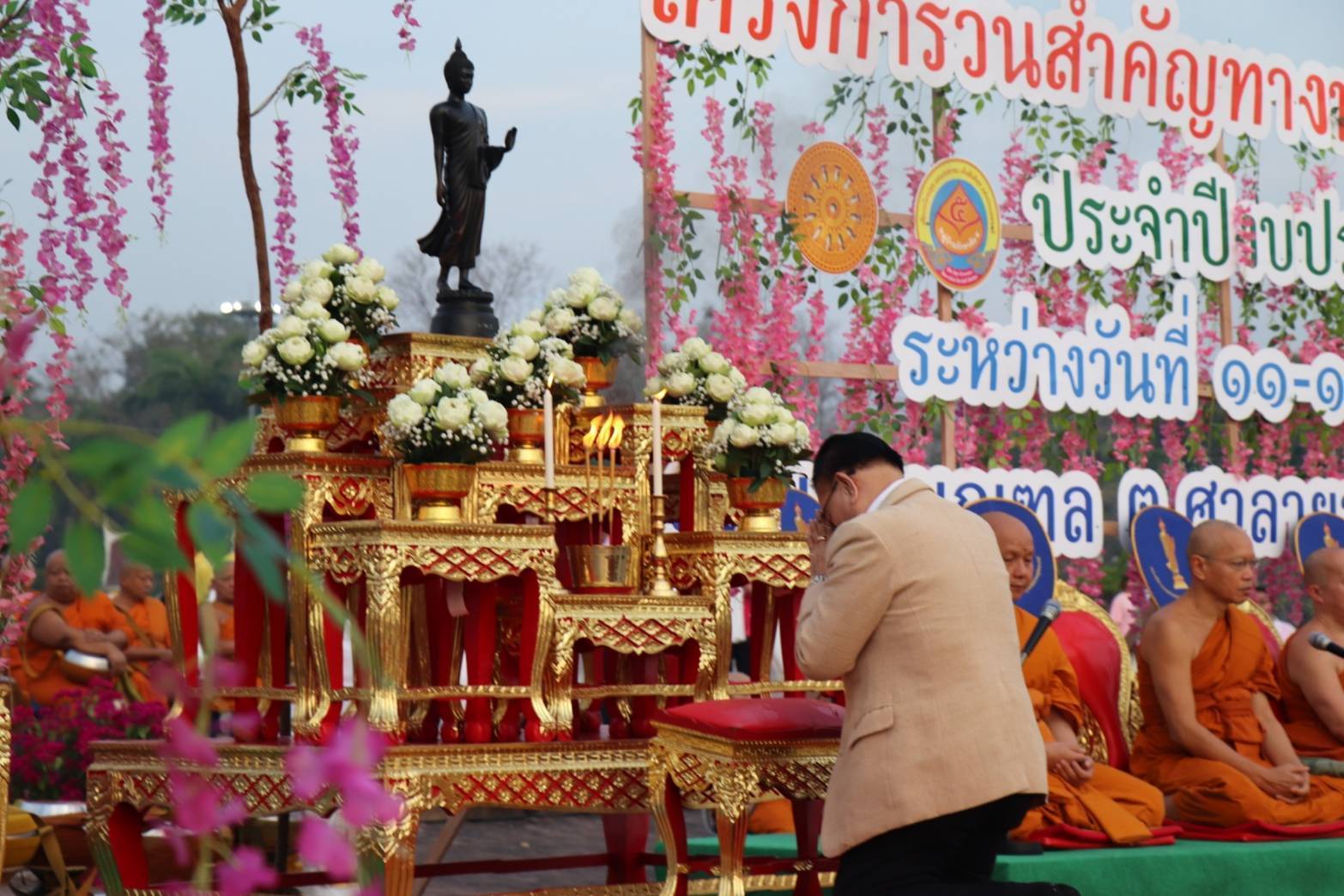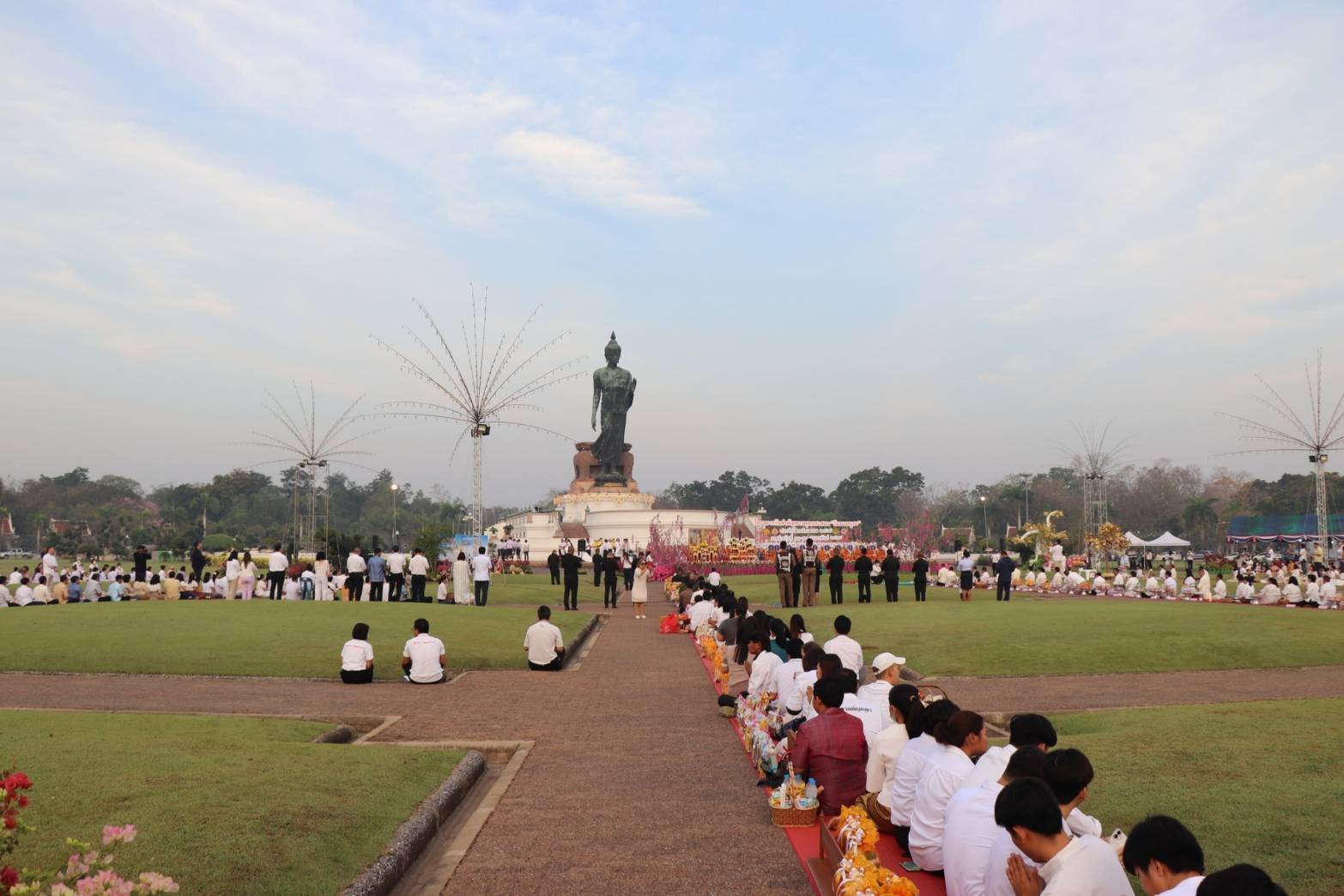 โดยในช่วงเย็นของวันนี้ ขอเชิญพุทธศาสนิกชนร่วมพิธีทอดผ้าป่า พิธีเจริญพระพุทธมนต์ และพิธีเวียนเทียน เวลา 17.30 น. ณ บริเวณลานด้านหน้าองค์พระศรีศากยะทศพลญาณ ประธานพุทธมณฑลสุทรรศน์ โดยการแต่งกายชุดสีขาว หรือชุดผ้าไทยโทนสีสุภาพอย่างพร้อมเพรียงกัน