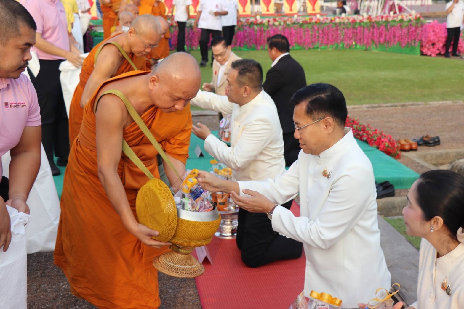 วันที่ 12 กุมภาพันธ์ 2568 ที่บริเวณลานด้านหน้าองค์พระศรีศากยะทศพลญาณ ประธานพุทธมณฑลสุทรรศน์ อ.พุทธมณฑล จ.นครปฐม สำนักงานพระพุทธศาสนาแห่งชาติ ได้จัดพิธีตักบาตรพระสงฆ์กว่า 100 รูป