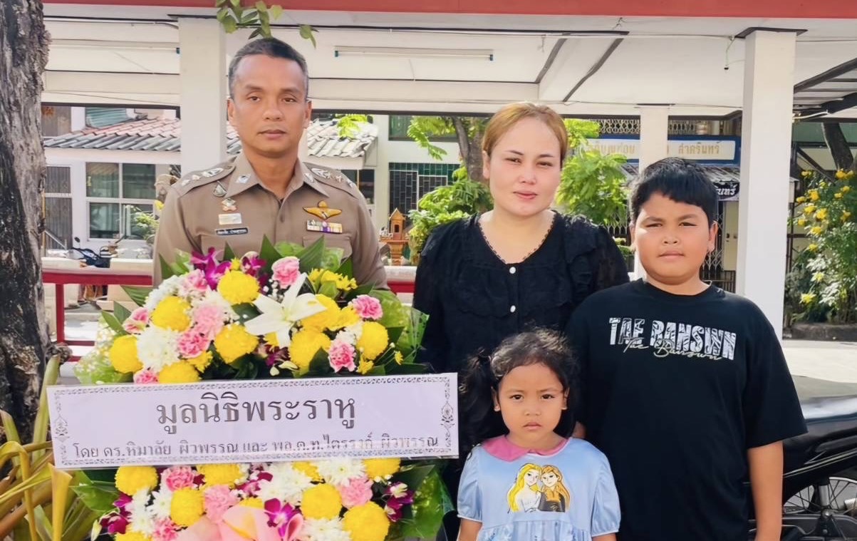 “มูลนิธิพระราหู” มอบเงินทุนการศึกษา ทายาทตำรวจ และมอบเงินเยียวยาตำรวจถูกลอบยิงเสียชีวิตที่ยะรัง