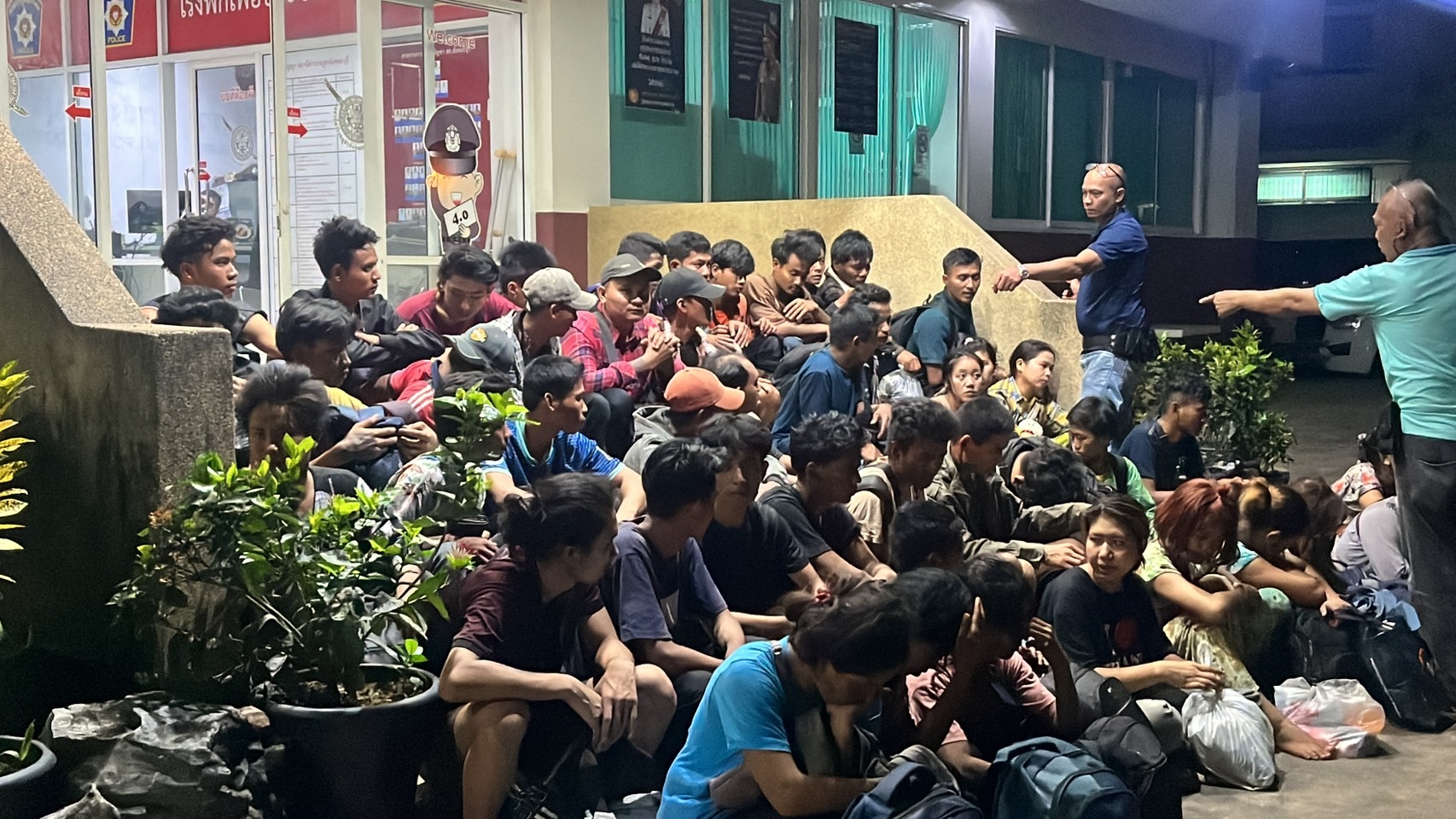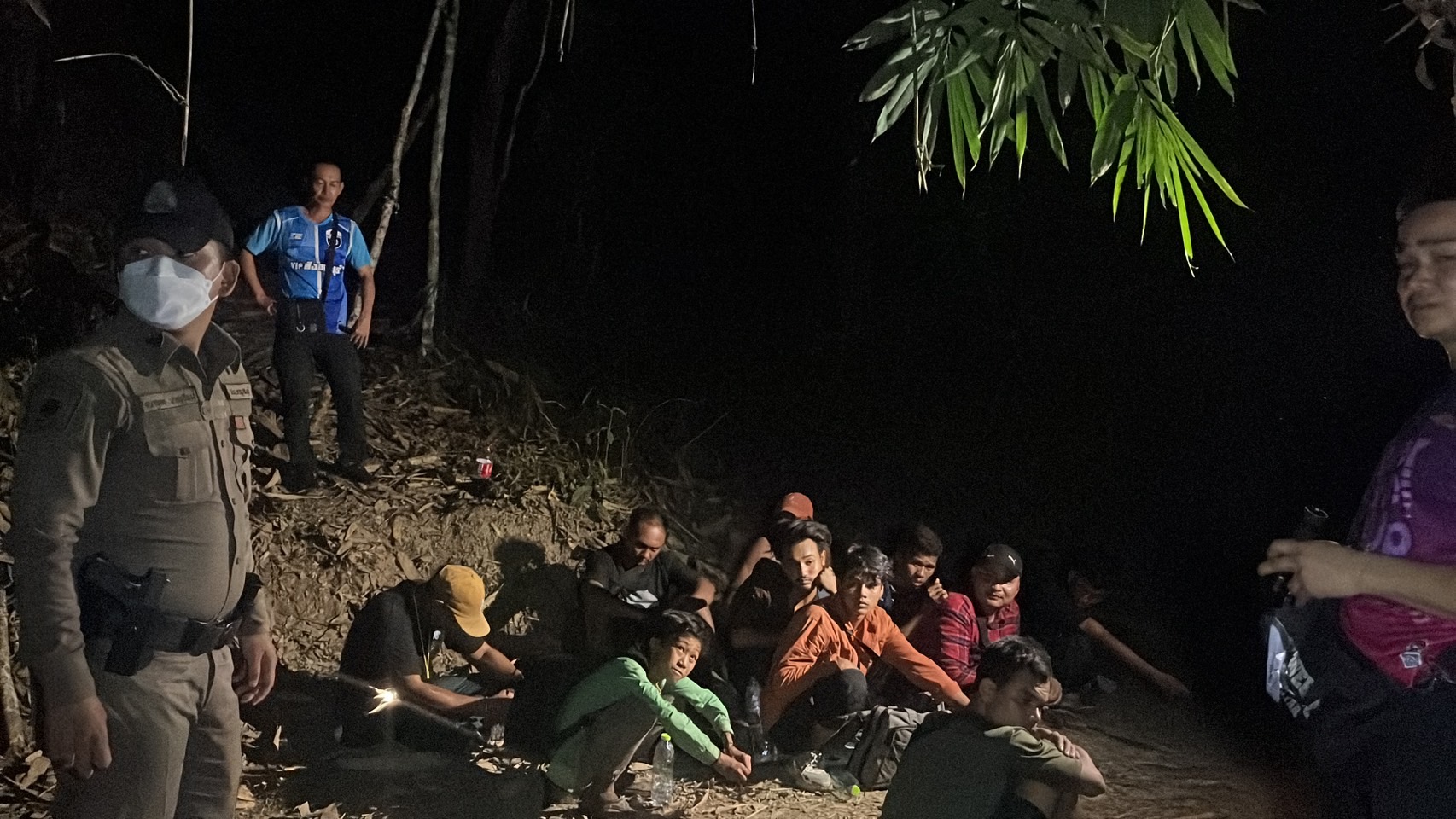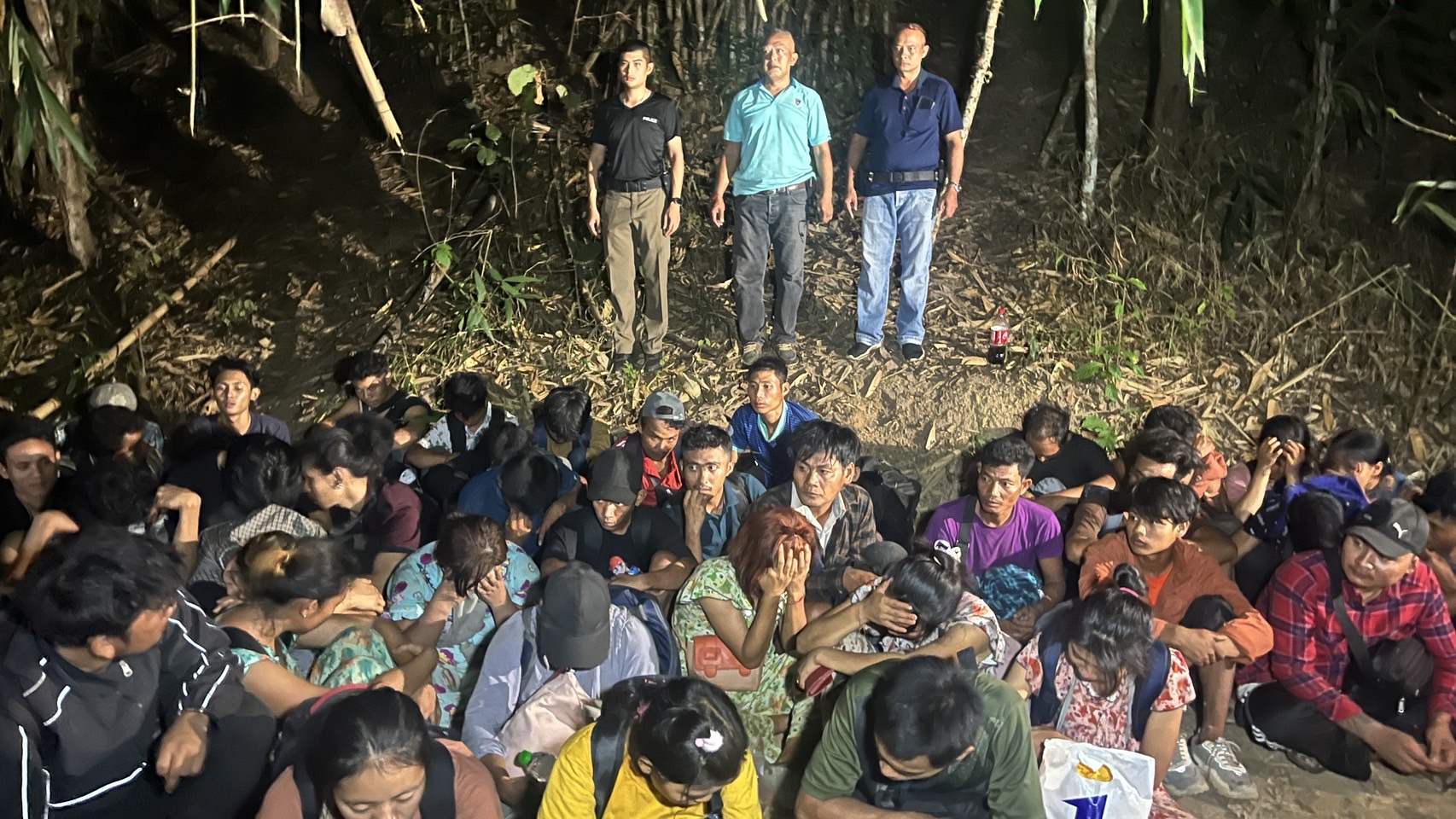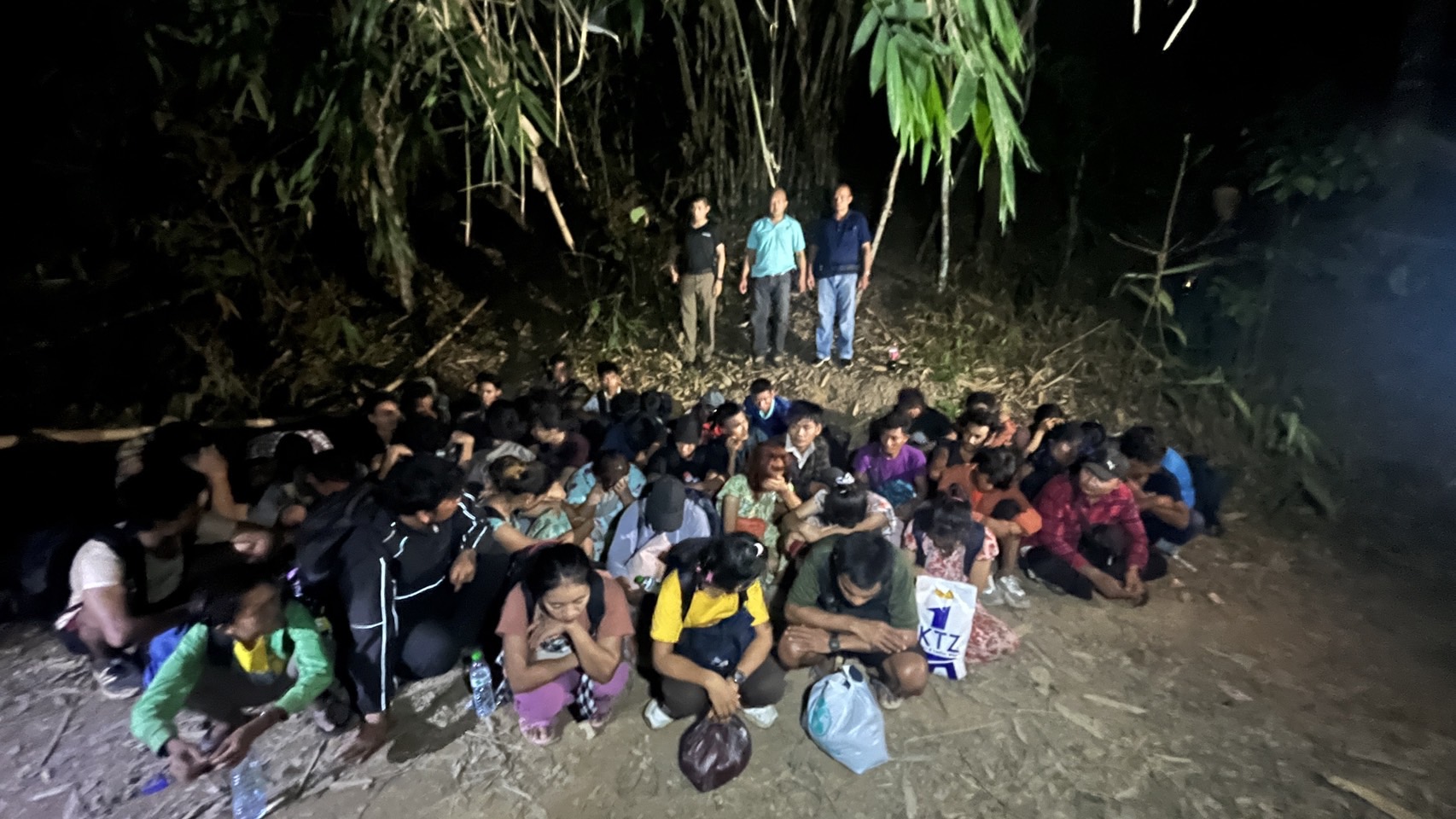ต่อมาในเวลา 19.30 น (วานนี้) 28 กุมภาพันธ์ 2568 พ.ต.อ.ไพฑูรย์ ศรีวิลัย ผู้กำดับสถานีตำรวจภูธรสังขละบุรี ได้รับแจ้งจากข่าวจากพลเมืองดีว่า พบแรงงานต่างด้าวจำนวนมากหลบซ่อนอยู่ในพื้นที่ป่าข้างทาง ใน ซ.โรงเรียนลาซาล(สังขละบุรี)พื่นที่ หมู่ 3 ตำบลหนองลู อำเภอสังขละบุรี จังหวัดกาญจนบุรี จึงได้สั่งการให้ เจ้าหน้าที่ตำรวจชุดปะฉะดะ นำโดย ร.ต.ต.ฉัตรชัย แสงทองดี รอง สว.(สส) ด.ต.เพียร ฉลูรัตน์ ด.ต.เจษฎา นิลเพชร ส.ต.ท.กันติทัด เฟื่องอินทร์) ส.ต.ต.อนุชา ลาพัง ร่วมกับ ร.ต.ท.กิตติ จันทรสูตร ปฏิบัติหน้าที่ ร้อยเวร20 ด.ต.ณัฐวิทย์ แกล้วสาริกรณ์ ส.ต.ต.วัชรพล ปะมาคะมา ( ปฏิบัติหน้าที่ สายตรวจรถยนต์) ร่วมกันลงพื้นที่ตรวจสอบ เมื่อเดินทางถึงพื้นที่ ที่ได้รับแจ้ง ซึ่งเป็นบริเวณทางลงไปยังริมแม่น้ำซองกาเลีย ช่องทางหินสามก้อน ห่างจากถนนลงไปประมาณ150เมตร พบแรงงานชาวเมียนมาชาย หญิง จำนวนมากนั่งเรียงรายอยู่ในร่องเขาที่เป็นทางเดินท่ามกลางความมืด เบื้องต้นนับได้ 49 คน เป็นหญิง 13 คน ชาย 34 คน เยาวชนชาย 2 คน