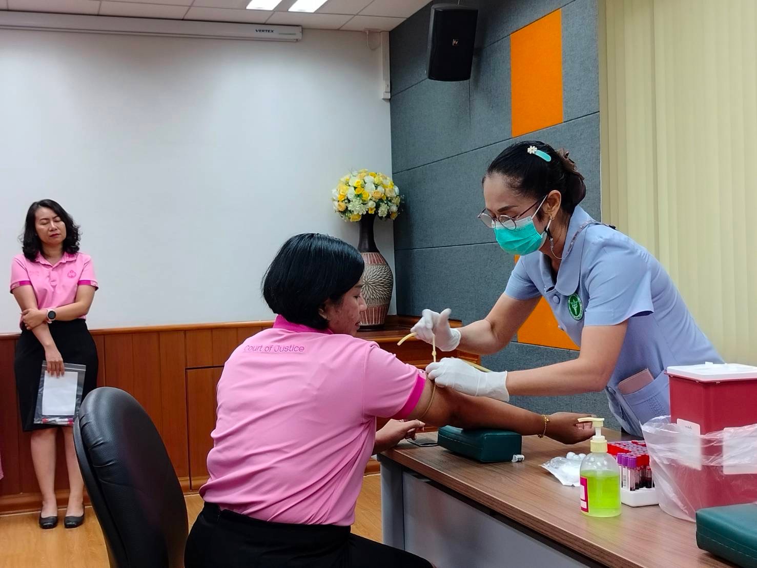ในวันนี้ ตนได้มอบหมาย ให้นาย วรฉัตร คงเทียม หัวหน้างานอาชีวเวชกรรม และนางสาว สุภาพร แก้วกอง พยาบาลวิชาชีพชำนาญการ (รองหัวหน้า งานอาชีวเวชกรรม )พร้อมด้วยเจ้าหน้าที่ กลุ่มงานอาชีวเวชกรรมและกลุ่มงานประกันสุขภาพออกหน่วยตรวจสุขภาพเชิงรุก แก่ข้าราชการ พนักงานราชการและลูกจ้าง ของศาลจังหวัดระนอง ณ อาคาร ศาลจังหวัดระนอง มี ผู้เข้ารับบริการ ตรวจสุขภาพ ทั้งสิ้น 34 ท่าน นายแพทย์ นิคม มะลิทอง ผู้อำนวยการโรงพยาบาลระนองกล่าวในที่สุด