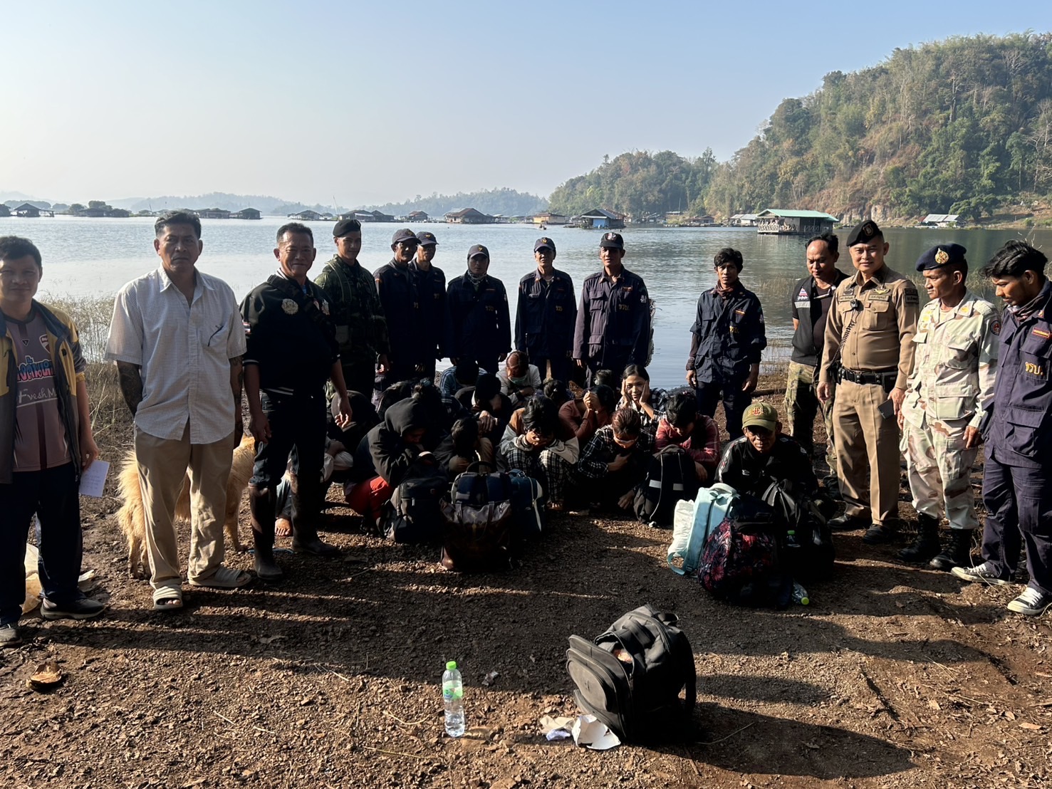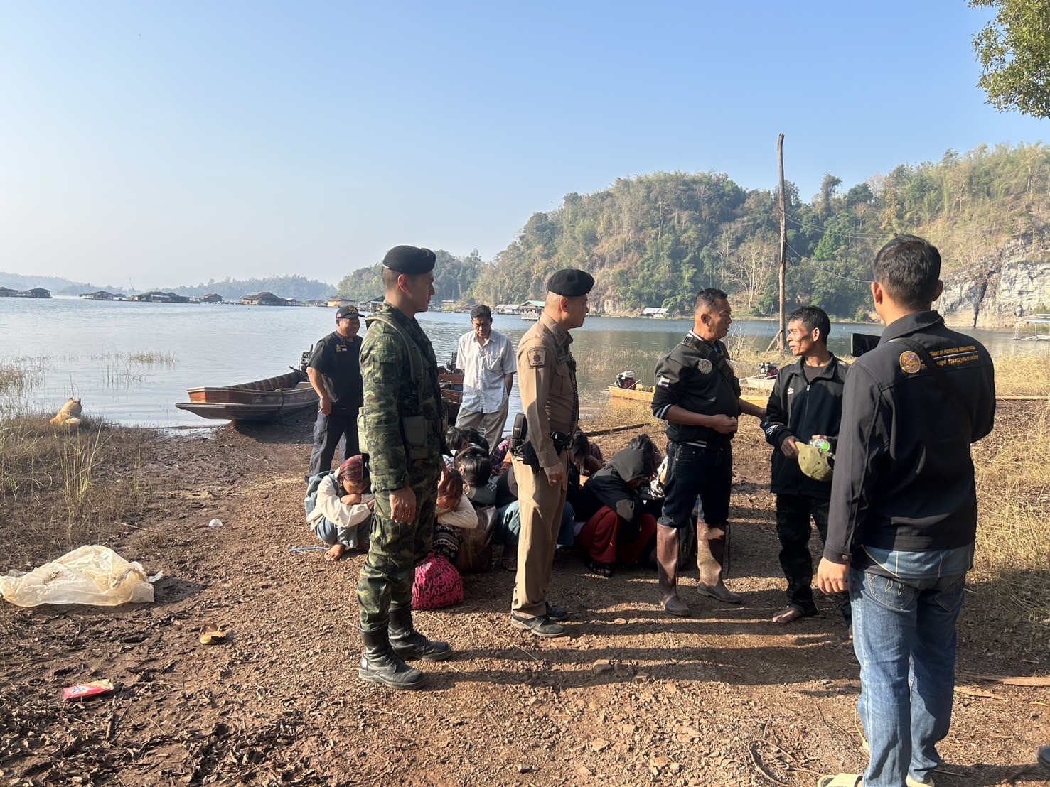 กระทั่งเวลา 04.00 น. ขณะที่เจ้าหน้าที่ดักซุ่มอยู่ สังเกตพบลักษณะคล้ายเรือหางยาว ดับเครื่องยนต์ลอยลำเรือมาทางท่าน้ำหินสามกอง มุ่งหน้ามาทางเขื่อนวชิราลงกรณ จึงได้แสดงตนว่าเป็นเจ้าหน้าที่ และให้สัญญาณหยุดเรือเพื่อจะทำการตรวจสอบ แต่ทันใดนั้นคนขับเรือได้สตาร์ทเครื่องยนต์และเร่งเครื่องหลบหนีเจ้าหน้าที่ไปอย่างรวดเร็ว โดยมุ่งหน้าไปทางเกาะแก้ว แต่เจ้าหน้าที่ฝ่ายความมั่งคงใช้เรือตรวจการณ์เร่งเครื่องยนต์ไล่ติดตามไปอย่างกระชั้นชิด จนกระทั่งคนขับเรือยอมจำนนให้สัญญาณว่าจะมอบตัว เจ้าหน้าที่จึงเข้าควบคุมตัวผู้กระทำความผิดทั้งหมดขึ้นไปบนฝั่ง บริเวณ เกาะกลางน้ำภายในเขื่อนวชิราลงกรณ บ้านจงอั่ว หมู่ 4 ตำบลปรังเผล อำเภอสังขละบุรี จังหวัดกาญจนบุรี จากการตรวจสอบ พบ นาย วิน อายุ 49 ปี ชาว ตำบลปรังเผล อำเภอสังขละบุรี เป็นผู้ขับขี่เรือหางยาวลำดังกล่าวหลบหนีเจ้าหน้าที่ โดยขนแรงงานต่างด้าวผิดกฎหมายมาเต็มเรือ จำนวน 13 คน เจ้าหน้าที่จึงขอตรวจสอบเอกสารประจำตัวที่ทางราชการออกให้ แต่กลุ่มบุคคลดังกล่าวไม่สามารถแสดงเอกสารต่อเจ้าหน้าที่ได้ อีกทั้งยังไม่สามารถสื่อสารภาษาไทยได้ เจ้าหน้าที่จึงได้ทำการควบคุมตัวกลุ่มผู้กระทำความผิดไว้ทั้งหมด และยึดของกลาง (เรือหางยาว) ส่งพนักงานสอบสวน สถานีตำรวจภูธรสังขละบุรี เพื่อดำเนินคดีตามกฎหมายและขยายผลต่อไป
