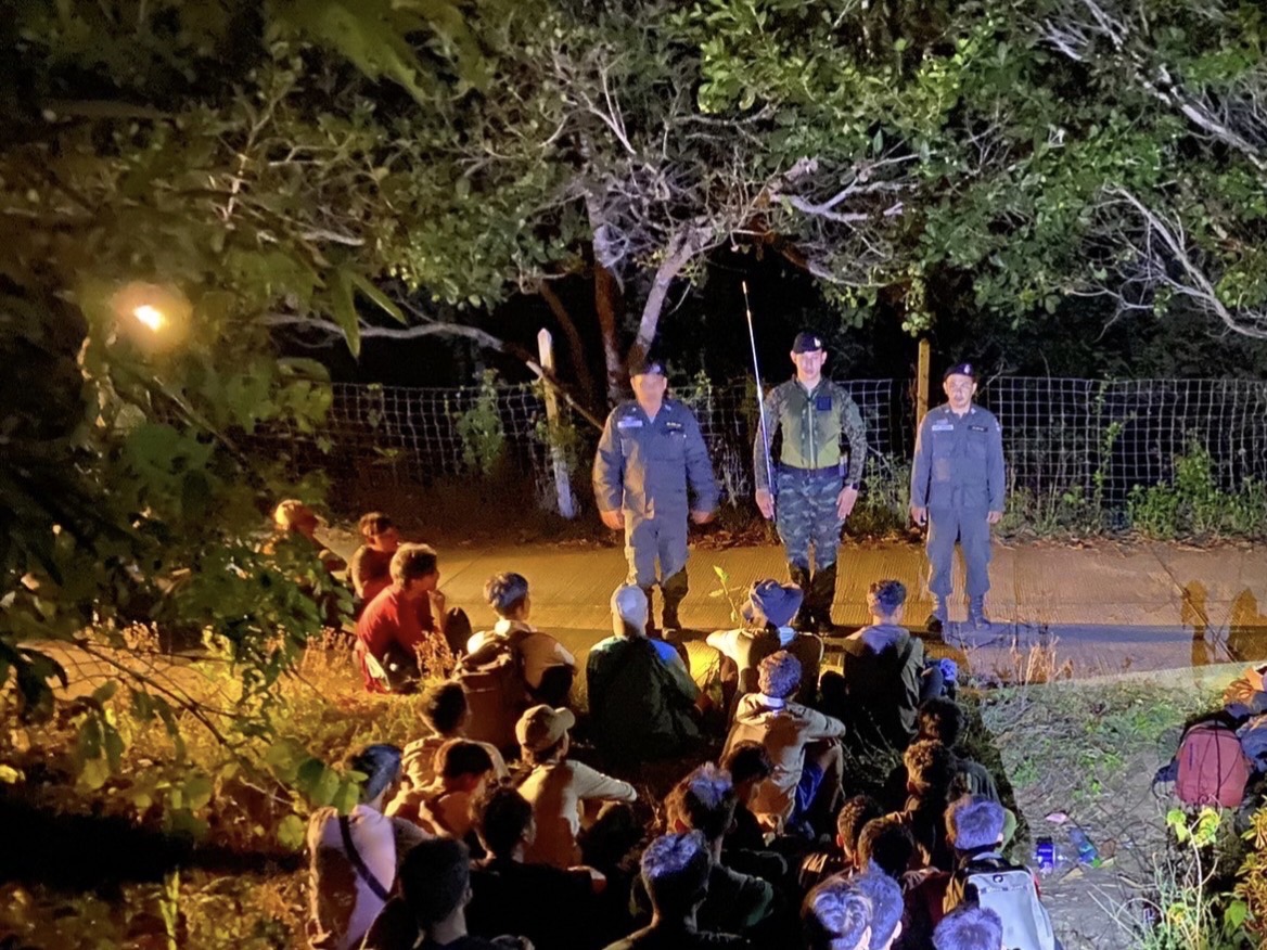 วันเดียวกันนี้ ทหารหน่วยเฉพาะกิจลาดหญ้า กองกำลังสุรสีห์ ร่วมกันจับกุมแรงงานต่างด้าวผิดกฎหมายชาวเมียนมา จำนวน 32 คน ขณะกำลังเดินเท้าเข้ามาตามช่องทางธรรมชาติ บ้านท้ายเหมือง เพื่อมาขึ้นรถยนต์ยังจุดหมาย บริเวณชายป่าใกล้กับฐานปฏิบัติการช่องทางห้วยโมง บ้านท้ายเหมือง ตำบลบ้องตี้ อำเภอไทรโยค จังหวัดกาญจนบุรี และจะมีขบวนการลักลอบนำแรงงานกลุ่มนี้เข้าไปทำงานใน อำเภอมหาชัย จังหวัดสมุทรสาคร ซึ่งจะเสียค่าจ้างให้กับนายหน้า จำนวน 20,000 บาท เมื่อถึงปลายทาง แต่ถูกเจ้าหน้าที่จับกุมได้เสียก่อน จากนั้น เจ้าหน้าที่ได้ทำการควบคุมตัวกลุ่มบุคคลดังกล่าวไว้ และแจ้งข้อกล่าวหา ” เป็นบุคคลต่างด้าวเดินทางเข้ามา และอยู่ในราชอาณาจักรโดยไม่ได้รับอนุญาต” พร้อมนำตัวส่งพนักงานสอบสวน สถานีตำรวจภูธรไทรโยค เพื่อดำเนินคดีตามกฎหมายและขยายผลต่อไป
