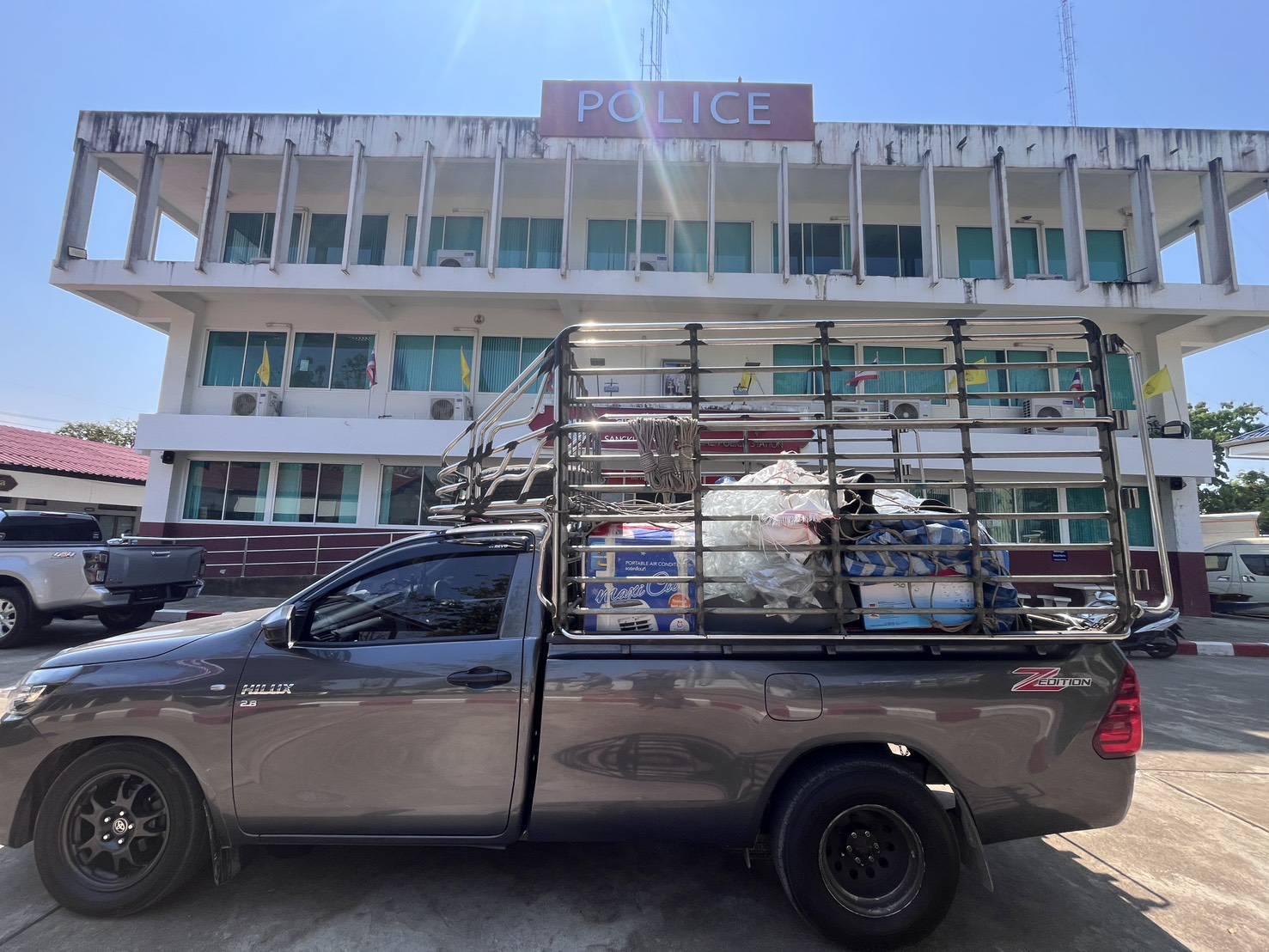 จึงได้ประสาน พ.ต.อ.สันติ พิทักษ์สกุล ผู่กำกับสถานีตำรวจภูธรสังขละบุรี พร้อมลงพื้นที่ตรวจสอบ เมื่อไปถึงพบ รถยนต์กระบะคอก Toyota Revo สีเทา หมายเลขทะเบียน 3ฒผ 815 กทม มีคอกสูงภายในรถมีผ้าใบสีฟ้าคลุมไว้ เมื่อทำการเปิดผ้าใบออกพบว่าภายในมี เครื่องรับสัญญาณดาวเทียมขนาดเล็ก starlink จำนวน 17 เครื่อง เครื่องรับสัญญาณดาวเทียมขนาดใหญ่ starlink จำนวน 4 เครื่อง เครื่องปริ้นเตอร์ยี่ห้อ canon จำนวน 5 เครื่อง โดยมีนายจีนัยโซ ไม่มีชื่อสกุล (ทราบชื่อภายหลัง ) เป็นผู้ขับขี่ ขับขี่มาจาก อำเภอสังขละบุรี มุ่งหน้าไปยัง บ้านพระเจดีย์ล่าง ประเทศเมียนมา