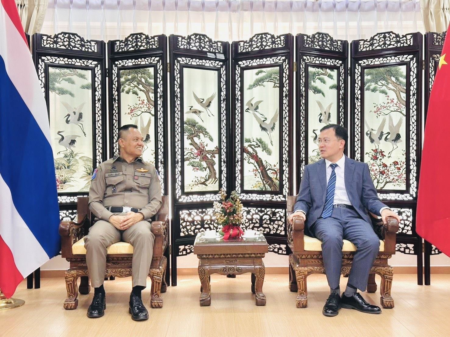 วันนี้ (17 มี.ค.68) เวลา 14.00 น. พล.ต.ท.ศักย์ศิรา เผือกอ่ำ ผบช.ทท. พร้อมด้วย พ.ต.อ.วิเชียร วชิรแสงไพโรจน์ รอง ผบก.ทท.2, พ.ต.อ.พงษ์พิเชษฐ์ นิลจันทร์ ผกก.2 บก.ทท.2 และ พ.ต.อ.รณภัทร เพ็งหยวก ผกก.ฝอ.3 บช.ทท.ได้เข้าร่วมหารือกับนายเฉิน ไห่ผิง กงสุลใหญ่แห่งสาธารณรัฐประชาชนจีนประจำเชียงใหม่ และคณะเพื่อขอบคุณในความร่วมมือที่ผ่านมาและนำเสนอมาตรการและแนวทางคัดกรองบุคคลที่จะเดินทางผ่านประเทศไทยไปยังประเทศที่สาม ณ สำนักงานกงสุลจีนประจำเชียงใหม่