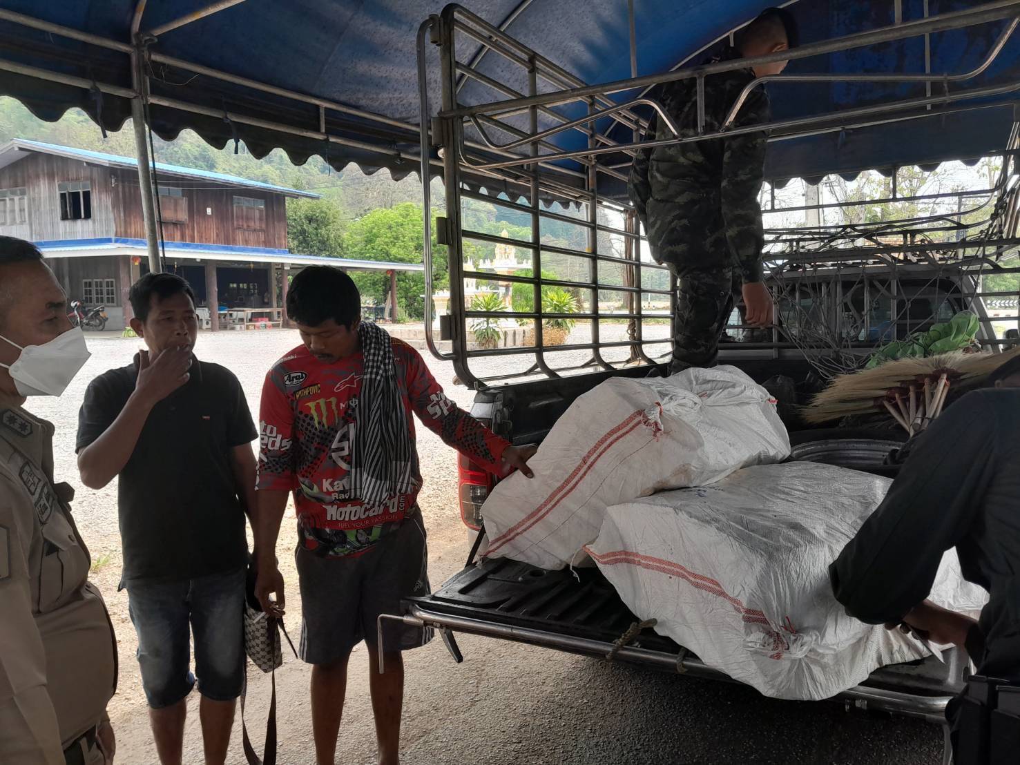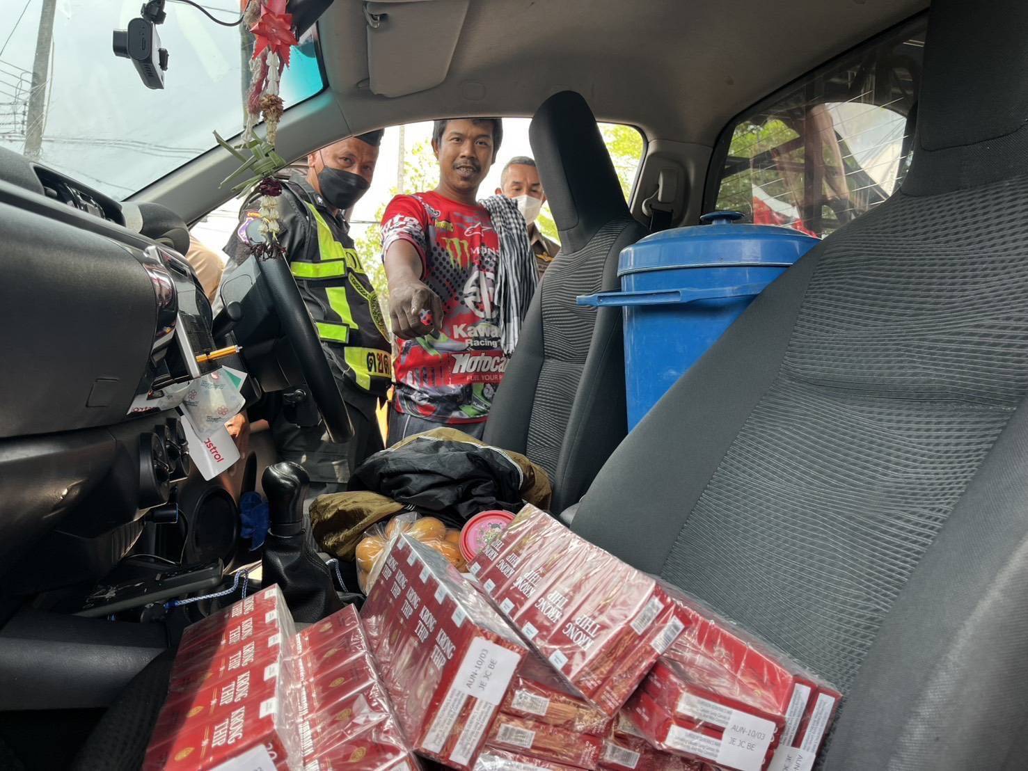 จากการซักถาม นายซอ ยีฯ ให้ข้อมูลว่าตนได้รับการว่าจ้างให้ขับรถขนสินค้าส่งออก (อาหารทะเล) มาจากจังหวัดสมุทรปราการ เพื่อนำสินค้าไปส่งยัง หมู่ 9 ตำบลหนองลู อำเภอสังขละบุรี จังหวัดกาญจนบุรี เมื่อส่งออกสินค้าเสร็จเรียบร้อยแล้ว ได้ติดต่อซื้อบุหรี่เลี่ยงภาษีดังกล่าวจากนายหน้าฝั่งเมียนมา(คอตตอนละ 110 บาท) โดยมีบุคคลไม่ทราบชื่อลักลอบขนบุหรี่เลี่ยงภาษีดังกล่าวมาตามช่องทางธรรมชาติ บ้านพระเจดีย์สามองค์ เพื่อมาส่งให้กับตน บริเวณ บ้านพระเจดีย์สามองค์ โดย นายซอ ยีฯ จะนำบุหรี่ดังกล่าวไปขายให้กับเพื่อนในโรงงานพื้นที่จังหวัดสมุทรสาคร แต่เจ้าหน้าที่สามารถจับกุมได้เสียก่อน เจ้าหน้าที่จึงทำการตรวจยึดของกลางส่ง สถานีตำรวจภธรทองผาภูมิ เพื่อดำเนินการตามกฎหมายต่อไป