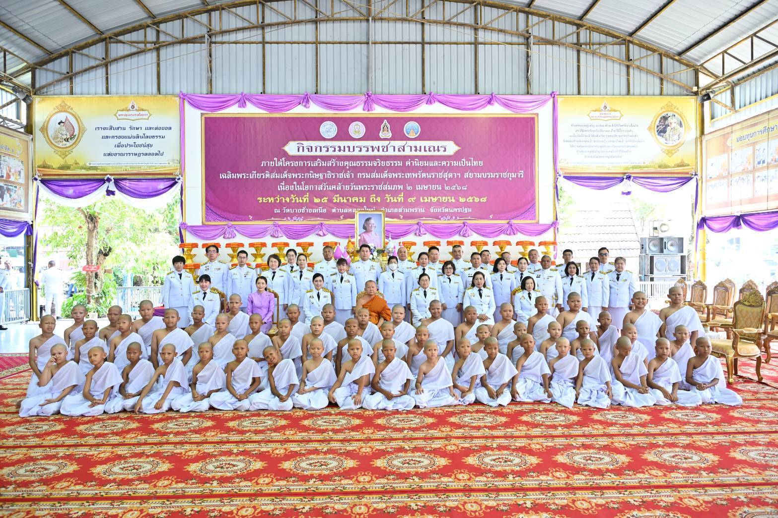 จังหวัดนครปฐม จัดพิธีมอบผ้าไตรและพิธีบรรพชาสามเณร ตามโครงการเสริมสร้างคุณธรรมจริยธรรม ค่านิยมและความเป็นไทย เฉลิมพระเกียรติสมเด็จพระกนิษฐาธิราชเจ้า กรมสมเด็จพระเทพรัตนราชสุดาฯ สยามบรมราชกุมารี เนื่องในโอกาสวันคล้ายวันพระราชสมภพ 2 เมษายน 2568