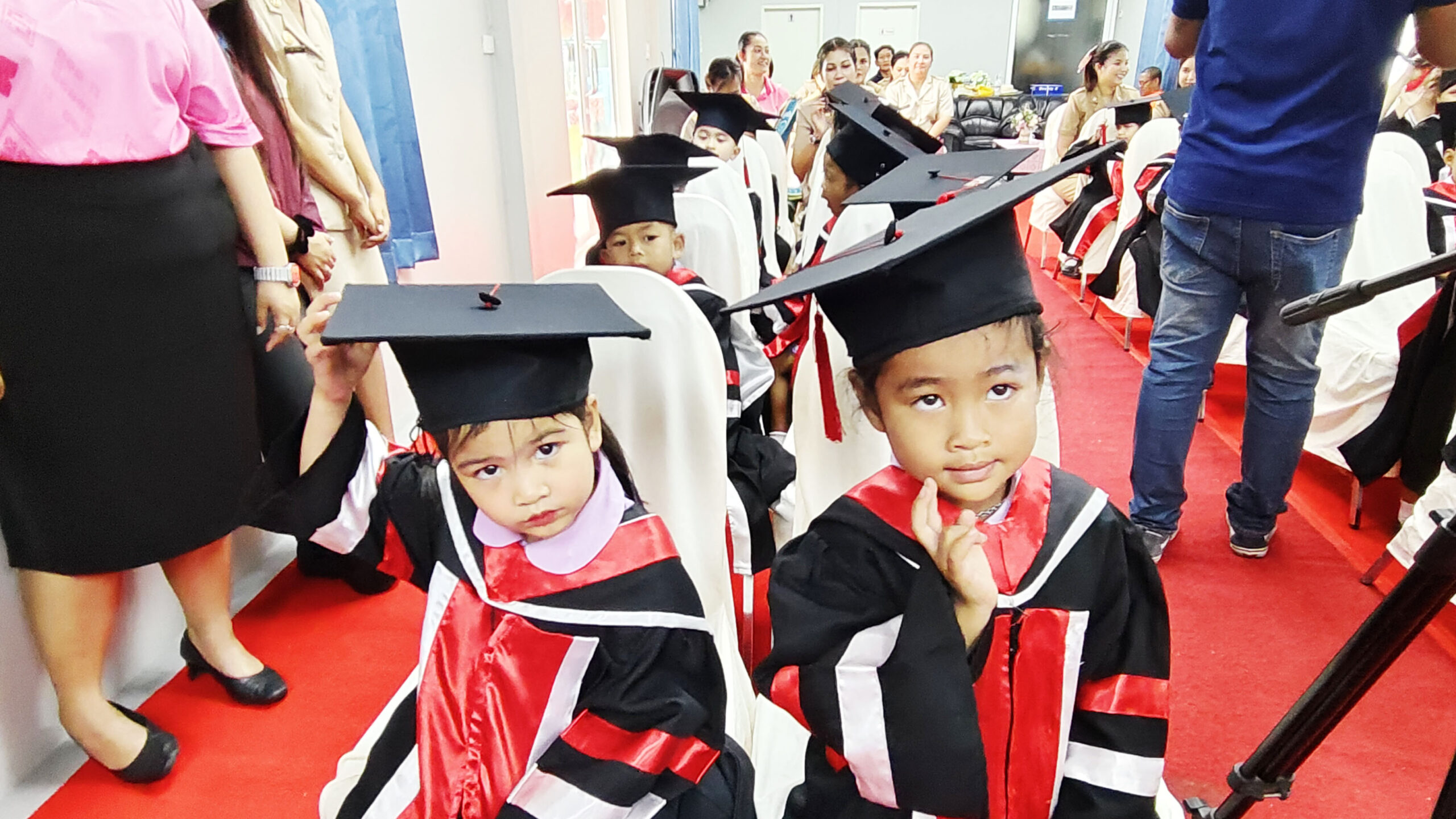 บรรยากาศน่ารักๆ ในพิธีมอบใบประกาศนียบัตรบัณฑิตน้อยของ อบต.ไร่รถ อำเภอดอนเจดีย์ เด็กๆร้องไห้งอแงหาแม่ ครูพี่เลี้ยงเชียร์ขาดใจ กว่าจะจัดให้เด็กๆได้ถ่ายรูปสวยๆไว้เป็นที่ระลึก