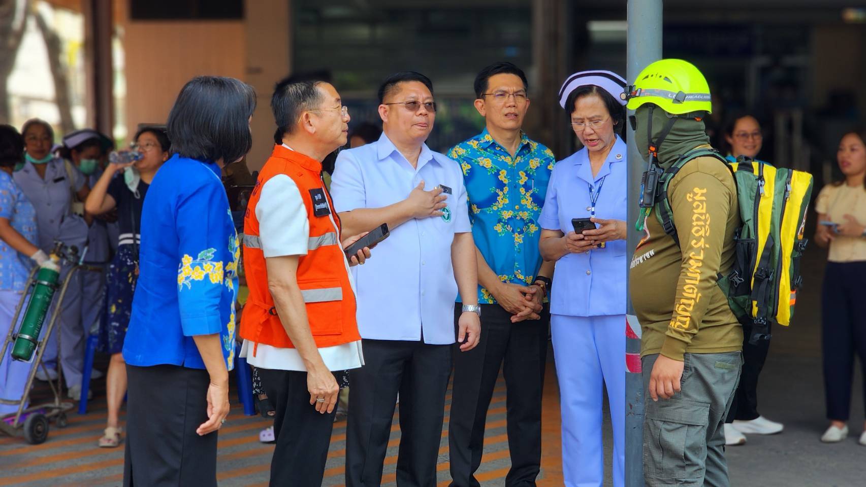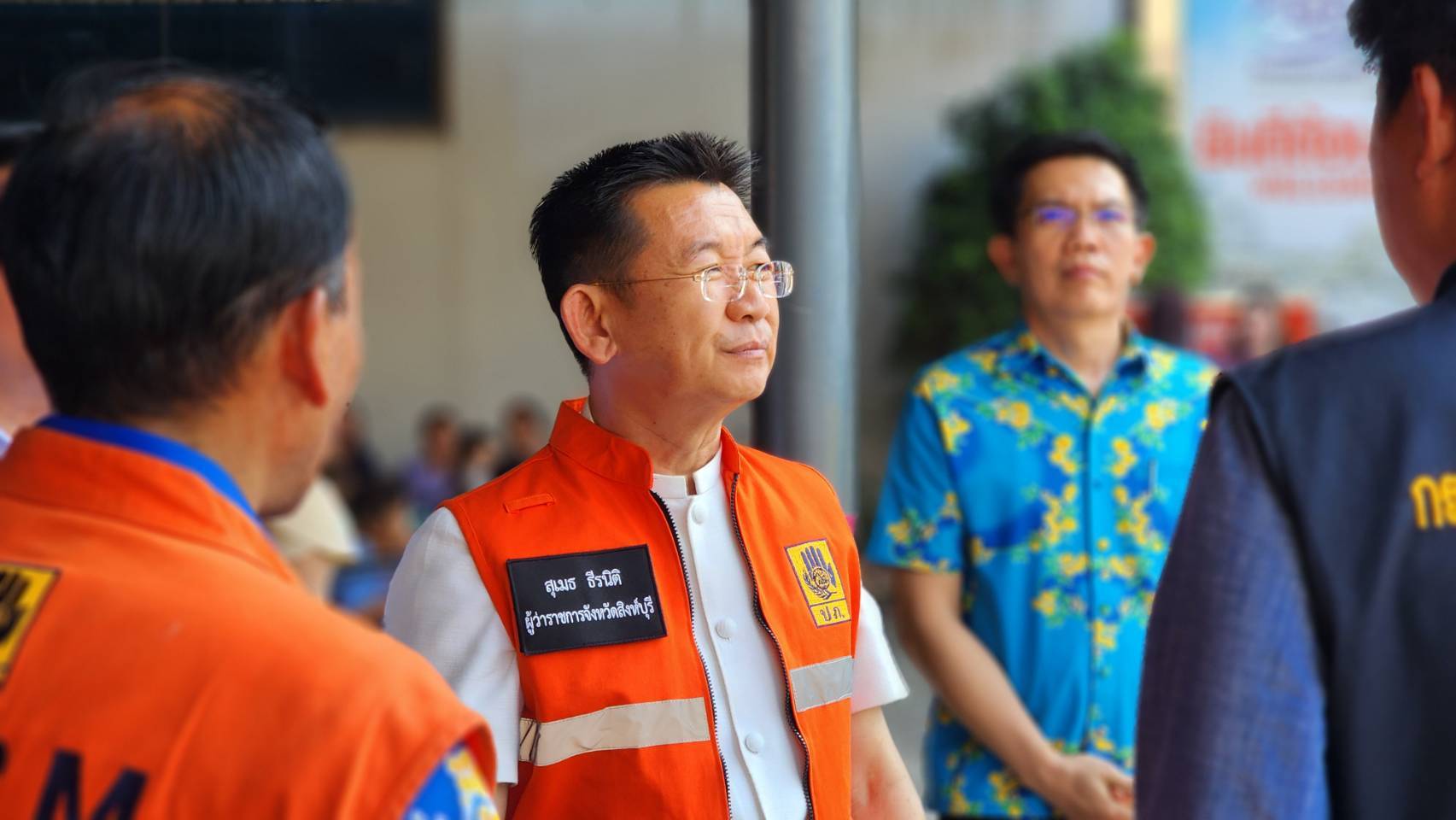 นายสุเมธ ธีรนิติ ผู้ว่าราชการจังหวัดสิงห์บุรี ลงพื้นที่ตรวจสถานการณ์แผ่นดินไหวบริเวณโรงพยาบาลสิงห์บุรี โดยมีนางสาววีรวรรณ จันทนเสวี รองผู้ว่าราชการจังหวัดสิงห์บุรี นางวาสนา ธีรนิติ นายกเหล่ากาชาดจังหวัดสิงห์บุรี นายก อบจ.สิงห์บุรี ทีมแพทย์จากสำนักงานสุขจังหวัดสิงห์ ผู้อำนวยการโรงพยาบาลสิงห์บุรี ตลอดจนพยาบาลและเจ้าหน้าที่ทุกคน ร่วมปฏิบัติการในการเคลื่อนย้ายผู้ป่วยออกมาจากอาคารของโรงพยาบาล ซึ่งตั้งเต็นท์บริเวณถนนด้านหน้าของโรงพยาบาลเพื่อความปลอดภัย