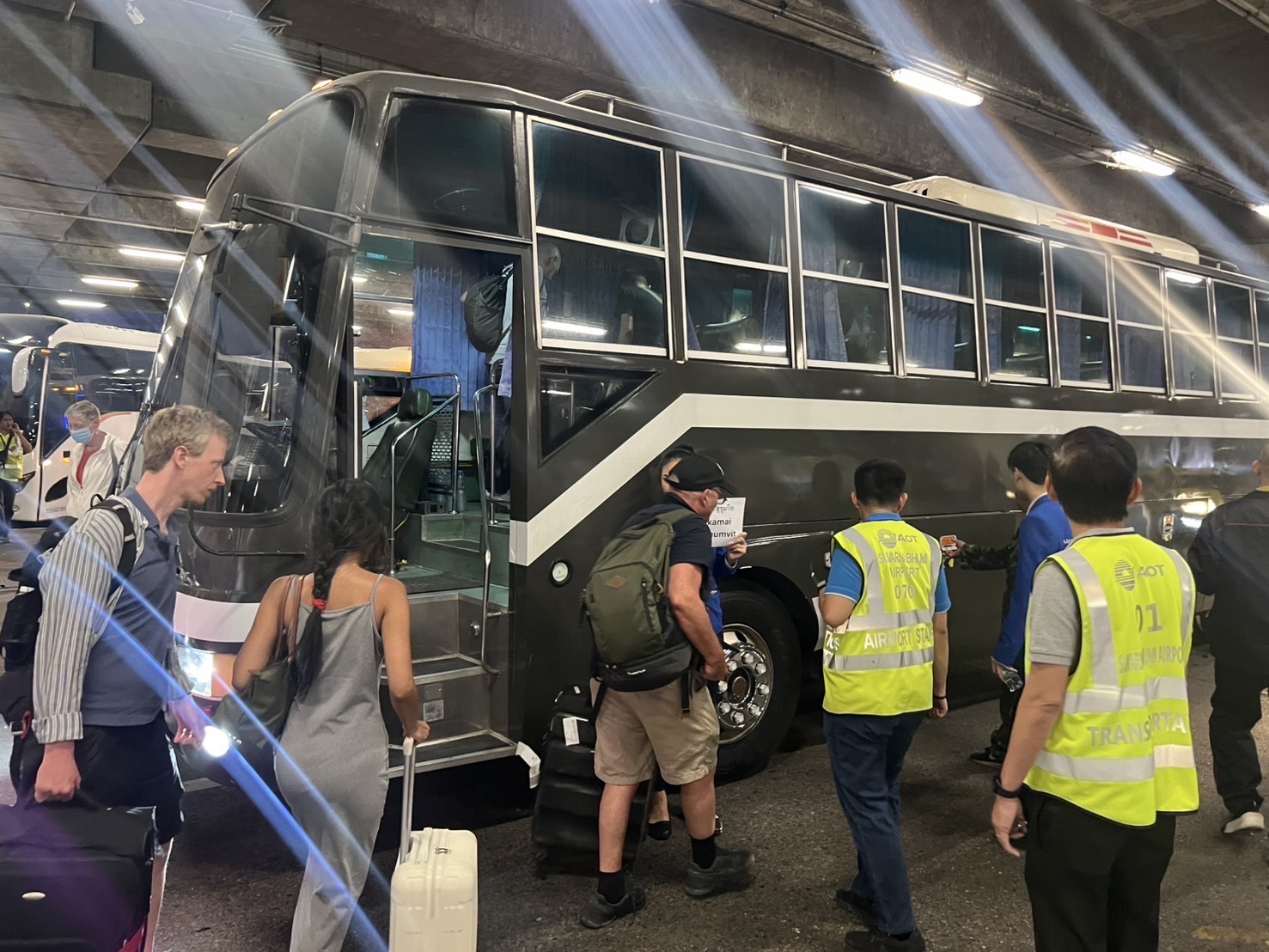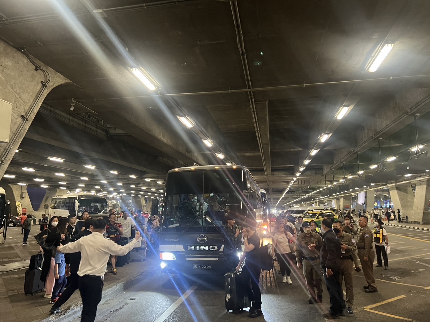 *****สำหรับรถบัสที่ได้รับการสนับสนุนในครั้งนี้ มีรถบัสจากกรมการขนส่งทหารบก จำนวน 2 คัน และ กองพลทหารราบที่ 11 จำนวน 10 คัน โดยรถบัสทั้งหมดจะจอดรับผู้โดยสารที่ บริเวณจุดรอรถแท็กซี่ หน้าอาคารผู้โดยสาร ชั้น 1