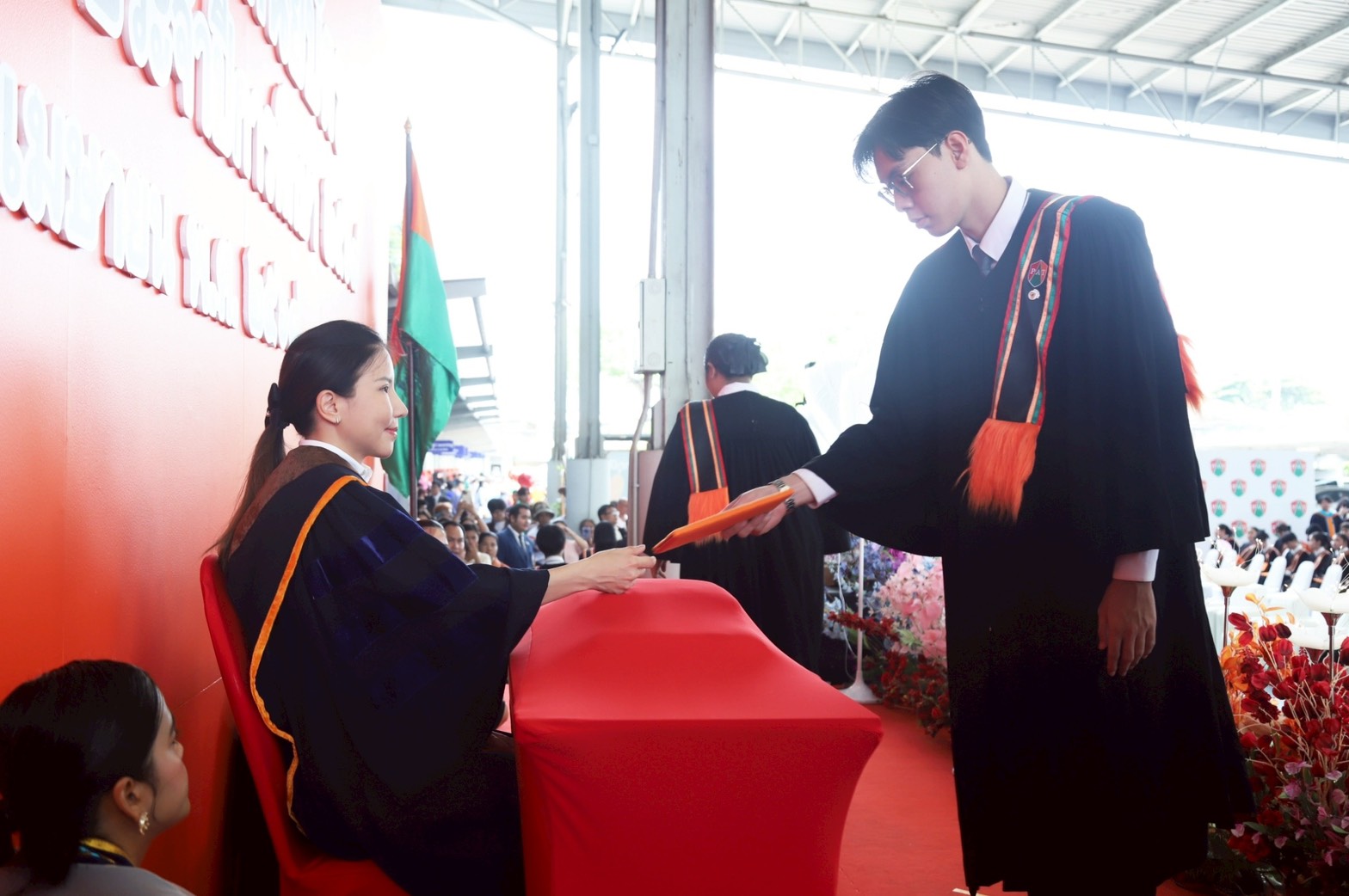 จากนั้น นางสาวปาณิสรา กาญจนะจิตรา รองผู้ว่าราชการจังหวัดนนทบุรีมอบประกาศนียบัตรแก่ผู้สำเร็จการศึกษา แล้วกล่าวแสดงความยินดีและชื่นชมการดำเนินการจัดการศึกษาของบริษัทซีพีออลล์และวิทยาลัยเทคโนโลยีปัญญาภิวัฒน์ ถือเป็นต้นแบบในการจัดการอาชีวศึกษาระบบทวิภาคี มีพันธกิจมุ่งผลิตคนมีคุณภาพ ตลอดสร้างองค์ความรู้และนวัตกรรมด้านการศึกษาในทุกมิติ ผู้สำเร็จการศึกษาทุกคนได้ชื่อว่าเป็นผู้ที่มีความรู้ มีสติปัญญา เปึนที่ยอมรับของสังคม หลายคนมีเป้าหมายในการศึกษาต่อในระดับที่สูงขึ้น ขณะที่บางคนออกไปประกอบอาชีพตามความต้องการเพื่อสร้างรายได้ดูแลตนเองและครอบครัว จึงขอให้ทุกคนมีความตั้งใจ มีความอดทน มีความรับผิดชอบในการเรียนและการปฏิบัติงานเพื่อให้บรรลุผลสำเร็จตามเป้าหมายต่อไป.