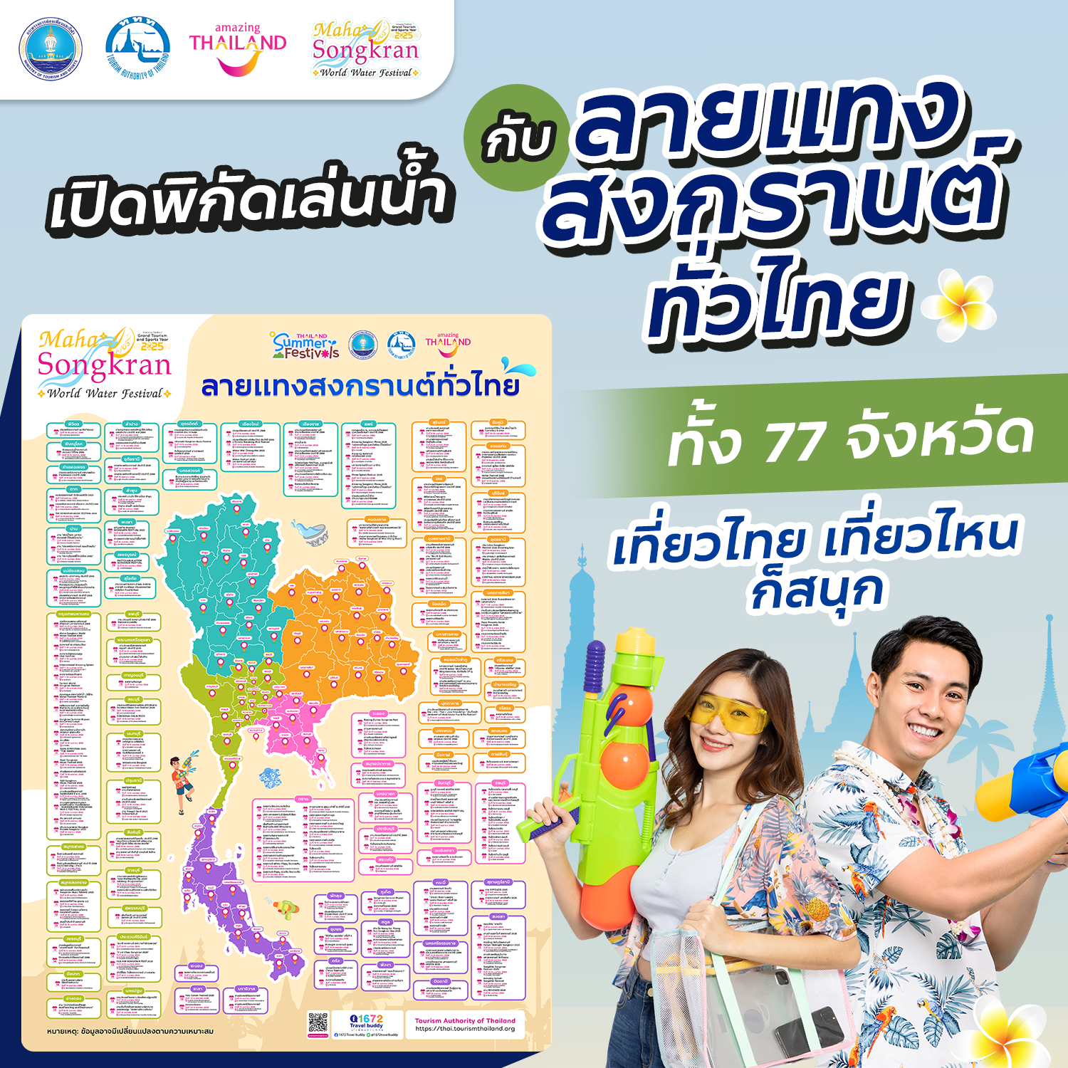 นอกจากนี้ ททท. ยังได้จัดทำ “ลายแทงสงกรานต์ทั่วไทย” ซึ่งเป็นแผนที่เพื่อประชาสัมพันธ์การจัดงานสงกรานต์แต่ละจังหวัดในประเทศไทยทั้ง 77 จังหวัด เพื่อให้นักท่องเที่ยวสามารถเข้าร่วมกิจกรรมเทศกาลสงกรานต์ได้จากทุกภูมิภาคในประเทศไทยและเป็นการกระตุ้นการเดินทางท่องเที่ยวให้กระจายสู่ทั้งเมืองหลักและเมืองรอง ควบคู่ไปพร้อมกับการสร้างความเชื่อมั่น ให้นักท่องเที่ยวสามารถท่องเที่ยวในเทศกาลสงกรานต์ได้อย่างมั่นใจและปลอดภัยจากทุกภูมิภาคของประเทศไทย