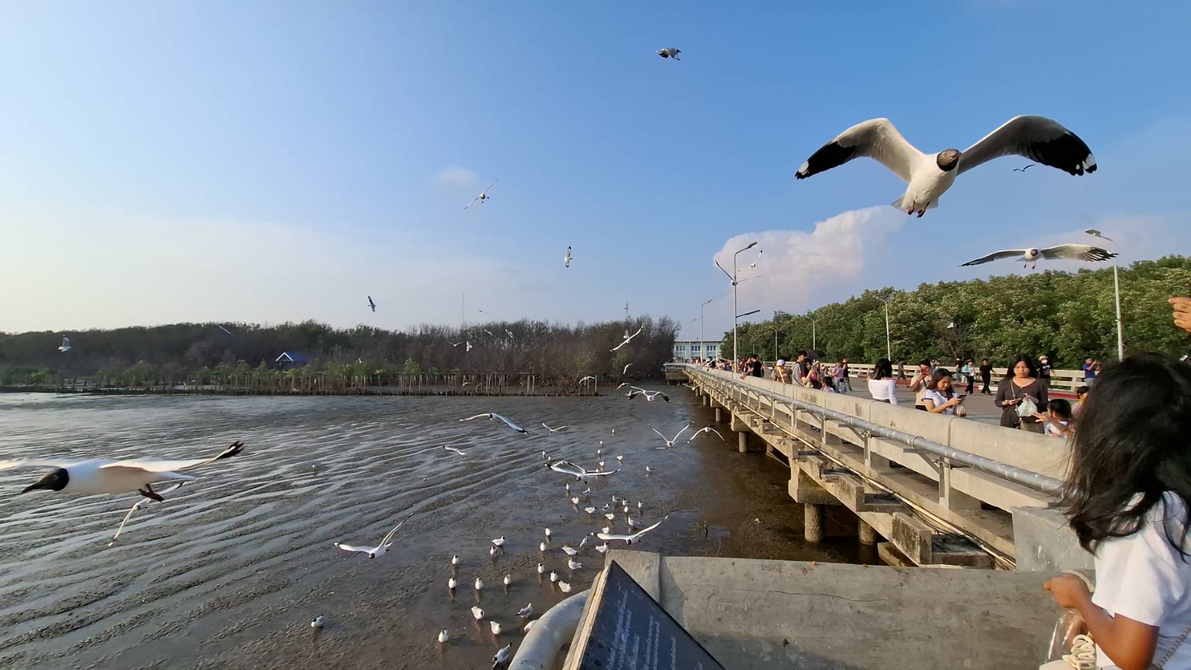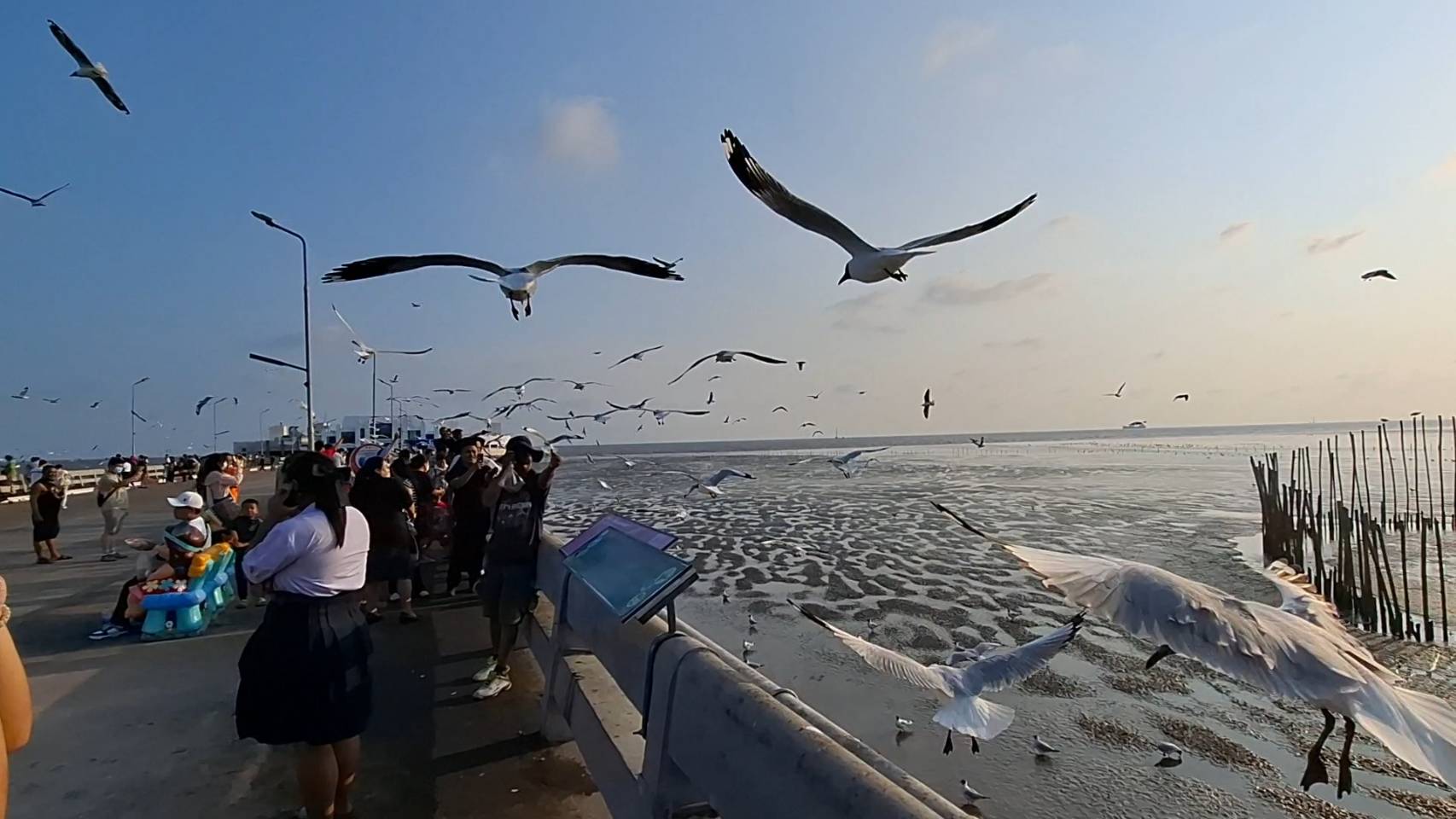 เมื่อช่วงเย็นที่ผ่านมา ( วันที่ 7 เมษายน 68 ) ผู้สื่อข่าวได้เดินทางไปที่ สถานตากอากาศบางปู หรือ ศูนย์ศึกษาธรรมชาติกองทัพบก เฉลิมพระเกียรติ 72 พรรษา มหาราชินี จังหวัดสมุทรปราการ เพื่อไปชมฝูงนกนางนวลอพยพหนีหนาวจากไซบีเรีย มาอาศัยอยู่แถวอ่าวบางปู ซึ่งเป็นช่วงโค้งสุดท้ายแล้วที่จะได้ ชมฝูงนกนางนวลดังกล่าว และช่วงนี้จะเป็นช่วงที่นกเยอะที่สุด ที่จะบินให้ยลโฉม บินมากินกากหมู ที่ประชาชนที่มาชมนกสามารถให้กากหมูถึงปากนกอย่างเอ็กซ์คลูซีฟ และราคากากหมูเพียงแค่ 20 บาท ก่อนช่วงต้นเดือนพฤษภาคม ฝูงนกนางนวลดังกล่าวจะเริ่มทยอยบินกลับไซบีเรียไป และจะบินกลับมาอีกครั้งช่วงปลายปี ซึ่งในวันนี้ นักท่องเที่ยว ต่างพาครอบครัว มาชมฝูงนกกันเป็นจำนวนมาก โดยนกนวลจะบินอยู่บริเวณกลางสะพานสุดตา และสุดสะพานจะเป็นศาลาสุขใจ จะมีร้านอาหาร และเป็นจุดเช็คอินสำคัญอีกแห่งหนึ่ง โดยนักเที่ยวที่มาชมฝูงนกนั้นจะขาดไม่ได้กับการถ่ายรูปการให้อาหารกับฝูงนกกันอย่างสนุกสนาน
