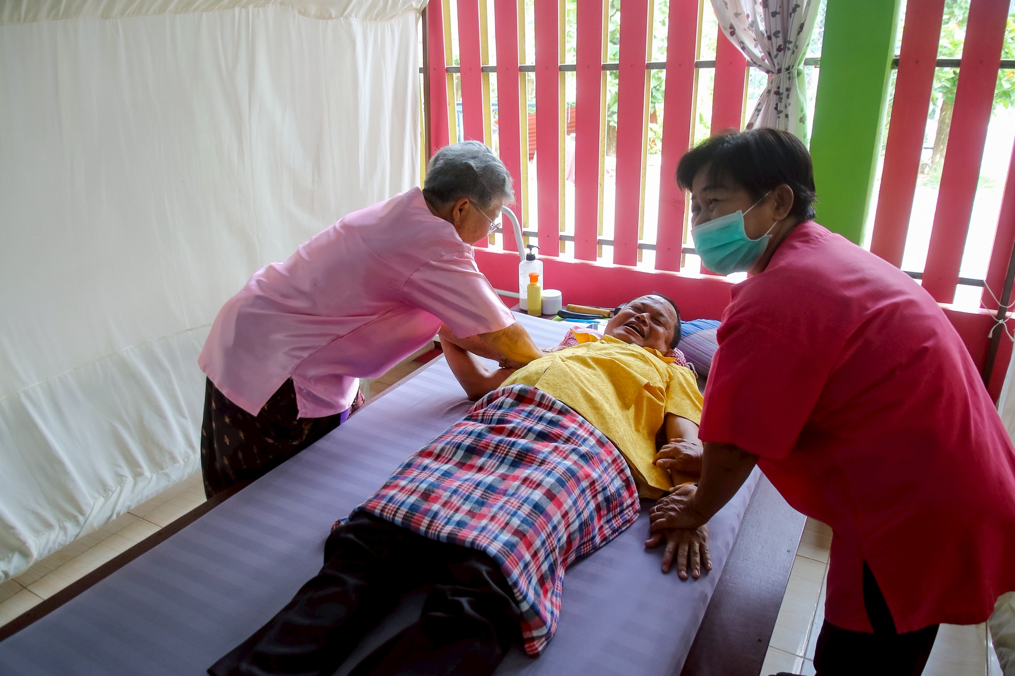 ณ กลุ่มวิสาหกิจชุมชนอาภานวดแผนไทยเพื่อสุขภาพ หมู่ที่ 6 ต.บางเจ้าฉ่า อ.โพธิ์ทอง จ.อ่างทอง