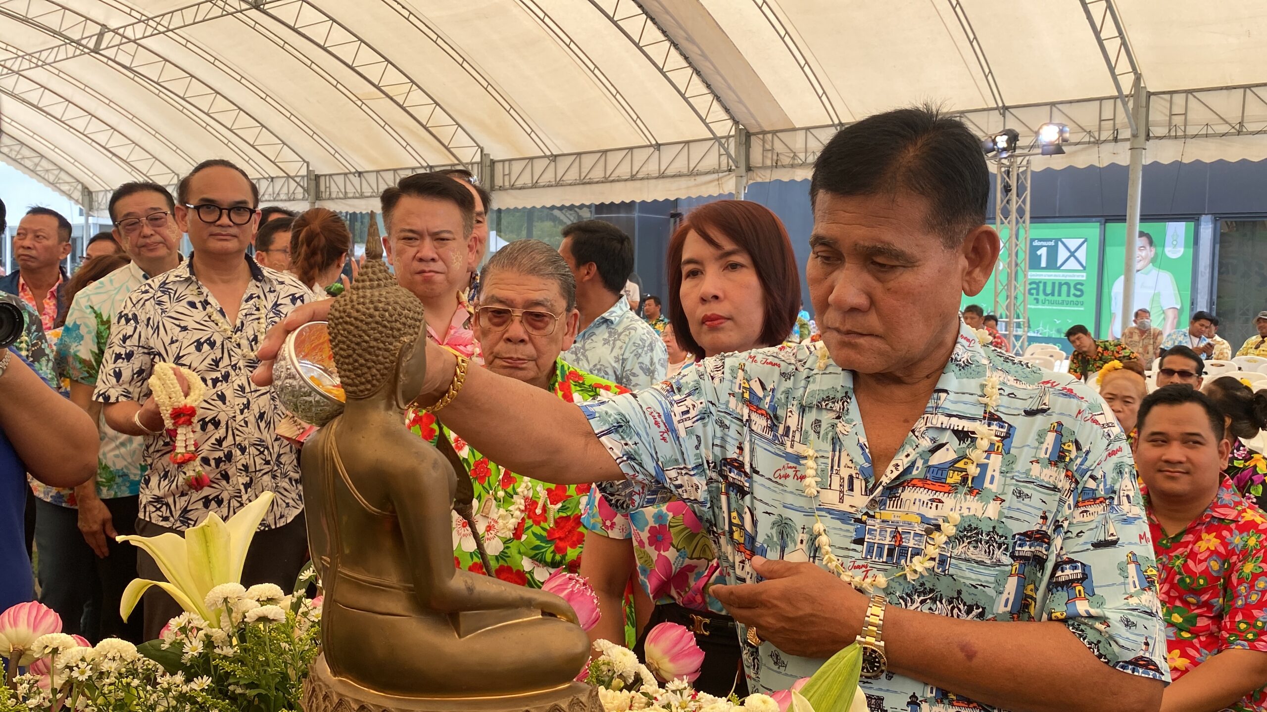 สมุทรปราการ นายก อบจ.เปิดบ้านขาวทำบุญเทศกาลสงกรานต์ และรดน้ำ ดำหัว ขอพร