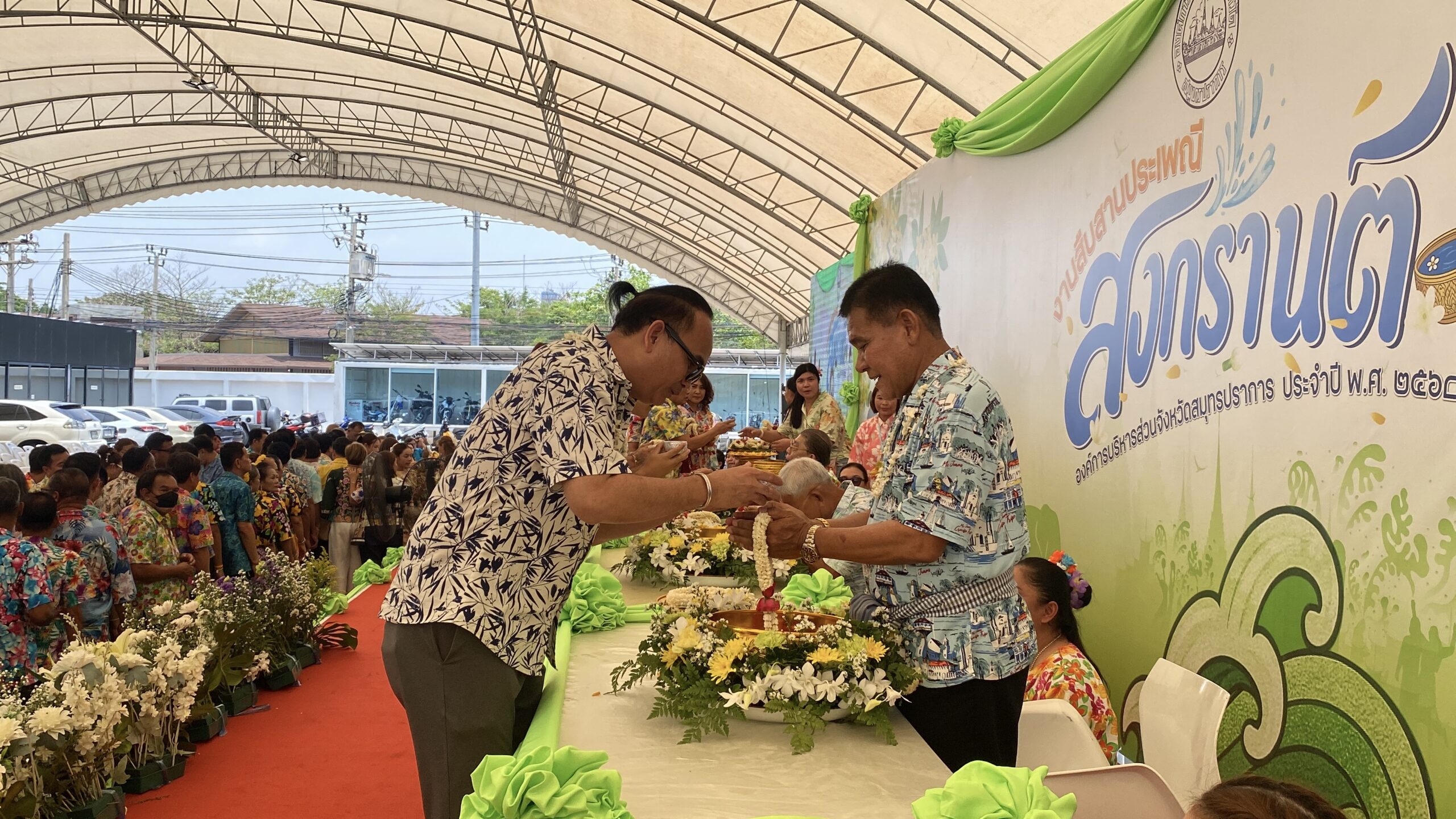 โดยมี นายฉะโอด รุ่งเรือง ที่ปรึกษานายกองค์การบริหารส่วนจังหวัดสมุทรปราการ นายสมควร ชูไสว ประธานสภา อบจ.สมุทรปราการ ซึ่งเป็นผู้ใหญ่ใน อบจ.ร่วมให้รดน้ำดำหัวขอพรด้วย โดยมีนายอัครวัฒน์ อัศวเหม นายวรพร อัศวเหม นายต่อศักดิ์ อัศวเหม รองนายก อบจ.สมุทรปราการ นายสมควร ชูไสว ประธานสภา อบจ.สมุทรปราการ นายสิทธิไชย เชื้อไทย นายพิษณุวัส คำงาม เลขานุการ นายก อบจ.สมุทรปราการ ตลอดจนคณะผู้บริหาร หัวหน้าส่วนราชการหน่วยงานองค์กรปกครองส่วนท้องถิ่น บุคลากรในสังกัด อบจ.สมุทรปราการ และกลุ่มสมุทรปราการก้าวหน้า เข้าร่วมรดน้ำดำหัวขอพร เพื่อเป็นการแสดงความรักความเคารพนับถือและเป็นการขอพรเพื่อความเป็นสิริมงคลแก่ชีวิต สร้างขวัญและกำลังใจในการทำงาน อีกทั้งยังเป็นการอนุรักษ์วัฒนธรรมประเพณีที่ดีงามให้คงอยู่สืบไป