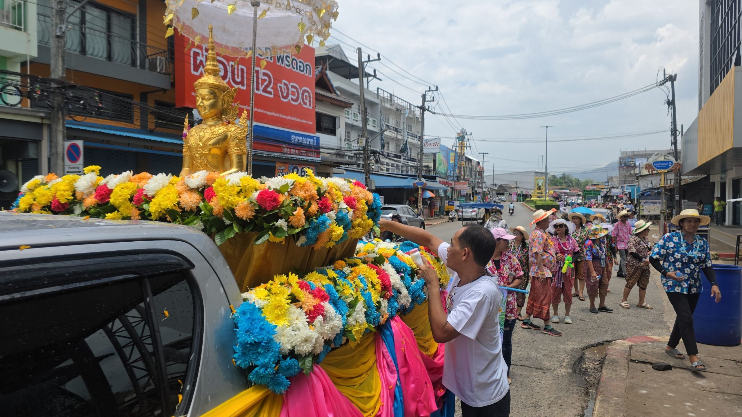 กาญจนบุรี ทต.ทองผาภูมิ ประธานใหญ่โครงการจัดงานประเพณีสงกรานต์ 2568 ควงแขนคณะทำงานฯ เคลื่อนขบวนแห่สรงน้ำพระพุทธรูปทองคำ ระยะทางเกือบ 5 กิโลเมตร ชาวบ้านในพื้นที่ ตลอดจนนักท่องเที่ยวชาวไทย และชาวต่างชาติ ให้ความสนใจกันอย่างล้นหลาม ทำเอาถนนสายนี้รถติดกันเป็นหลายกิโลทีเดียว