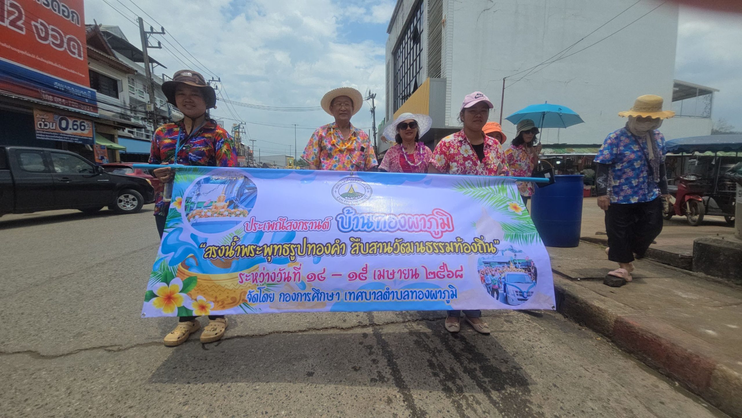 วันที่ 15 เมษายน 2568 ที่สำนักงานเทศบาลตำบลทองผาภูมิ อำเภอทองผาภูมิ จังหวัดกาญจนบุรี นายศราวุธ ศรีทันดร นายกเทศมนตรีตำบลทองผาภูมิ เป็นประธานเปิดโครงการจัดงานประเพณีสงกรานต์ ประจำปี 2568 (งานวันที่2) โดยมีคณะทำงานฯ ร่วมกันเดินแห่เคลื่อนขบวนแห่สรงน้ำพระพุทธรูปทองคำ จากสำนักงานเทศบาลตำบลทองผาภูมิ ถึงวัดท่าขนุน ซึ่งเป็นระยะทางเกือบ 5 กิโลเมตร มีชาวบ้านในพื้นที่ ตลอดจนนักท่องเที่ยวชาวไทย และชาวต่างชาติ ร่วมกันสรงน้ำพระตลอดเส้นทางที่ขบวนเคลื่อนผ่านทั้งสองข้างทางโดยตลอด มีกิจกรรมก่อพระเจดีย์ทราย ณ วัดท่าขนุน กิจกรรมทอดผ้าป้ามหาสงกรานต์ ณ วัดท่าขนุน ประเพณีอุ้มพระสรงน้ำผ่านรางน้ำ ณ วัดท่าขนุน และการเล่นน้ำปะแป้งสืบสานประเพณี ณ สวนสาธารณะเฉลิมพระเกียรติ ร.๙ (ท่าน้ำเทศบาลตำบลทองผาภูมิ)