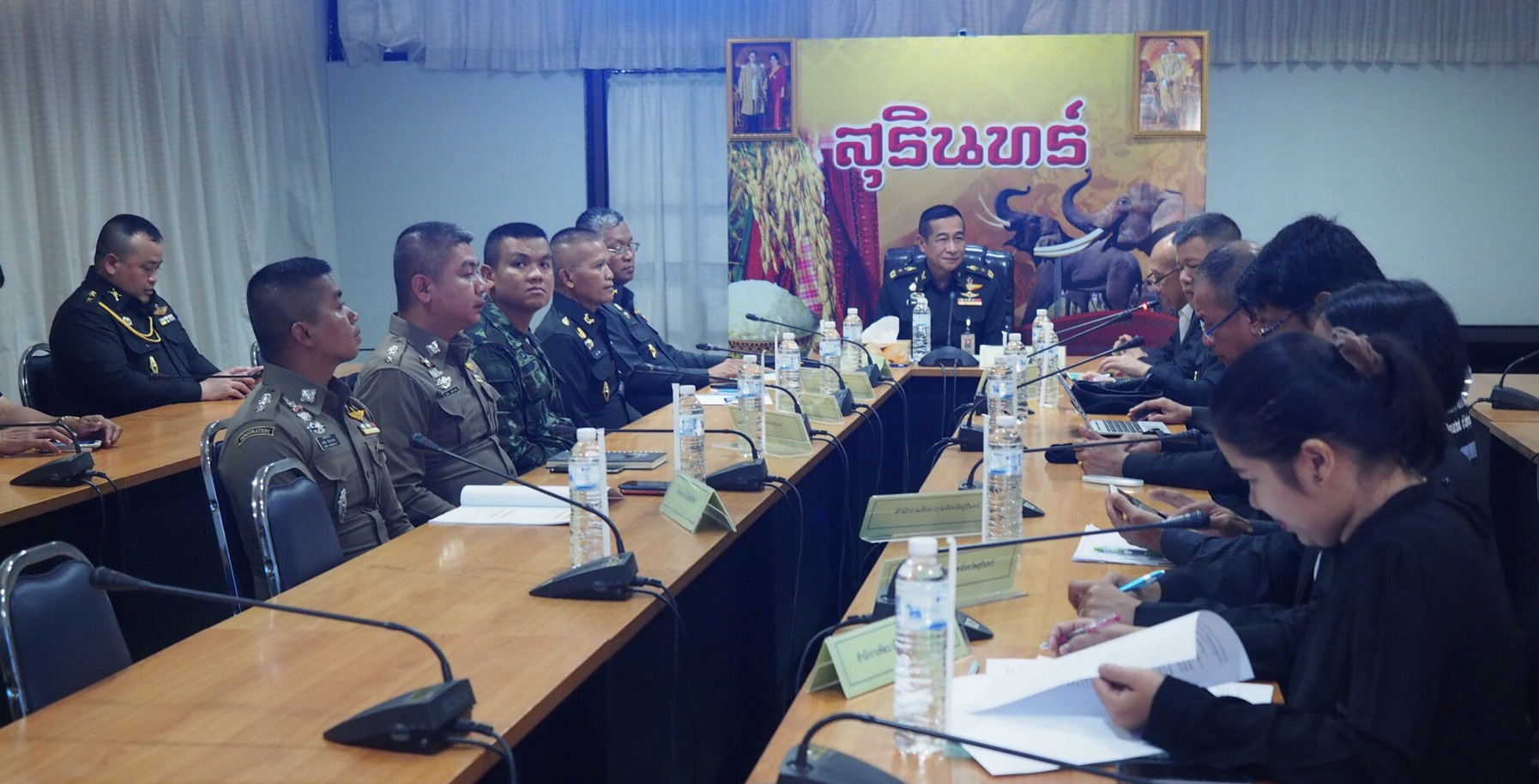 ตามนโยบายของรัฐบาลในการจัดระเบียบแรงงานต่างด้าว ให้อยู่ในขอบเขตที่สามารถควบคุมได้และไม่ก่อให้เกิดผลกระทบทางด้านเศรษฐกิจและสังคม เพื่อปฏิบัติตามนโยบายดังกล่าว พล.ท.กิตติธัช บุพศิริ ผู้อำนวยการศูนย์ประสานการปฏิบัติที่ ๒ กอ.รมน. และคณะ ฯ จึงได้ลงพื้นที่ กอ.รมน.จังหวัดสุรินทร์ เมื่อวันที่ 30 พ.ค. ๖๒ เวลา ๑๓๓๐ เพื่อขับเคลื่อนโครงการต่าง ๆ ของ กอ.รมน. โดยมีวัตถุประสงค์เพื่อมาเยี่ยมเยือนให้กำลังใจแก่เจ้าหน้าที่ผู้ปฏิบัติงานในส่วนที่เกี่ยวข้อง ตลอดจนรับทราบผลการดำเนินงาน และปัญหาข้อขัดข้องในการปฏิบัติงานของหน่วยงานต่างๆ นอกจากนี้ยังเป็นการดำเนินการตามขอบเขตอำนาจหน้าที่ของ กอ.รมน. ซึ่งมีงานที่จะต้องขับเคลื่อนเพื่อให้เป็นไปตามนโยบายของรัฐบาลในมิติด้านความมั่นคงทางสังคม ซึ่งประกอบด้วยงานหลัก ๓ งาน ได้แก่ การป้องกันและแก้ไขปัญหาแรงงานต่างด้าว และผู้หลบหนีเข้าเมืองโดยผิดกฎหมาย การจัดระเบียบสังคม และการป้องกันและแก้ไขปัญหายาเสพติด โดยมีนายพรพจน์ บัณฑิตยานุรักษ์ รองผู้ว่าราชการจังหวัดสุรินทร์ ให้การต้อนรับและบรรยายสรุปสถานการณ์ด้านแรงงานต่างด้าวผิดกฎหมาย ปัญหายาเสพติด การค้ามนุษย์ และการจัดระเบียบสังคม ภายหลังเสร็จสิ้นการบรรยายสรุปผลการปฏิบัติงานของส่วนราชการต่าง ๆ ในพื้นที่ รวมทั้งรับทราบปัญหาข้อขัดข้องและข้อเสนอแนะในการปฏิบัติงานของหน่วยงานที่เกี่ยวข้องแล้ว พล.ท.กิตติธัช บุพศิริ ผู้อำนวยการศูนย์ประสานการปฏิบัติที่ ๒ กอ.รมน. และเจ้าหน้าที่ทีมสหวิชาชีพของจังหวัดสุรินทร์ได้เดินทางไปตรวจสอบการจ้างแรงงานต่างด้าวในสถานประกอบการแห่งหนึ่งในพื้นที่จังหวัดสุรินทร์ รวมทั้งมีการสุ่มตรวจปัสสาวะแรงงานต่างด้าวเพื่อหาสารเสพติด