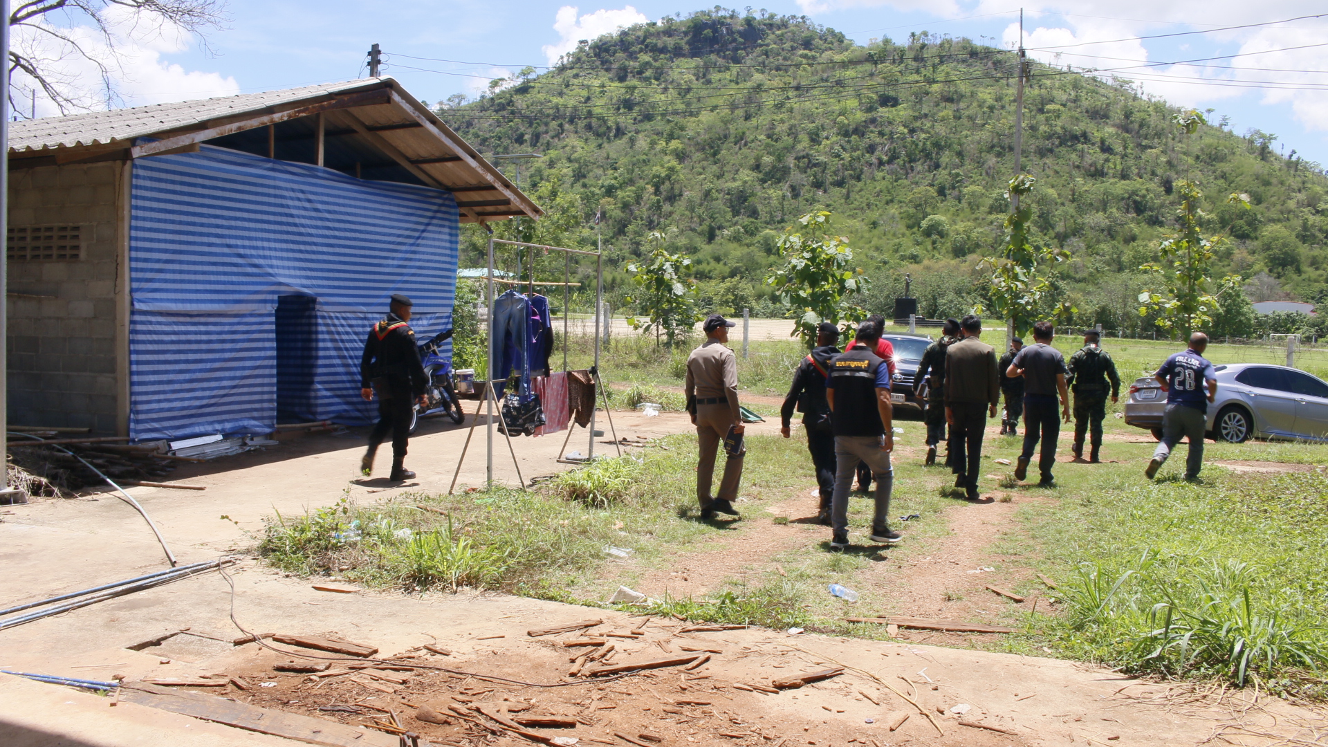 วันนี้ 20 เม.ย. 2568 ผู้สื่อข่าวรายงานว่า ที่บริเวณบ้านพุน้ำร้อน หมู่ที่ 12 ตำบลบ้านเก่า อำเภอเมือง จังหวัดกาญจนบุรี โดยนายอธิสรรค์ อินทร์ตรา ผู้ว่าราชการจังหวัดกาญจนบุรี ได้มอบหมายให้ นายวุฒิพงษ์ สุภัควนิช รองผู้ว่าราชการจังหวัดกาญจนบุรี เดินทางพร้อมด้วยพันเอกพรรณศักย์ เพรียวพานิช ผู้บังคับการกรมทหารราบที่ 29 กองพลทหารราบที่ 9 ในฐานะผู้บังคับการกรมทหารราบเฉพาะกิจที่ 29 (ฉก.ลาดหญ้า) นายประสาน สงวนพันธุ์ นายกองค์การบริหารส่วนตำบลบ้านเก่า และอีกหลายหน่วยงานลงพื้นที่บริเวณชายแดนบ้านพุน้ำร้อน ลงตรวจสอบพื้นที่หลังจากในฝั่งชายแดน บ้านทิคี้ ติดชายแดนบ้านพุน้ำร้อน ได้เกิดมีการสู้รบกันระหว่างทหารกะเรี่ยง (KNLA.) กับ ทหารเมียนมา ในพื้นที่บ้านแม่น้ำธิทะ กิ่งอำเภอเมตตา จังหวัดทวาย ประเทศสาธารณรัฐแห่งสหภาพเมียนมา จนประชาชนที่อยู่อาศัยบริเวณดังกล่าวได้พากันหนีภัยการสู้รบเข้ามาพึ่งไทยเบื้องต้นกว่า 300 คน มีทั้งเด็ก ชายหญิงผู้สูงอายุ ทางฝ่ายไทยยังเพียงดูไม่ให้เข้ามาในฝั่งแดนไทย เพียงส่งเสียงอาหารไปช่วยเพื่อนมนุษยธรรมเท่านั้น