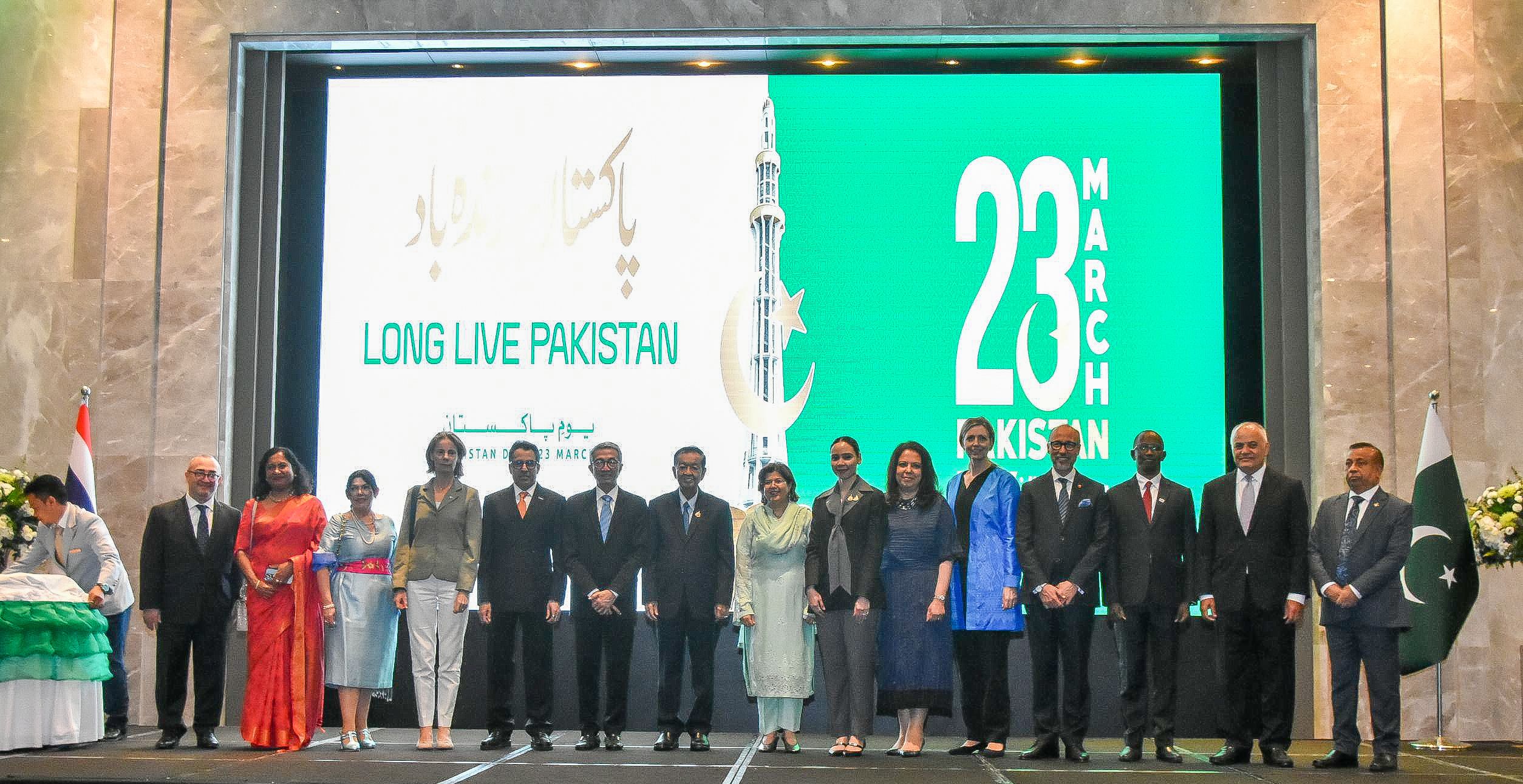 ภายในงานได้รับเกียรติจาก ฯพณฯ รุคซานา อัฟซอล เอกอัครราชทูตสาธารณรัฐอิสลามปากีสถานประจำประเทศไทย เป็นประธานกล่าวเปิดงาน พร้อมด้วยคณะทูตานุทูตกว่า 40 ประเทศเข้าร่วมแสดงความยินดีอย่างพร้อมเพรียง สะท้อนถึงความสัมพันธ์อันดีระหว่างทุกประเทศ ทั้งนี้ยังได้รับเกียรติจาก นายวันมูหะมัดนอร์ มะทา ประธานรัฐสภาและประธานสภาผู้แทนราษฎร และนางสาวซาบีดา ไทยเศรษฐ์ รัฐมนตรีช่วยว่าการกระทรวงมหาดไทย (มท.3) เข้าร่วมงานเลี้ยงการเฉลิมฉลองครบรอบ 85 ปี วันชาติปากีสถาน ในฐานะแขกเกียรติยศ บรรยากาศค่ำคืนนั้นยังเต็มไปด้วยสีสันของ การแสดงวัฒนธรรม และแฟชั่นโชว์ของปากีสถานที่สะท้อนอัตลักษณ์และศิลปะของชาติได้อย่างงดงามท่ามกลางมิตรภาพและสายสัมพันธ์ระหว่างประเทศที่ยังคงแน่นแฟ้น