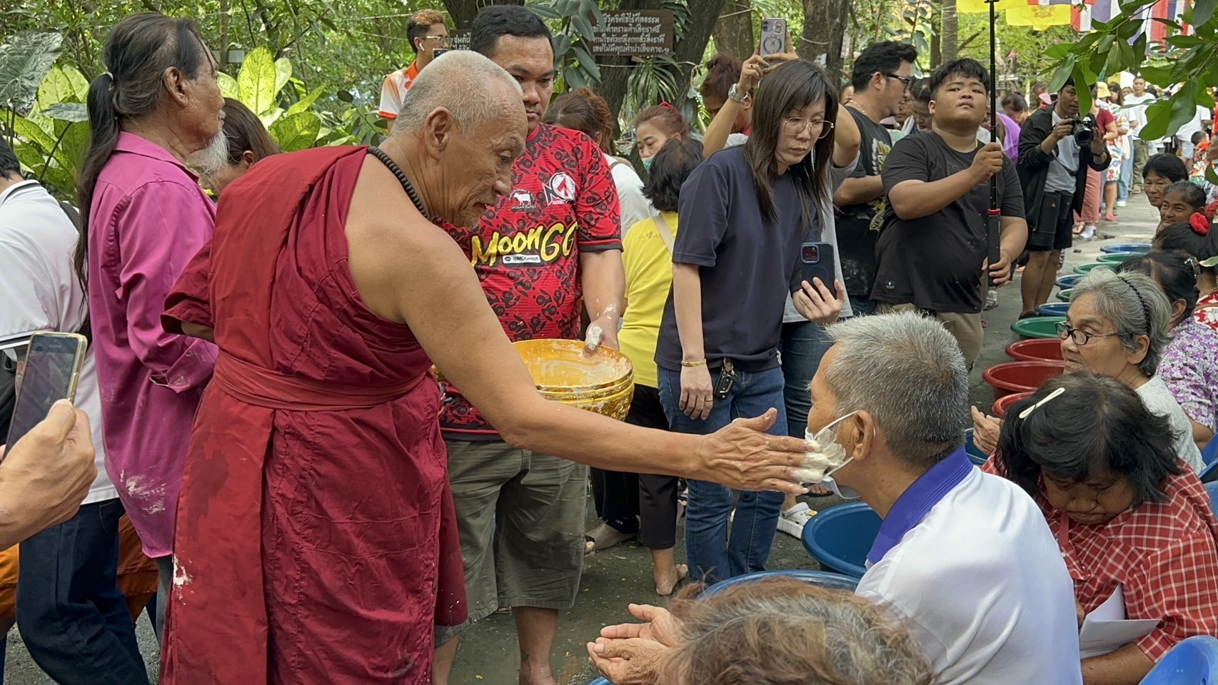 ********สำหรับกิจกรรมภายในงานที่จัดขึ้น เริ่มตั้งแต่ช่วงเช้าที่ผ่านหลวงพ่อแป๊ะ ได้ประกอบพิธีสาวน้ำตาเทียนและลงยันต์หลังมือ เปิดฟ้า เปิดดิน เปิดเมืองบาดาล จากนั้นหลังเที่ยงจัดพิธีสรงน้ำพระเพื่อความเป็นสิริมงคล โดยได้นิมนต์พระสงฆ์จากวัดต่างๆ ในพื้นที่ใกล้เคียง จำนวน 108 รูป มาให้ชาวพุทธได้สรงน้ำขอพร นอกจากนี้ยังมีรดน้ำดำหัวขอพรผู้สูงอายุ ที่มีอายุไม่ต่ำกว่า 70 ปี จำนวนร่วม 100 คน มาให้ศีลให้พร พร้อมกันนี้หลวงพ่อแป๊ะ ได้มอบถังน้ำจนาดใหญ่และข้าวสาร แจกจ่ายให้กับผู้สูงอายุที่ร่วมพิธีทุกคน เพื่อเป็น ปิดท้ายเทศกาลสงกรานต์