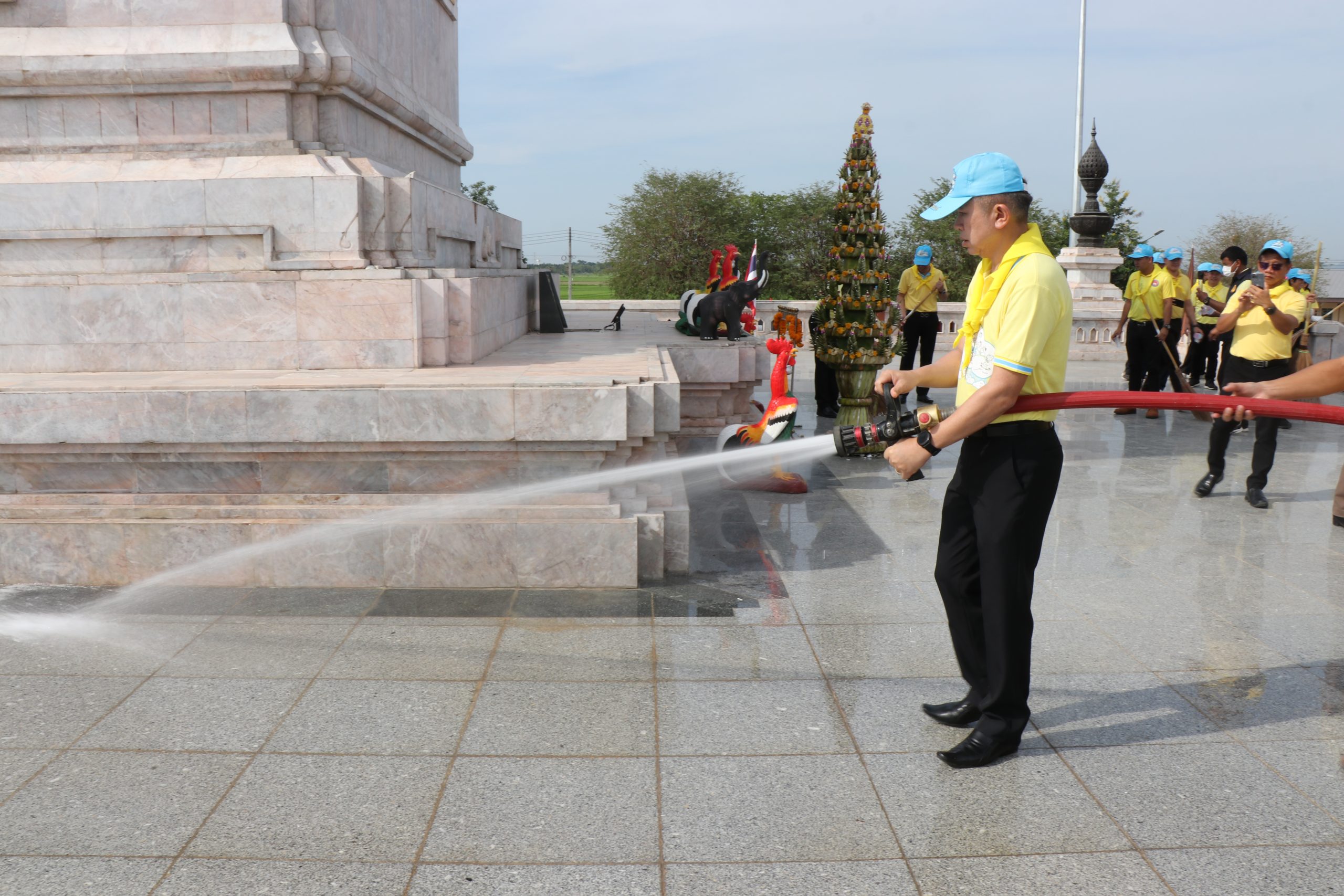 โอกาสนี้ ประธานในพิธีถวายความเคารพพระบรมสาทิสลักษณ์ สมเด็จพระนเรศวรมหาราช จากนั้นได้ถวายราชสักการะและทำความเคารพหน้าพระบรมฉายาลักษณ์พระบาทสมเด็จพระเจ้าอยู่หัว และพระฉายาลักษณ์สมเด็จพระนางเจ้าฯ พระบรมราชินี ต่อจากนั้นประจำจุด เบื้องหน้าเหล่าจิตอาสา กล่าวสำนึกในพระมหากรุณาธิคุณสมเด็จพระนเรศวรมหาราช และนำเหล่าจิตอาสาเพลงสรรเสริญพระบารมี และกล่าวคำปฏิญาณ เราทำความดีด้วยหัวใจ พร้อมกัน 3 ครั้ง จากนั้น ประชาชนจิตอาสา ทั้งหมดได้แยกย้ายไปปฏิบัติกิจกรรมทำความสะอาดและปรับปรุงภูมิทัศน์ โดยรอบบริเวณ
