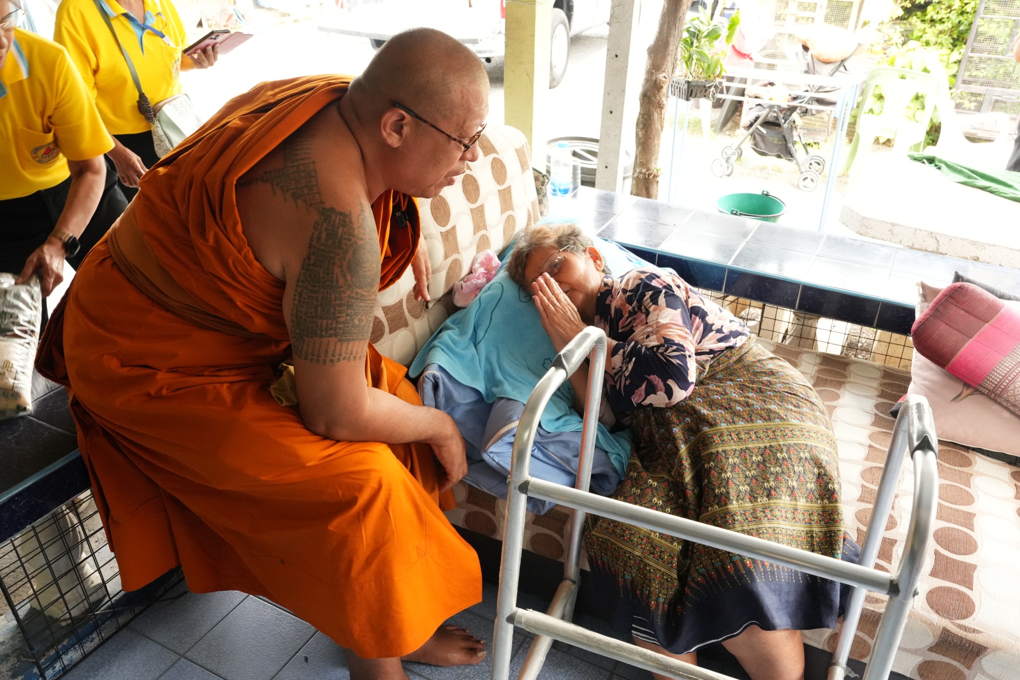 รายแรก หลวงพี่น้ำฝน พร้อมคณะทำงานเดินทางไปที่ ชุมชนคตกฤช ตำบลพระปฐมเจดีย์ อำเภอเมือง จังหวัดนครปฐม โดยได้ไปพบ น.ส. ลออ ศรีคง อายุ90ปี บ้านเลขที่ 58/24 ถนนเทศา ชุมชนคตกฤช ตำบลพระปฐมเจดีย์ อำเภอเมือง จังหวัดนครปฐม ปัจจุบันเป็นผู้ป่วยติดเชื้อในกระแสเลือด กล้ามเนื้ออ่อนแรง ไม่มีครอบครับ มีญาติๆช่วยคอยดูแลให้ที่พักอาศัย ซึ่งตอนนี้มีน้องสาว มีอาชีพรับจ้าง คอยดูแลหาอาหาร ช่วยพาไปหาหมอ พร้อมประสานเจ้าหน้าที่ อสม. ในเขตอำเภอเมืองคอยให้การช่วยเหลือในการดูแลสุขภาพเบื้องต้น