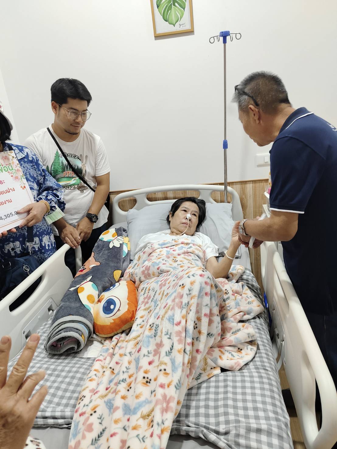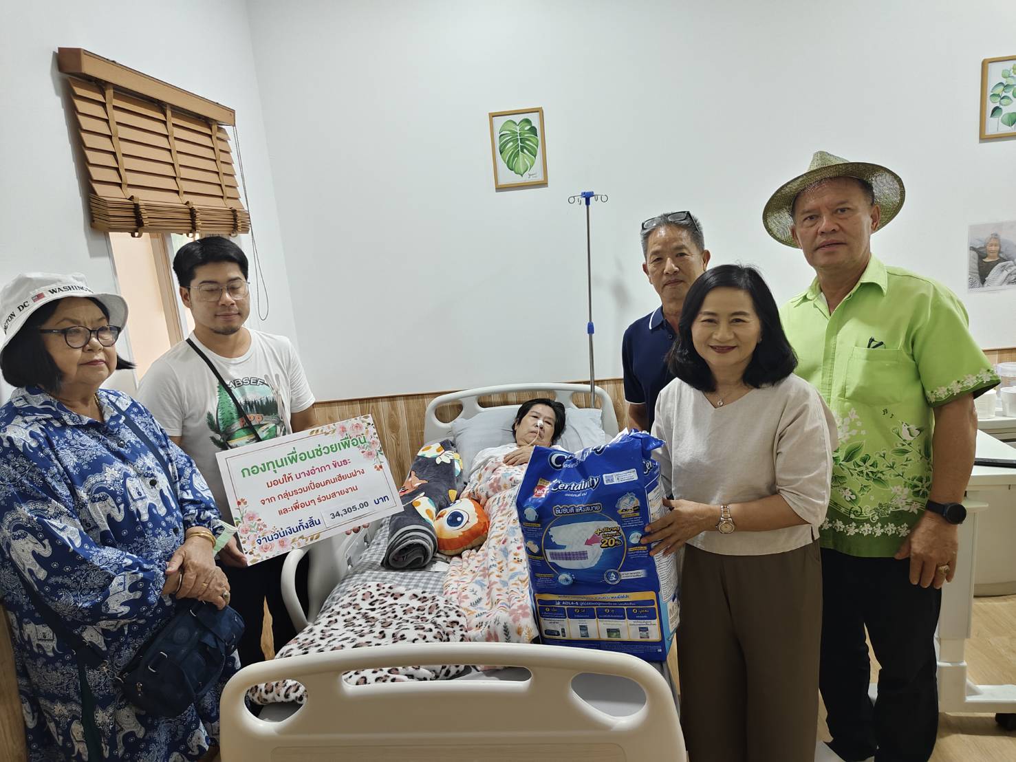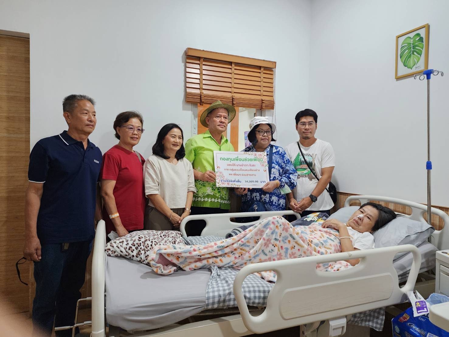 ทางลูกและสามีพร้อมญาติตัดสินใจส่งบำบัดรักษายังสถานรักษาพยาบาลเอกชนแห่งหนึ่งแต่ค่ารักษาพยาบาลค่อนข้างสูงและต้องรักษาตัวอีกนาน ทางกลุ่มเพื่อนจึงได้ร่วมกันตั้ง“โครงการเพื่อนช่วยเพื่อนยามยาก”ได้ร่วมกันทั้งเพื่อนๆและผู้ใจบุญ ร่วมช่วยเหลือเงิน จำนวนสามหมื่นห้าพันบาท เพื่อช่วยเหลือการรักษาพยาบาลในบางส่วนซึ่งช่วยเหลือเพื่อนได้บ้างในบางส่วนโดยทุกคนเข้าใจและอยากช่วยเหลือเพื่อนจิตอาสาคนนี้เพื่อให้หายโดยเร็วจะได้กลับมาเป็นจิตอาสาช่วยเหลือเพื่อนมนุษย์ต่อไป และอีกหลายหน่วยงาน อาจจะได้พิจารณาช่วยเหลือต่อไปก็อาจเป็นไปได้