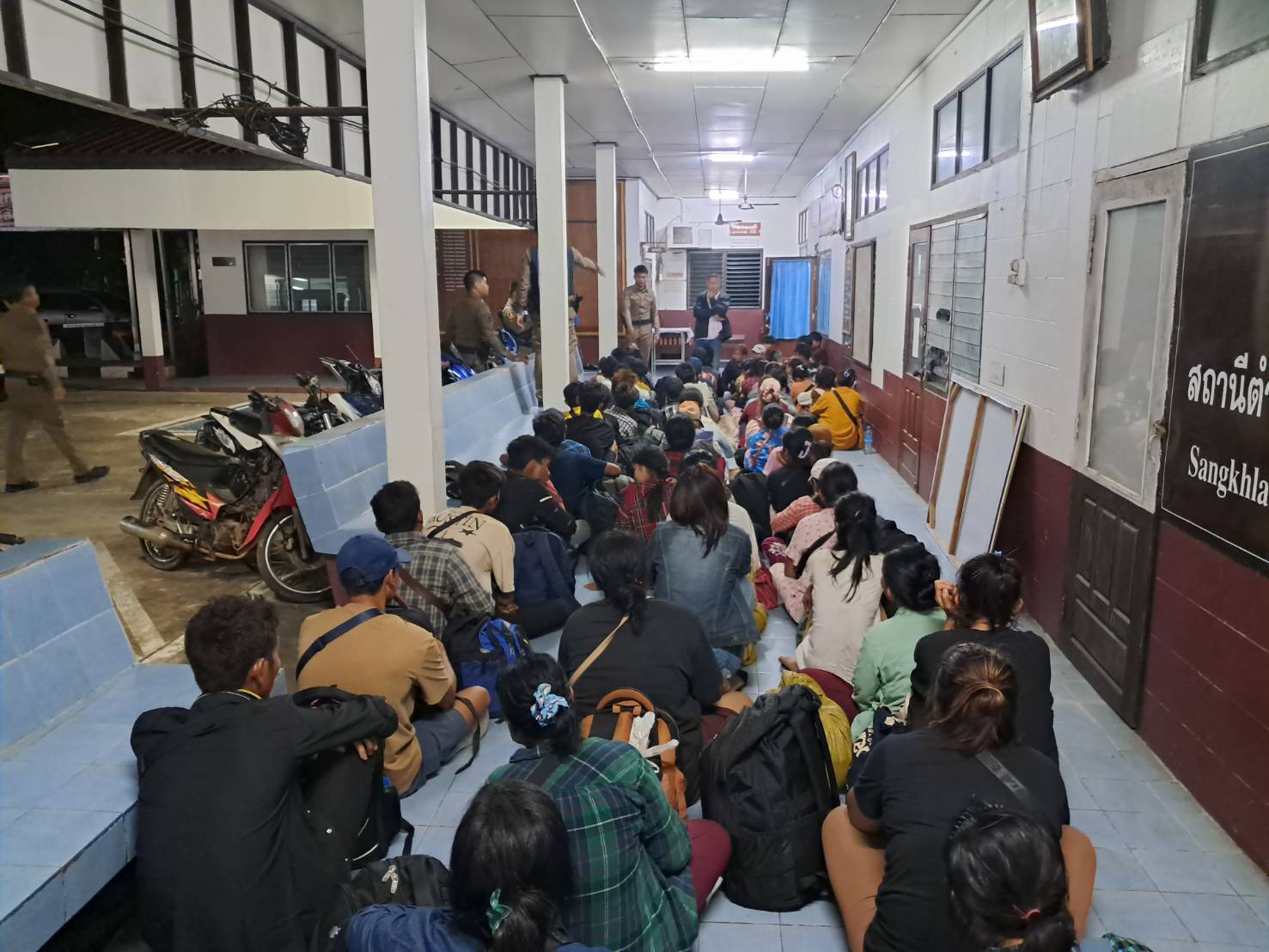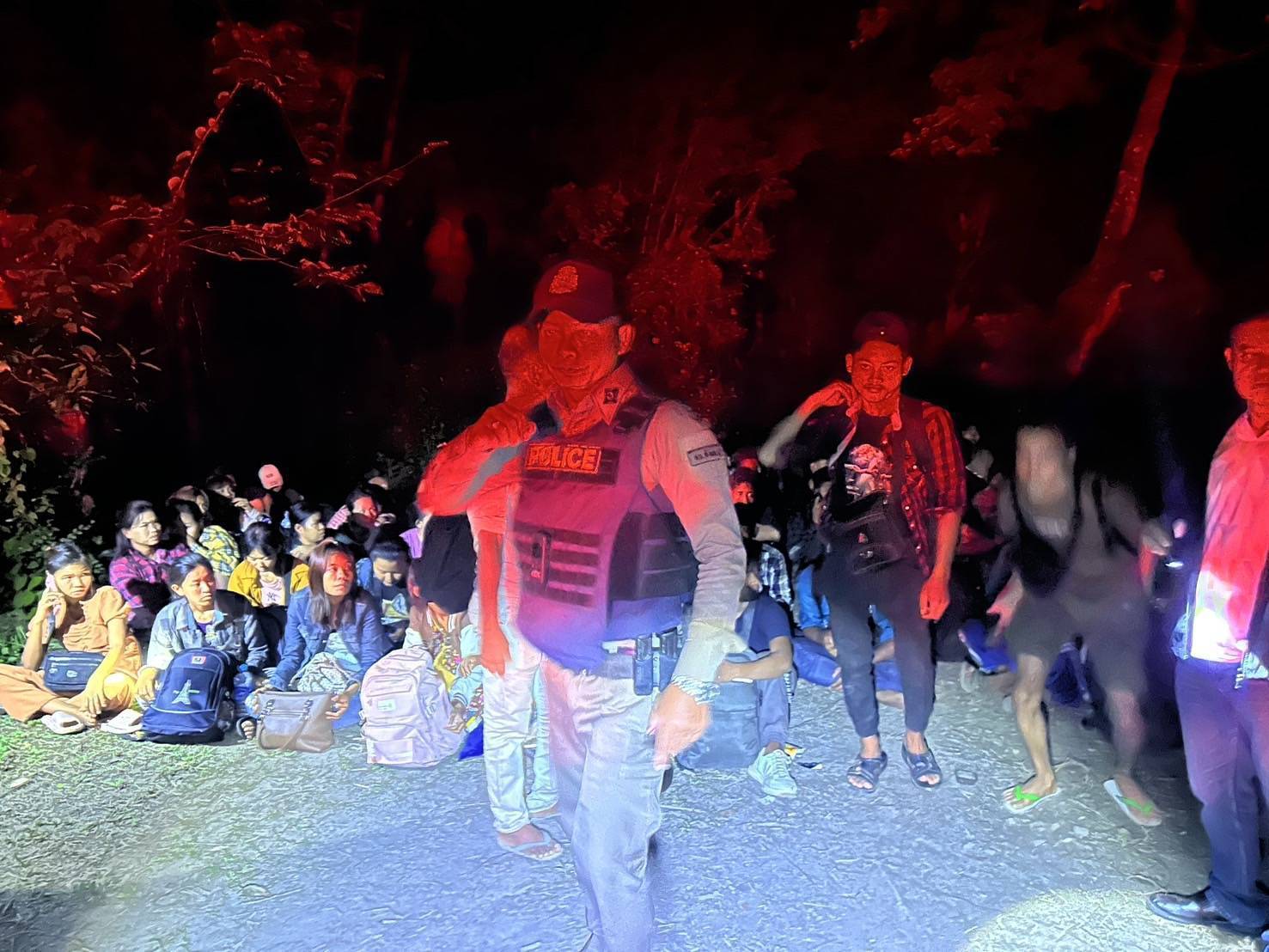 วันที่ 6 พฤษภาคม 2568 เมื่อเวลา 0.1.30.น ภายใต้การอำนวยการของ พล.ต.ต.พรชัย ชลอเดช ผู้บังคับการตำรวจภูธรจังหวัดกาญจนบุรี พ.ต.อ.สันติ พิทักษ์สกุล ผู้กำกับสถานีตำรวจภูธรสังขละบุรี ได้สังการให้ ด.ต.เพียร ฉลูนีตน์ ร้อยเวร 20 เจ้าหน้าที่ตำรวจประจำจุดตรวจน้ำเกิ๊ก เจ้าหน้าที่ตำรวจประจำจุดตรวจสามแยกซองกาเรีย เจ้าหน้าที่ตำรวจตระเวนชายแดนที่ 134 เจ้าหน้าที่ฝ่ายปกครอง ทหารหน่วยเฉพาะกิจลาดหญ้า ร่วมกันจับกุมผู้หลบหนีเข้าเมือง ที่บริเวณชายป่าริมถนนสาย 323 (บ้านซองกาเรีย เยื้องกับสวนสุขภาพคาเฟ่แอนด์ฟาร์ม หมู่ที 8 ตพบลหนองลู อำเภอสังขละบุรี จังหวัดกาญจนบุรี จำนวน 6 4 คน พร้อมด้วยผูติดตามอีก 7 คน (เป็นเยาวชนอายุ 16 -17 ปี) รวม 71 คน