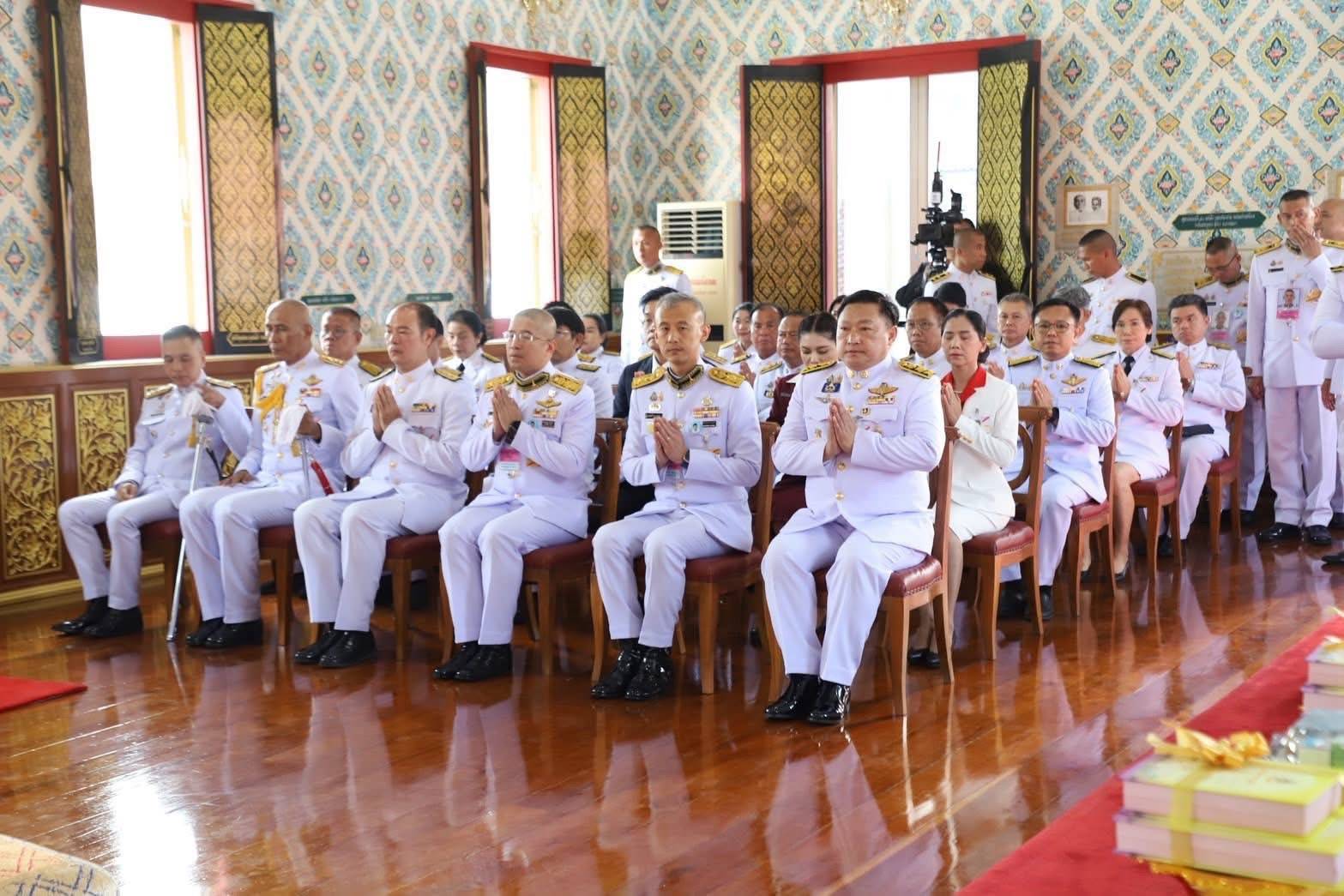 วันที่ 12 พฤษภาคม 2568 เวลา 08.30 น. ณ วัดอ่างทองวรวิหาร อ.เมืองอ่างทอง จ.อ่างทอง พระบาทสมเด็จพระเจ้าอยู่หัว ทรงพระกรุณาโปรดเกล้าฯ ให้ พล.อ.อ.สถิตย์พงษ์ สุขวิมล ราชเลขานุการในพระองค์ ฯ เชิญชุดกล่องหนังสือธรรมนาวา “วัง” ไปถวายแด่คณะสงฆ์จังหวัดอ่างทอง (มหานิกาย) พร้อมด้วยนายสมศักดิ์ อนุราชเสนา ประจำสำนักพระราชวังพิเศษ ระดับ 10 พล.ต.ต.มานะชัย อ้นภู นายตำรวจราชองครักษ์ประจำพระองค์ และคณะผู้แทนพระองค์ โดยมีนายชวนินทร์ วงศ์สถิตจิรกาล ผู้ว่าราชการจังหวัดอ่างทอง ผู้พิพากษาหัวหน้าศาลเยาวชนและครอบครัวจังหวัดอ่างทอง ผู้บังคับการมณฑลทหารบกที่ 13 ผู้บังคับการตำรวจภูธรจังหวัดอ่างทอง ถวายรายงานต่อผู้แทนพระองค์ ฯ รองผู้ว่าราชการจังหวัดอ่างทอง รองผู้อำนวยการรักษาความมั่นคงภายในจังหวัดอ่างทอง (ท.) หัวหน้าส่วนราชการจังหวัดอ่างทอง สมาชิกวุฒิสภาจังหวัดอ่างทอง (สว.) ผู้บริหารองค์กรปกครองส่วนท้องถิ่น เจ้าหน้าที่ที่เกี่ยวข้อง ร่วมในพิธี