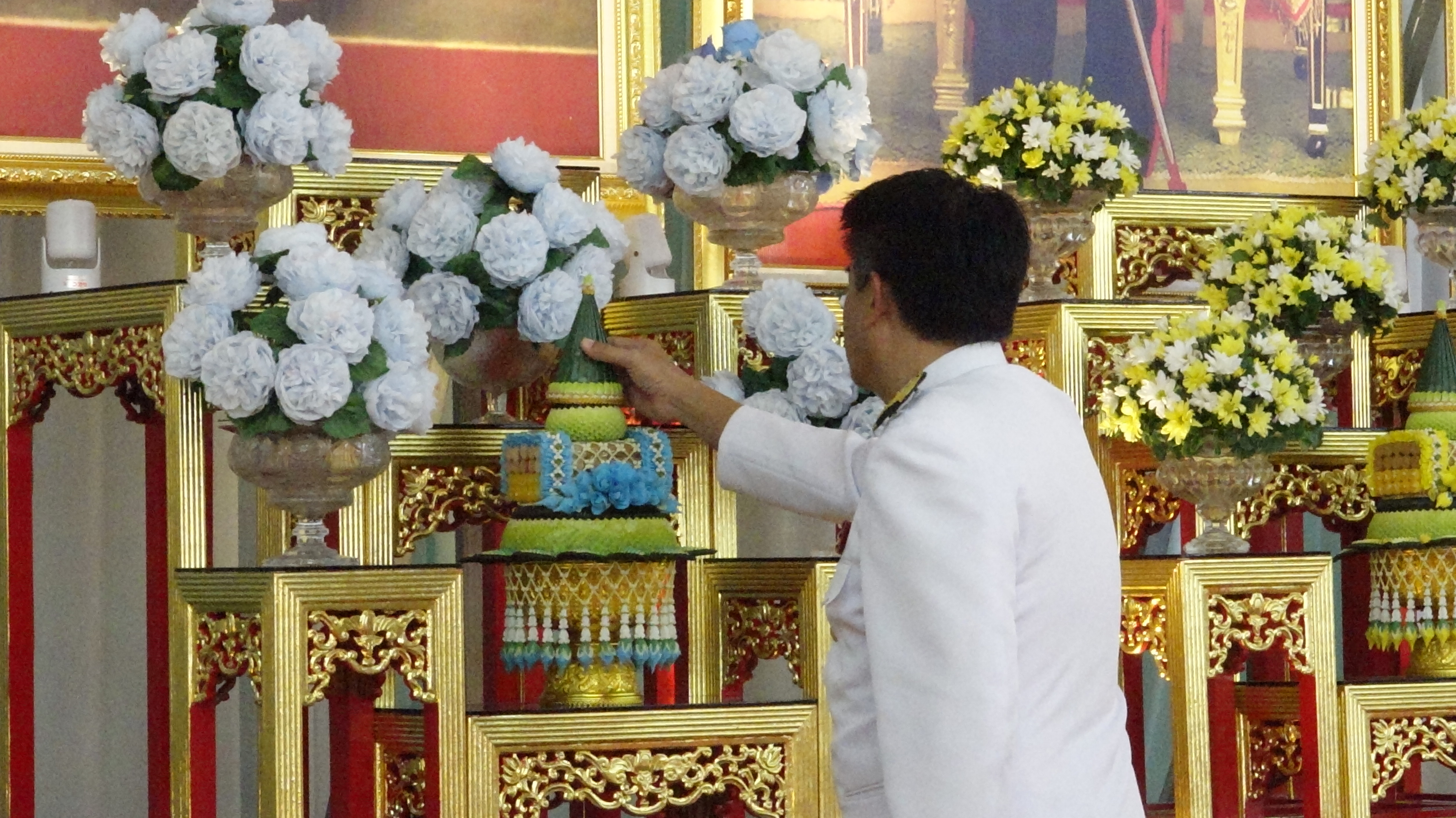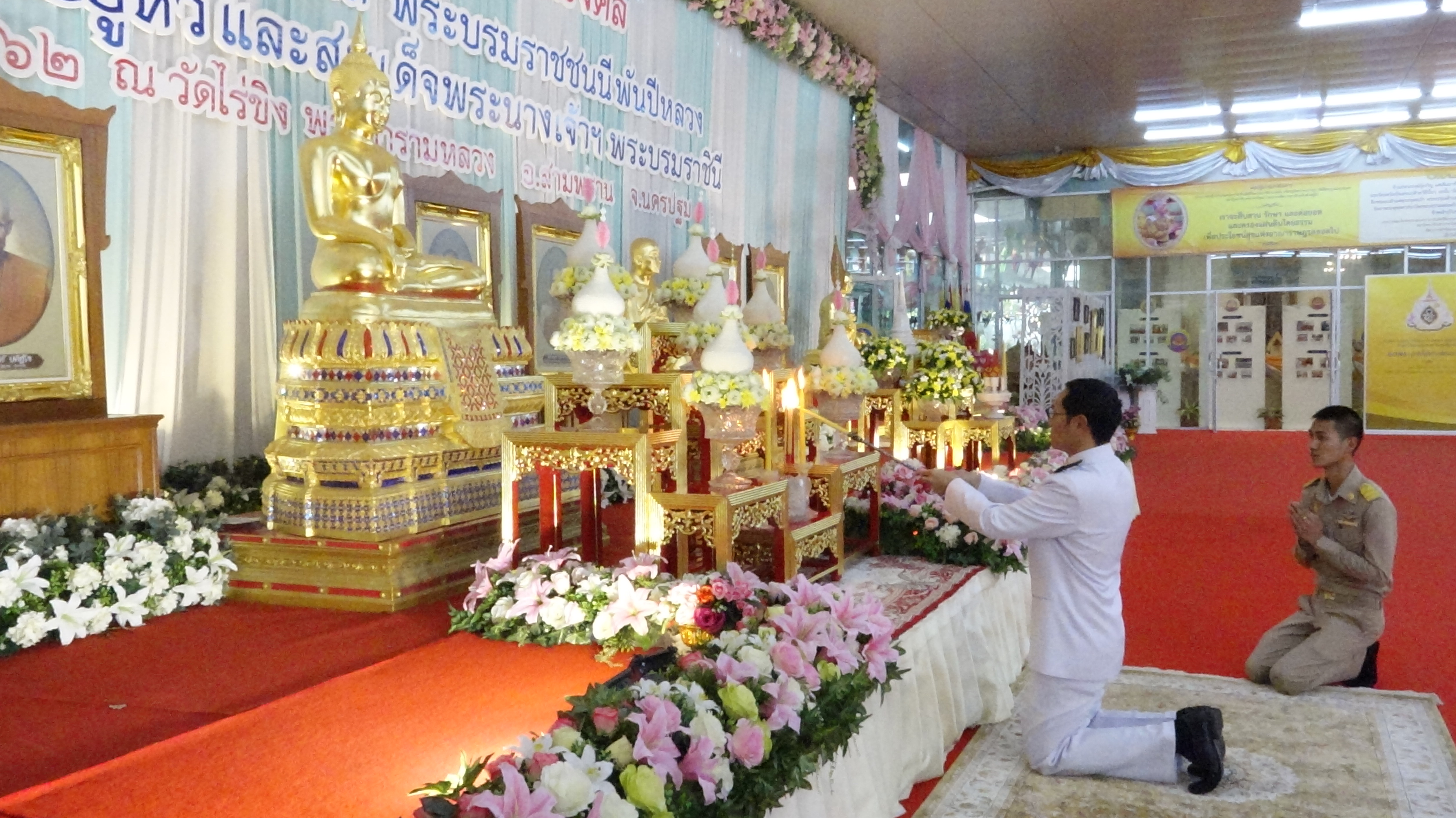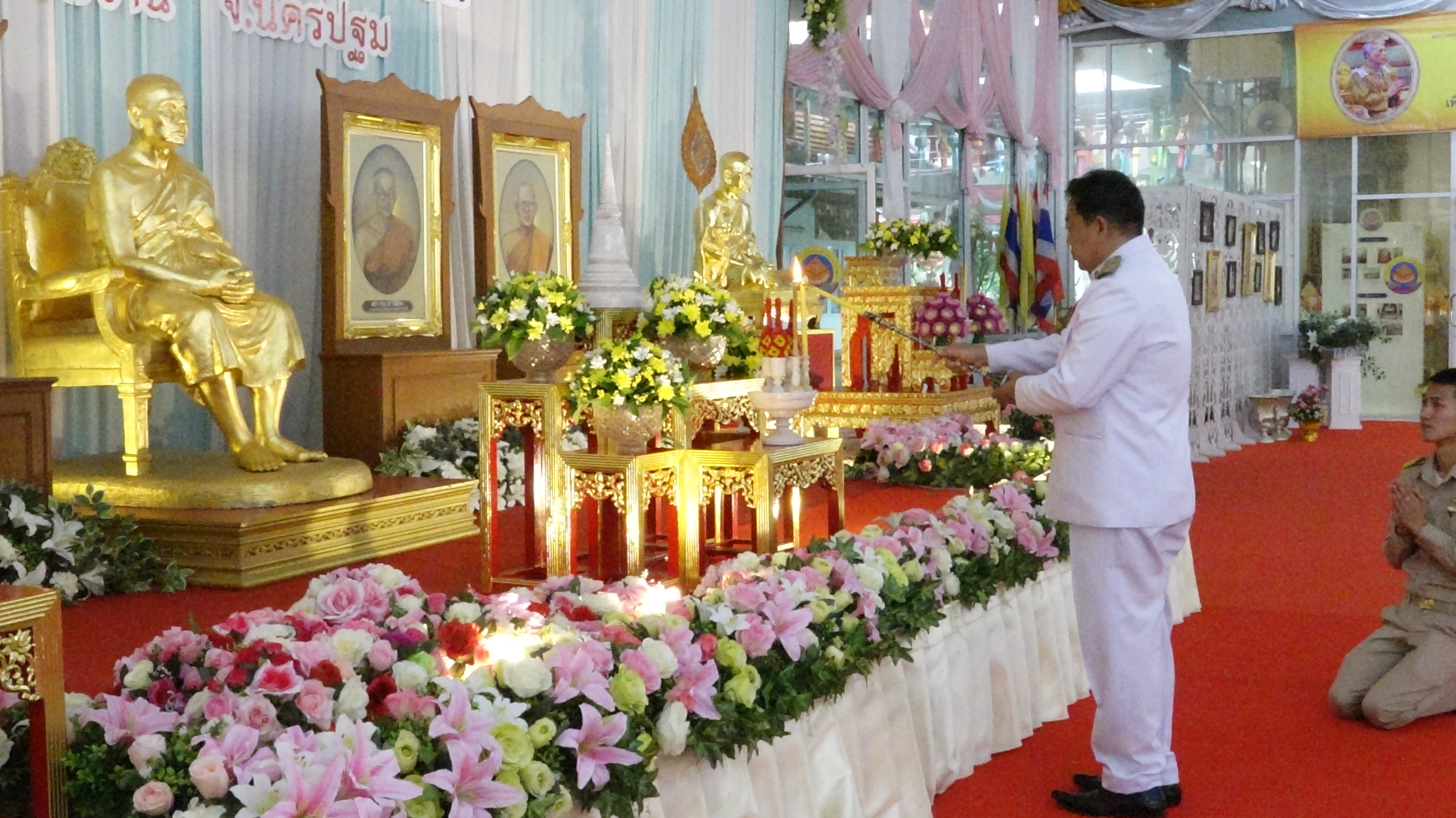 นายสุนา วงศ์ละคร ปลัดอาวุโสอำเภอสามพราน ปฎิบัติหน้าที่แทนนายอำเภอสามพราน เป็นประธานฝ่ายฆารวาส จุดธูปเทียนบูชาพระรัตนตรัย ในพิธีเจริญพระพุทธมนต์ถวายพระพรชัยมงคล สมเด็จพระนางเจ้าสิริกิติ์พระบรมราชินีนาถ พระบรมราชชนนีพันปีหลวง พระบามสมเด็จพระวชิรเกล้าเจ้าอยู่หัว และสมเด็จพระนางเจ้าฯ พระบรมราชินี ซึ่งมี นายวิวัฒน์ ชูศรีจันทร์ ผู้อำนวยการโรงเรียนวัดไร่ขิงวิทยา จุดธูปเทียนเครื่องทองน้อย หน้ารูปปั้นอดีตเจ้าอาวาสวัดไร่ขิง พระอารามหลวง