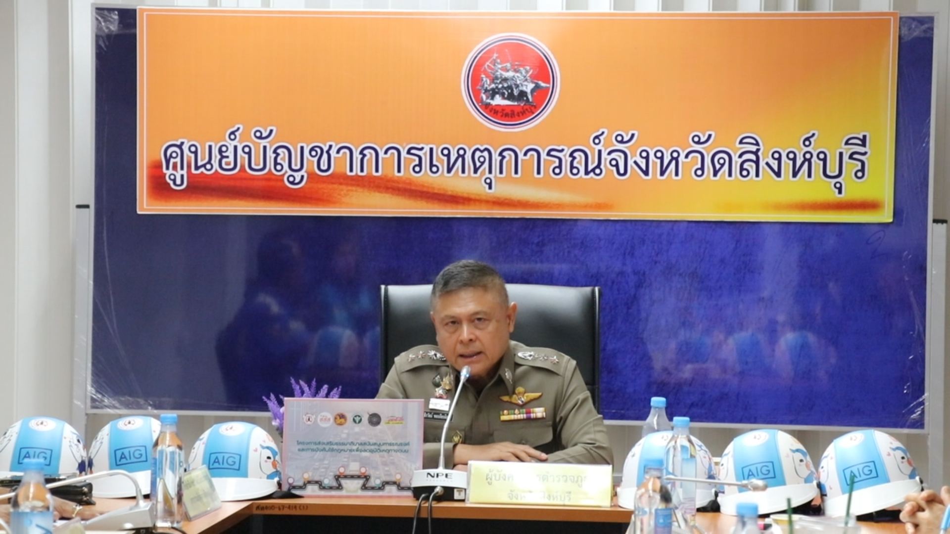 โดยมีนายวราดิศร อ่อนนุชพร้อมนางสาววีรวรรณ จันทนเสวี รองผู้ว่าราชการจังหวัดสิงห์บุรีทั้งสอง นายณรงค์พันธ์ แจ่มจันทร์ รักษาราชการแทนหัวหน้าสำนักงานป้องกันและบรรเทาสาธารณภัยจังหวัดสิงห์บุรี ประชาสัมพันธ์จังหวัดสิงห์บุรี ขนส่งจังหวัดสิงห์บุรี รองนายแพทย์สาธารณสุขจังหวัดสิงห์บุรี และผู้แทนหน่วยงานที่เกี่ยวข้องเข้าร่วมกิจกรรมรับมอบป้ายสื่อประชาสัมพันธ์และหมวกนิรภัยเด็กให้กับจังหวัดสิงห์บุรี เพื่อใช้ในการรณรงค์ประชาสัมพันธ์สร้างความตระหนักให้ประชาชนในการป้องกันและลดความเสี่ยงการเกิดอุบัติเหตุทางถนน “ขับขี่ปลอดภัย สิงห์บุรีไร้อุบัติเหตุ”