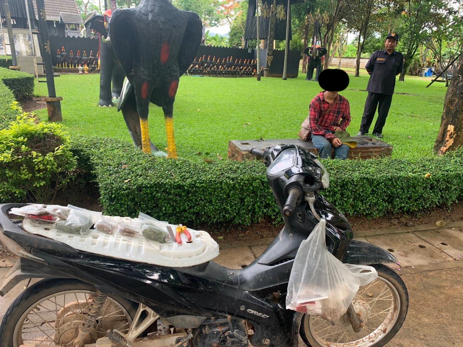 และต่อมาวันนี้ (17 พ.ค. 68) เวลาประมาณ 10.30 น. ได้รับแจ้งจากสายลับว่าขณะนี้ ด.ช.ก่อเหตุได้ขับขี่รถจักรยานยนต์คันที่ลักไป อยู่บริเวณสถูปพระนเรศวรมหาราช ม.2 ต.เมืองงาย อ.เชียงดาว จ.เชียงใหม่ ชุดจับกุมจึงได้ร่วมกันไปสถานที่ดังกล่าว เมื่อชุดจับกุมมาถึงถนนบริเวณหน้าค่ายจำลองภายในสถูปพระนเรศวรมหาราชฯ พบ ด.ช.ก่อเหตุยืนอยู่ข้างรถจักรยานยนต์ ชุดจับกุมจึงแสดงตัวเป็นเจ้าหน้าที่ตำรวจ และเข้าทำการตรวจสอบจากการตรวจสอบ พบกัญชาแห้งจำนวนหนึ่งและสอบถาม เบื้องต้น ให้การรับว่ารถจักรยานยนต์คันที่ตนเองขับขี่มา เป็นรถจักรยานยนต์คันเดียวกับที่ตนเองลักทรัพย์มาจากบ้านของนายจิตร มณีวรรณ เมื่อวันที่ 15 พฤษภาคม 2568 เวลาประมาณ 22.00 น. และ ด.ช ก่อเหตุรับว่าหลังจากลักจักรยานยนต์ไปตนเองต่อสายไฟสวิทช์กุญแจโดยตรงเพื่อทำให้รถสามารถสตาร์ทติดได้