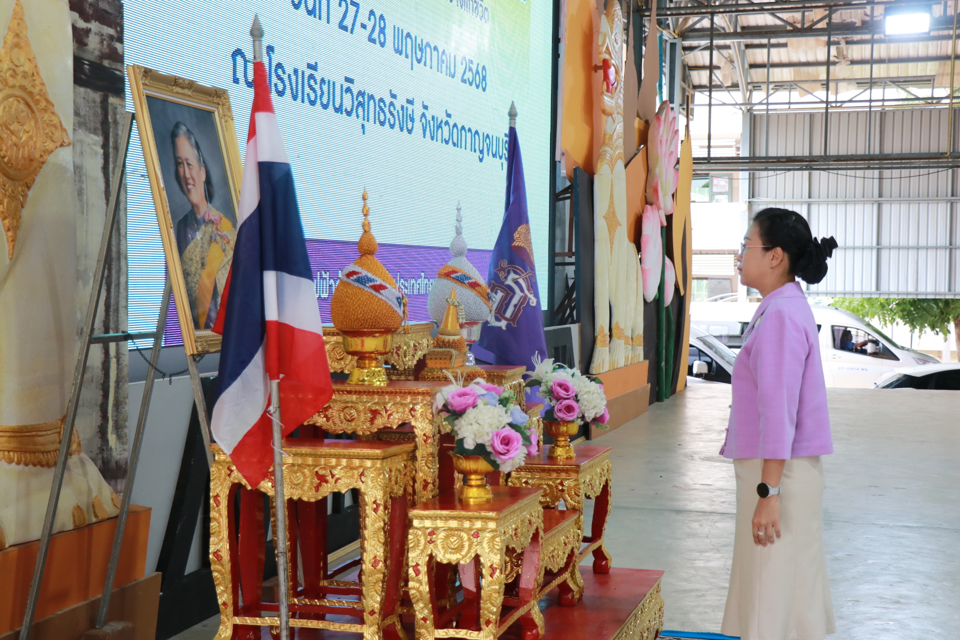 วันที่ 27 พฤษภาค 2568 นายอธิสรรค์ อินทร์ตรา ผู้ว่าราชการจังหวัดกาญจนบุรี มอบหมายให้ นางพรรณวิภา ปิยัมปุตระ รองผู้ว่าราชการจังหวัดกาญจนบุรี เป็นประธานพิธีเปิด “โครงการแว่นแก้ว หน่วยที่ 584” พื้นที่จังหวัดกาญจนบุรี เฉลิมพระเกียรติสมเด็จพระกนิษฐาธิราชเจ้า กรมสมเด็จพระเทพรัตนราชสุดาฯ สยามบรมราชกุมารี เนื่องในโอกาสเฉลิมพระชนมพรรษา 70 พรรษา 2 เมษายน 2568 ณ ศาลาร่วมใจ 49 โรงเรียนวิสุทธรังษี ตำบลท่าล้อ อำเภอท่าม่วง จังหวัดกาญจนบุรี โดยมี นายสกล อักษรธนาวัฒน์ ผู้อำนวยการเขื่อนวชิราลงกรณ กล่าวรายงานฯ นายศิวรัตน์ พายุหะ ผู้อำนวยการโรงเรียนโรงเรียนวิสุทธรังษี กล่าวให้การต้อนรับฯ หัวหน้าส่วนราชการ ผู้บริหาร กฟผ. นักเรียนและผู้ร่วมงานโครงการ ร่วมพิธี ฯ