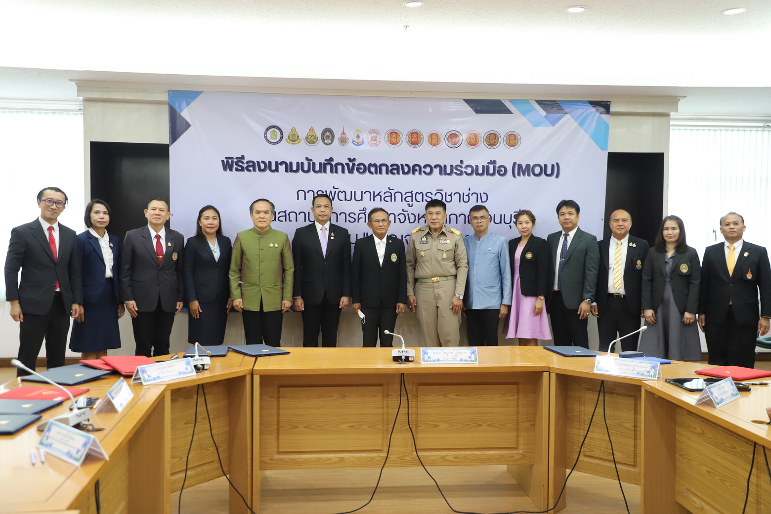 การจัดประชุมขับเคลื่อนหลักสูตรวิชาช่างในสถาบันการศึกษาจังหวัดกาญจนบุรี และลงนามบันทึกข้อตกลงความร่วมมือทางวิชาการในการขับเคลื่อนหลักสูตรวิชาช่างในสถาบันการศึกษาจังหวัดกาญจนบุรี ซึ่งเกิดขึ้นจากความมุ่งมั่นร่วมกันของภาคีเครือข่ายทางการศึกษาในจังหวัดกาญจนบุรี ที่เล็งเห็นความสำคัญในการสร้างโอกาสทางการศึกษาและวิชาชีพให้แก่เยาวชนในพื้นที่ โดยเฉพาะเยาวชนในพื้นที่ห่างไกล เพื่อให้สามารถ พัฒนาตนเองสู่การมีงานทำ และมีอาชีพที่มั่นคงในอนาคต เป็นความร่วมมือระหว่าง สำนักงานศึกษาธิการจังหวัดกาญจนบุรี สำนักงานเขตพื้นที่การศึกษามัธยมศึกษากาญจนบุรี พร้อมโรงเรียนในสังกัด 8 แห่ง ซึ่งเป็นโรงเรียนในโครงการกองทุนการศึกษาและเครือข่ายคุณธรรม จริยธรรม สำนักงานเขตพื้นที่การศึกษาประถมศึกษากาญจนบุรี เขต 3 พร้อมโรงเรียนขยายโอกาสใน สังกัด 2 แห่ง ซึ่งเป็นโรงเรียนในโครงการกองทุนการศึกษา สถาบันการศึกษา รวม 11 แห่ง แบ่งเป็น สถาบันอุดมศึกษา 4 แห่ง สถานศึกษาในสังกัดสำนักงานคณะกรรมการการอาชีวศึกษา 7 แห่ง