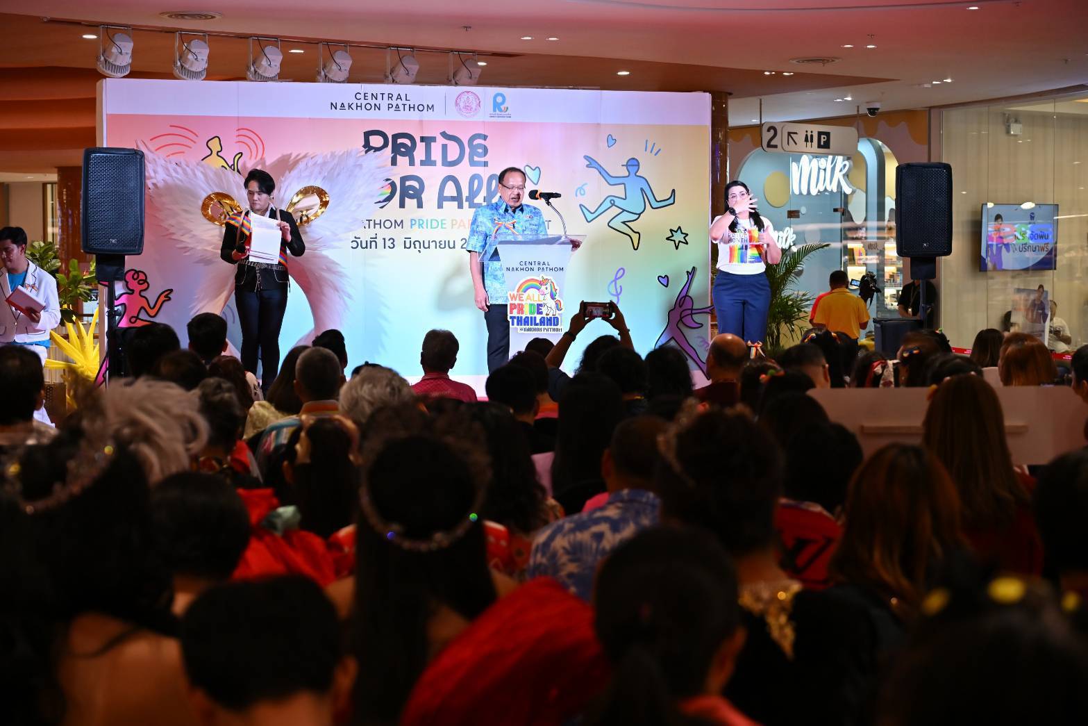 วันที่ 13 มิถุนายน 2568 ที่ศูนย์การค้าเซ็นทรัลนครปฐม นายรณภพ เวียงสิมมา รองผู้ว่าราชการจังหวัดนครปฐม เป็นประธานเปิดกิจกรรม We All Pride Nakhonpathom 2025 โดยมีหัวหน้าส่วนราชการ สถาบันการศึกษา องค์กรภาคีเครือข่ายและภาคเอกชน ร่วมกิจกรรม พร้อมเดินขบวนพาเหรดในธีม “รัก เข้าใจ ศักดิ์ศรี เท่าเทียม” เพื่อสื่อสารสร้างความเข้าใจ และการยอมรับในความหลากหลายทางเพศ ตามหลักความเท่าเทียมระหว่างเพศ ซึ่งมีการแสดงทงสัญลักษณ์สีรุ้ง 6 สีและสมรสเท่าเทียม