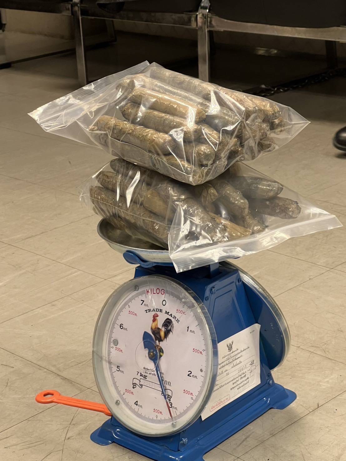 *****ฝ่ายพิธีการเข้าเมือง ด่าน ตม.ทอ.สุวรรณภูมิ และกก.สส.ปป.บก.ตม.2 จึงได้ทำการตรวจสอบร่วมกับศุลกากร พบว่า คนต่างชาติรายดังกล่าวคือ Mr.Guntars อายุ 71 ปี สัญชาติลัตเวีย เดินทางมาจากลาวโดยเที่ยวบิน TG571 ถึงสุวรรณภูมิ วันที่ 22 มิ.ย.2568 เวลาประมาณ 15.20 น. เพื่อต่อเครื่องไปมาเลเซียโดยเที่ยวบิน TG417 โดยเครื่องจะออกเวลา 16.40 น. จึงได้ทำการสกัดและตรวจค้นสัมภาระ พบถุงผ้าใบทรงยาวสีแดง ภายในเป็นเปลสนาม และพบวัตถุคล้ายไส้กรอกหุ้มด้วยพลาสติกสีน้ำตาลซุกซ่อนอยู่ในท่อเหล็กแกนของเปลสนาม จำนวนทั้งสิ้น 47 ก้อน ตรวจด้วยน้ำยาพบว่าเป็นเฮโรอีนน้ำหนักรวมประมาณ 3 กก.