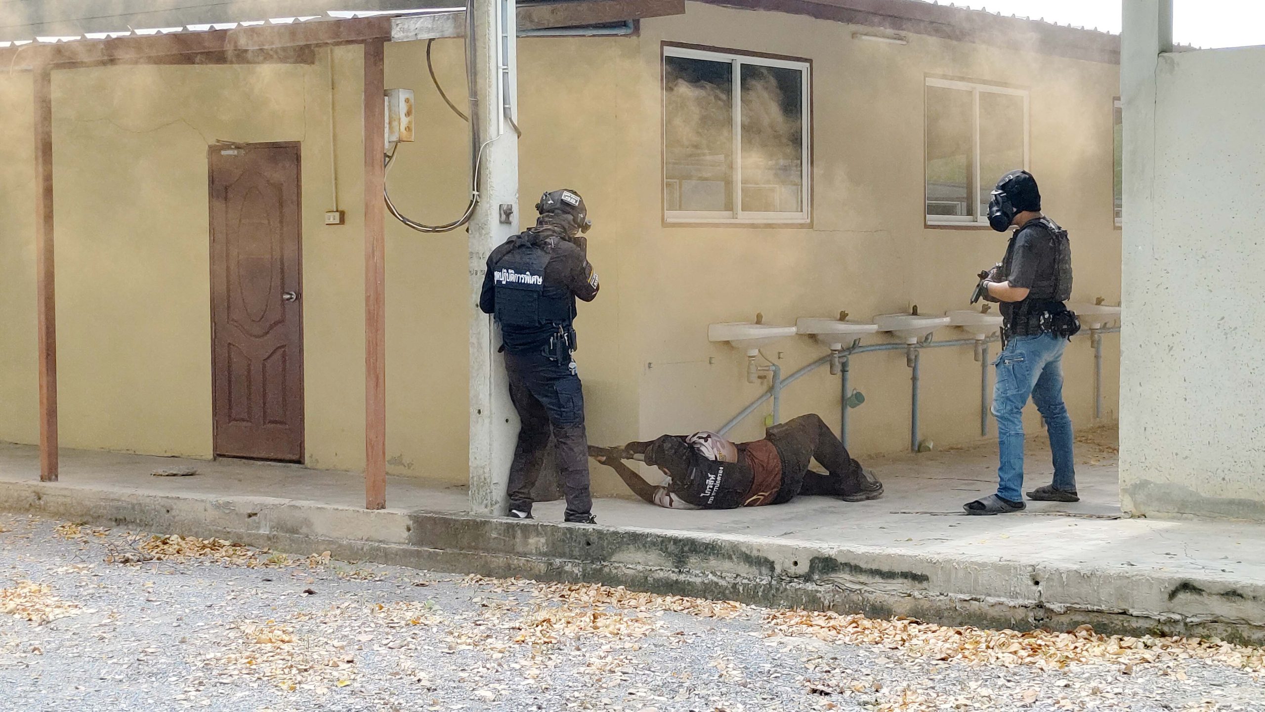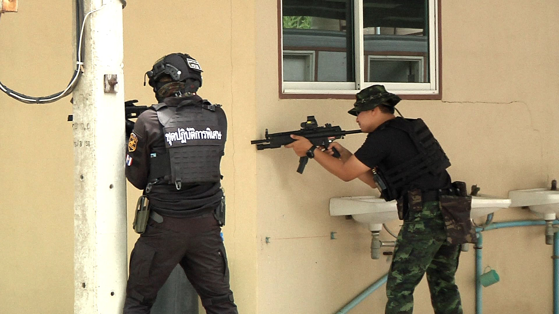 สำหรับภาพไฮไลท์ ในการฝึกครั้งนี้มีทั้งการจำลองการเข้าตรวจค้นในสถานที่ปิด และการจับกุมพ่อค้ายาเสพติด ที่มีกำลังคนและอาวุธ ครบมือ การฝึกใช้อาวุธ ครั้งนี้เป็นปืน บีบีกัน แต่ก็มีเสียงระเบิดดังขึ้นเป็นระยะเพื่อทดสอบสติ ของผู้เข้ารับการฝึก ไปดูชุดคนร้ายทีมพ่อค้ายา ว่าผ่านสนามรบมากี่สนาม มีการพูดคุยถึงการขายยาเสพติด มีทั้งปืนทั้งระเบิด ส่วนฝ่ายเจ้าหน้าที่ มีทั้ง ผบ.ตร. มีทั้งนายกองยาว ตัวแทนนายกองเอก กำลังพลเข้าเข้ารับการฝึกครั้งนี้มีทั้งครู ทั้งเจ้าของธุรกิจโรงสี อดีต ผอ.โรงเรียน แต่ละคนต้องมีลูกโป่งติดตัวเป็นเป้าให้ฝ่ายตรงข้ามยิง