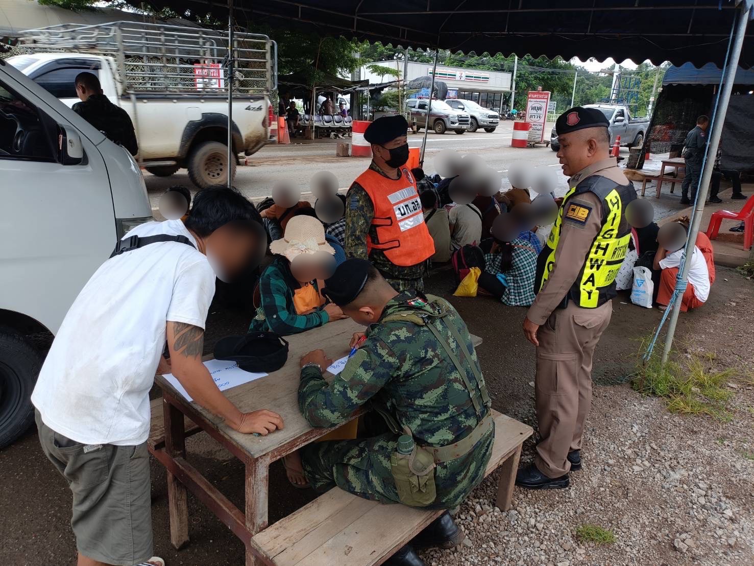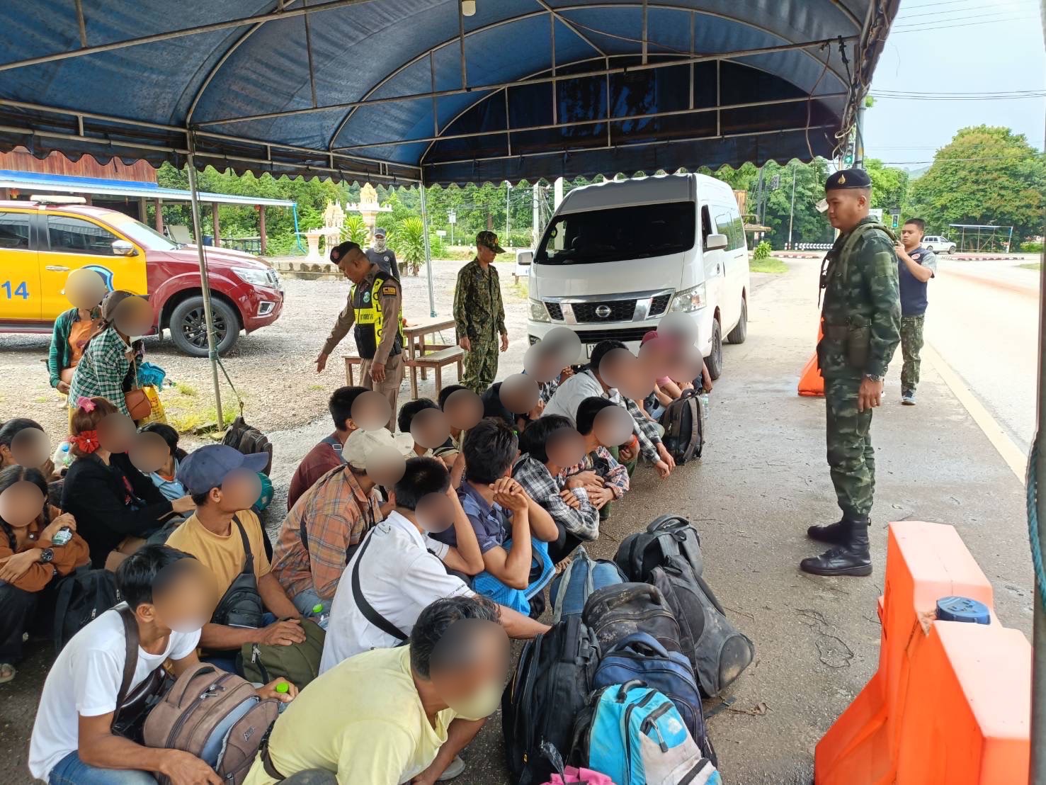 กระทั่ง 08.00 น. ขณะที่เจ้าหน้าที่ปฏิบัติงาน บริเวณ จุดตรวจร่วมสามแยกทองผาภูมิ สังเกตพบรถตู้ต้องสงสัย ขับมาจาก อ.สังขละบุรี มุ่งหน้า อ.ทองผาภูมิ จึงได้ให้สัญญาณหยุดรถเพื่อทำการตรวจสอบ พบ นาย สุบิน พระแท่น อายุ 51 ปี เป็นผู้ขับขี่รถตู้ หมายเลขทะเบียน ถค 4747 กรุงเทพมหานคร ในขณะที่เจ้าหน้าที่กำลังตรวจสอบรถตู้คันดังกล่าวนั้น นายสุบินฯ ได้ขับรถหลบหนีออกไปจากจุดตรวจ เจ้าหน้าที่ฝ่ายความมั่นคงคาดว่ารถยนต์คันดังกล่าวน่าจะมีสิ่งผิดกฎหมายบรรทุกมาด้วย จึงได้ประสานเจ้าหน้าที่ในพื้นที่ให้สกัดจับรถยนต์คันดังกล่าวไว้ จนกระทั่งถึง บริเวณ บ.สหกรณ์นิคม ม.1 ต.สหกรณ์นิคม อ.ทองผาภูมิ เจ้าหน้าที่จึงสามารถควบคุมรถยนต์คันดังกล่าวไว้ได้ หลังจากนั้นได้ทำการตรวจสอบภายในรถยนต์คันดังกล่าวอย่างละเอียด พบ คนขับ และกลุ่มบุคคลคล้ายต่างด้าวผิดกฎหมาย จำนวน 36 คน (ชาย 21 คน และหญิง 15 คน) จากนั้นเจ้าหน้าที่ได้ดำเนินการตรวจสอบเอกสารประจำตัวที่ทางราชการออกให้ แต่กลุ่มบุคคลดังกล่าวไม่สามารถสื่อสารภาษาไทยได้ และไม่สามารถแสดงเอกสารที่ทางราชการออกให้ได้ จึงควบคุมตัวกลุ่มบุคคลต่างด้าวไว้ทั้งหมด
